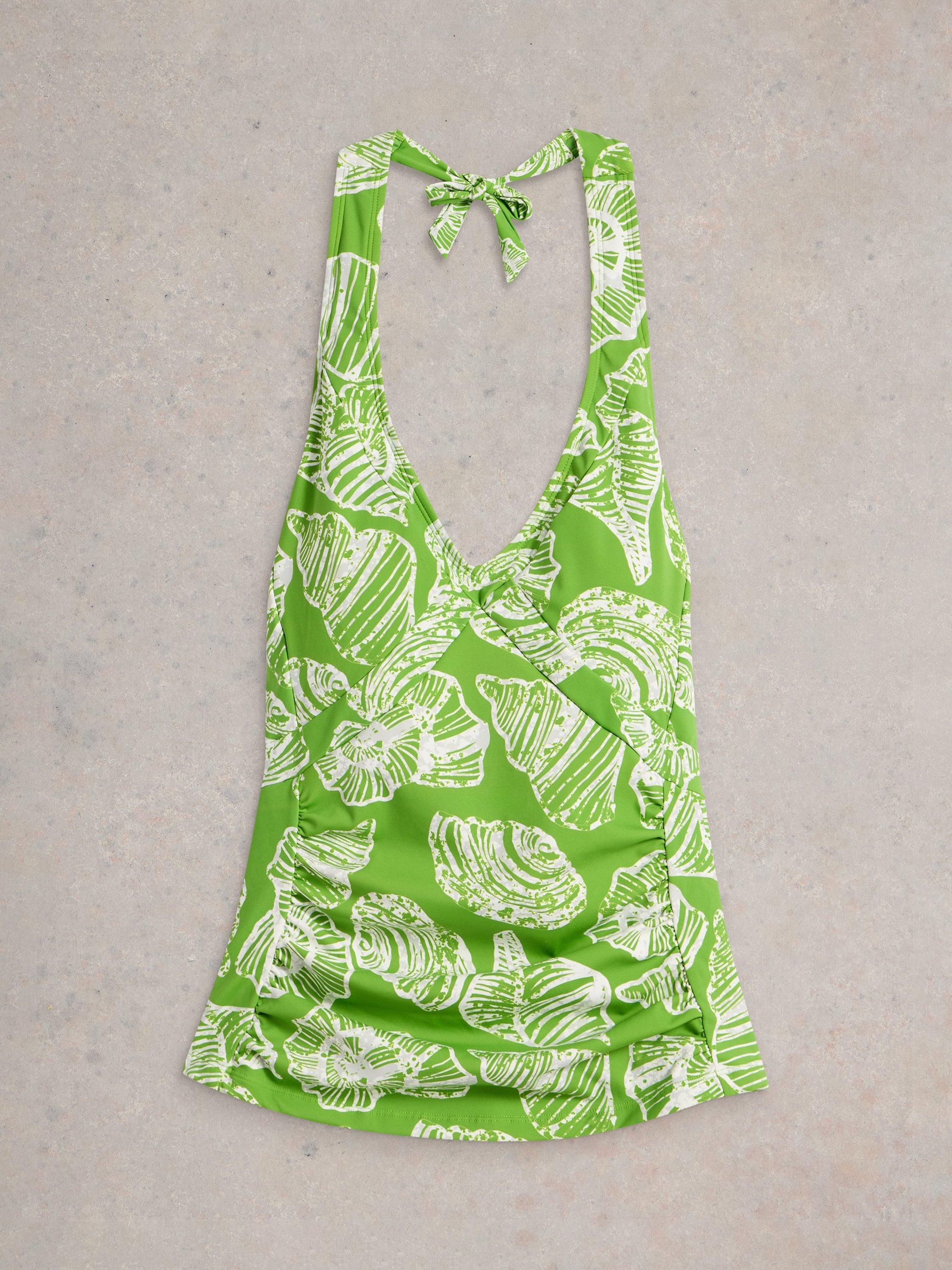 A halterneck tankini top with ruching on the tummy.