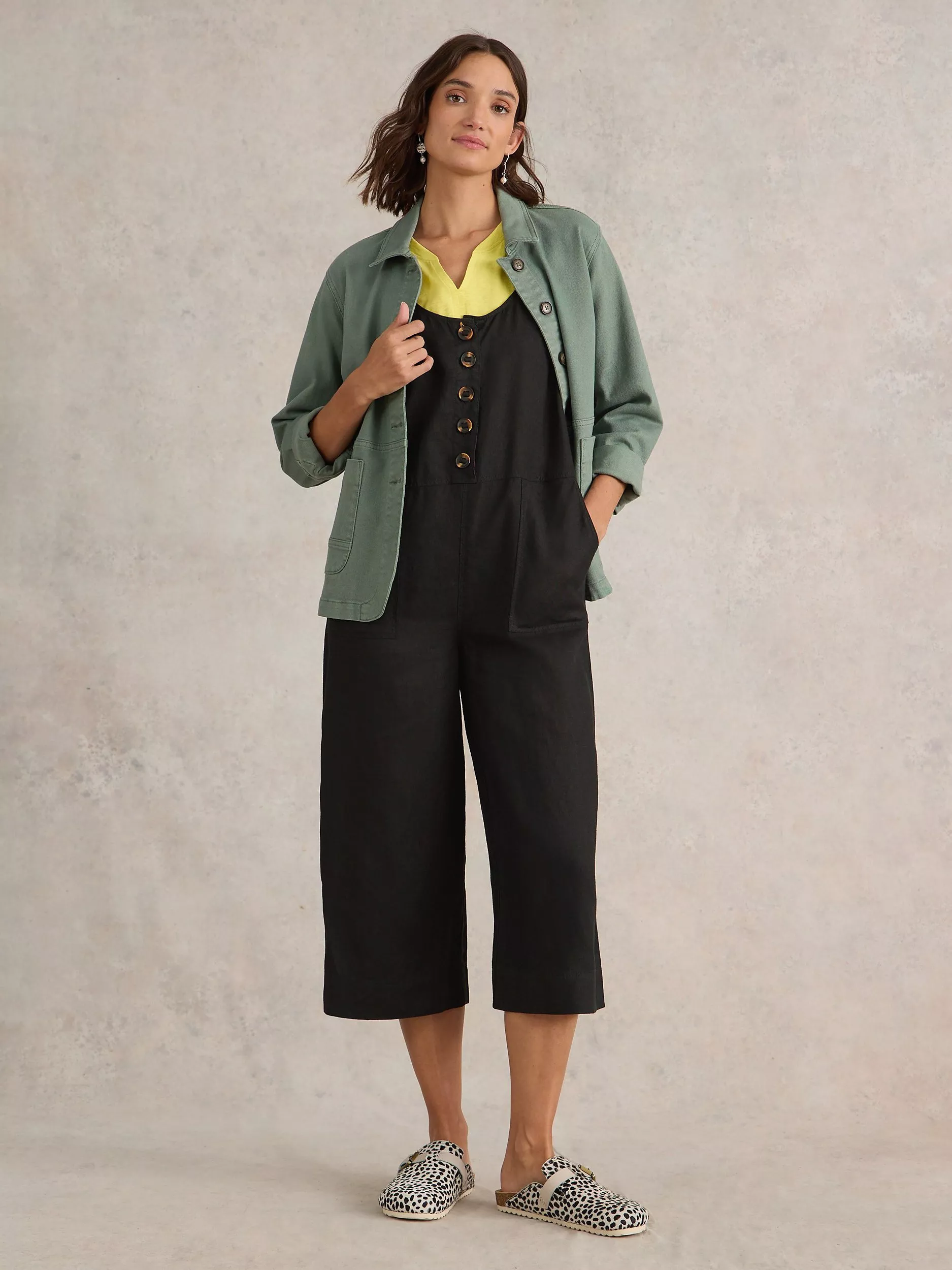 Framed with a flattering v-neck, this sleeveless pair of dungarees by White Stuff is cut to a wide-leg silhouette and is whipped up from breezy linen that'll really come into its own on sunny days.
