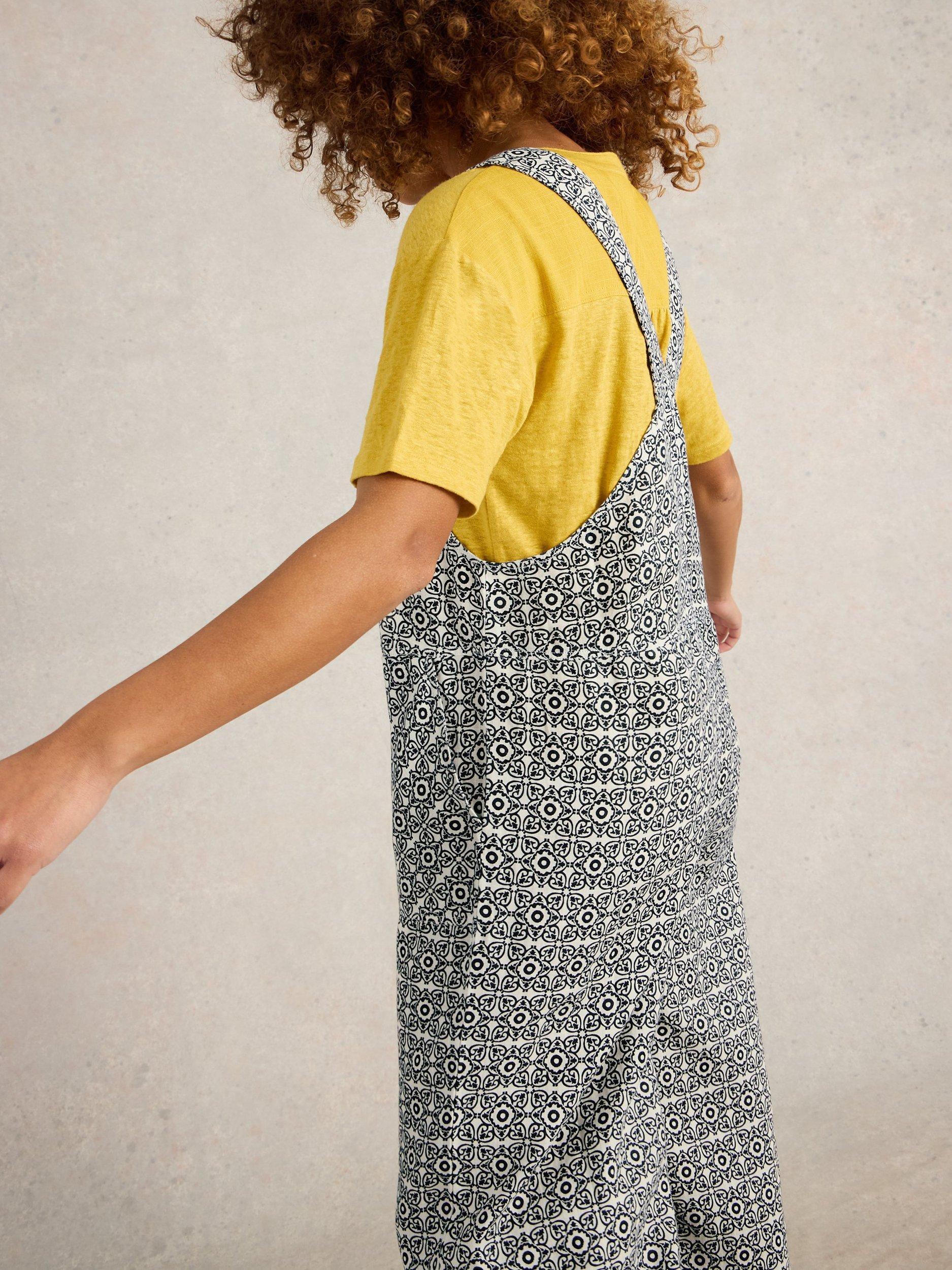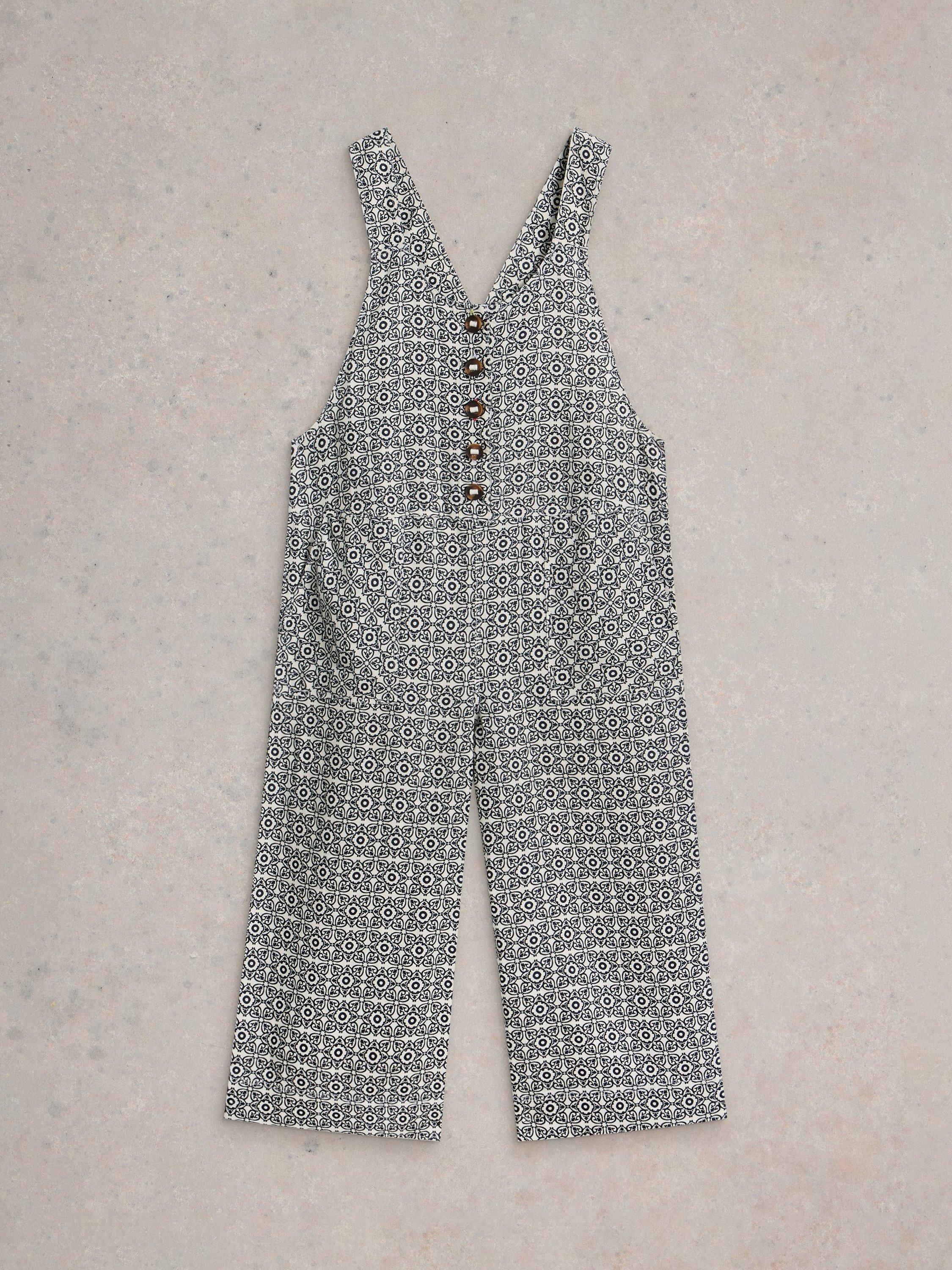 White StuffViola Linen Dungarees, White/Multi