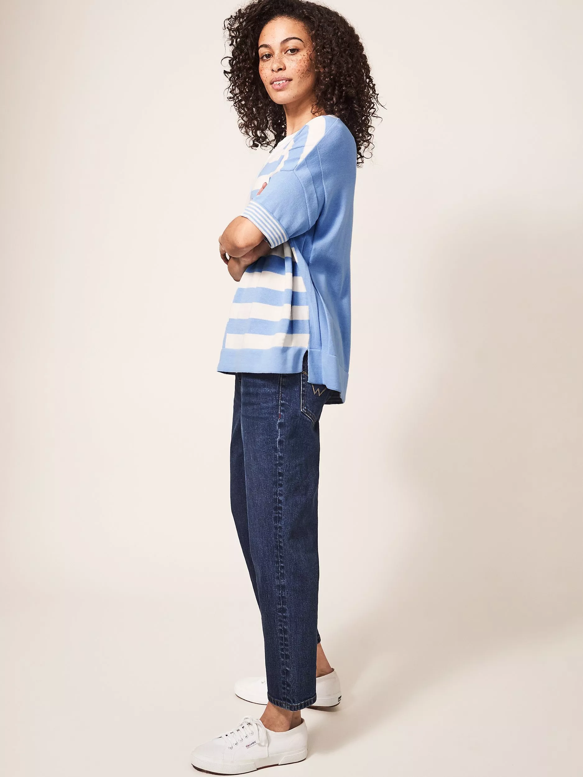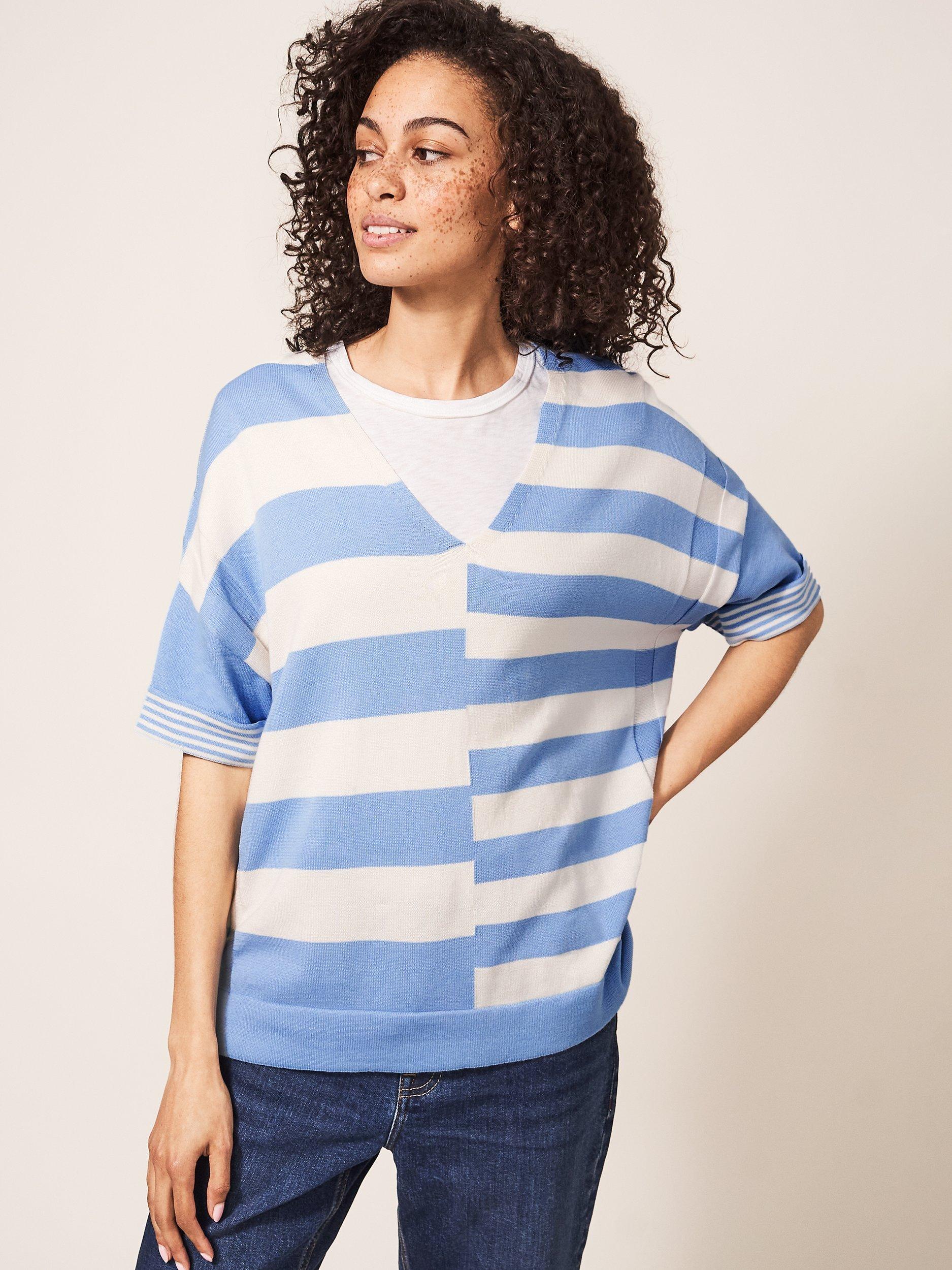 Featuring a traditional v-neckline, this lightweight jumper by White Stuff is designed with classic stripes throughout and is made of pure cotton for breathable all-day comfort.