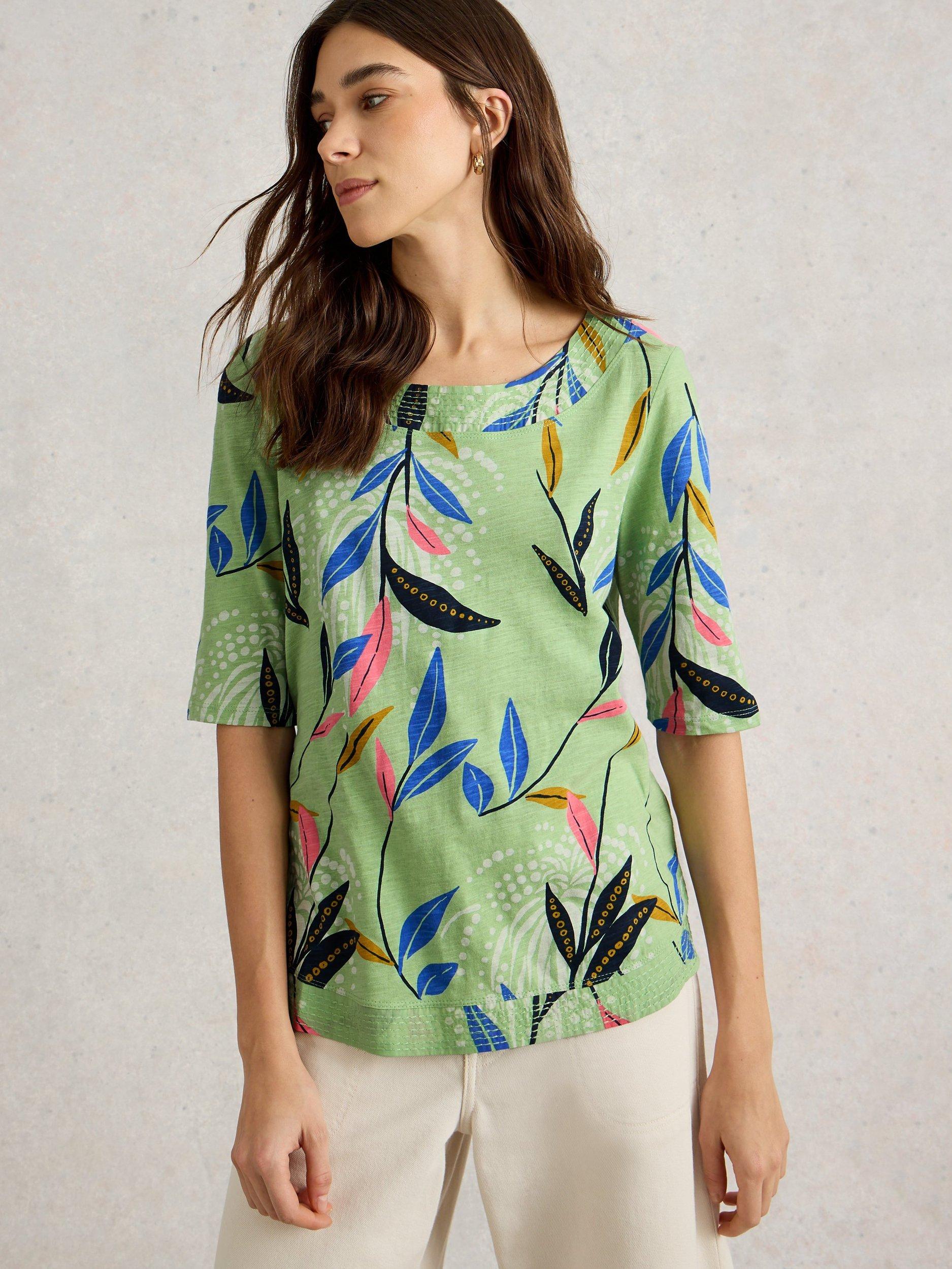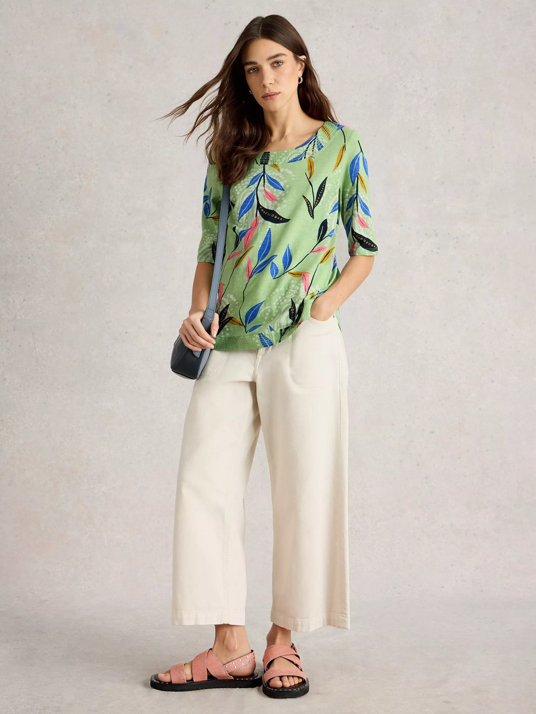 Updating your collection, this t-shirt by White Stuff adds a playful touch to any outfit with its leaf print. With a scoop neckline and three-quarter length sleeve, it's made from pure organic cotton for comfort and breathability.