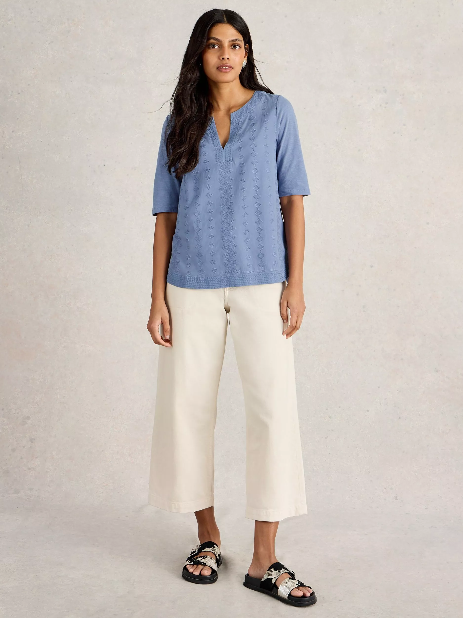 Ideal for everyday, this blouse from White Stuff features intricate embroidered detailing. Classic in cut with a notch v-neckline and short sleeves, it is made from soft and breathable organic cotton.