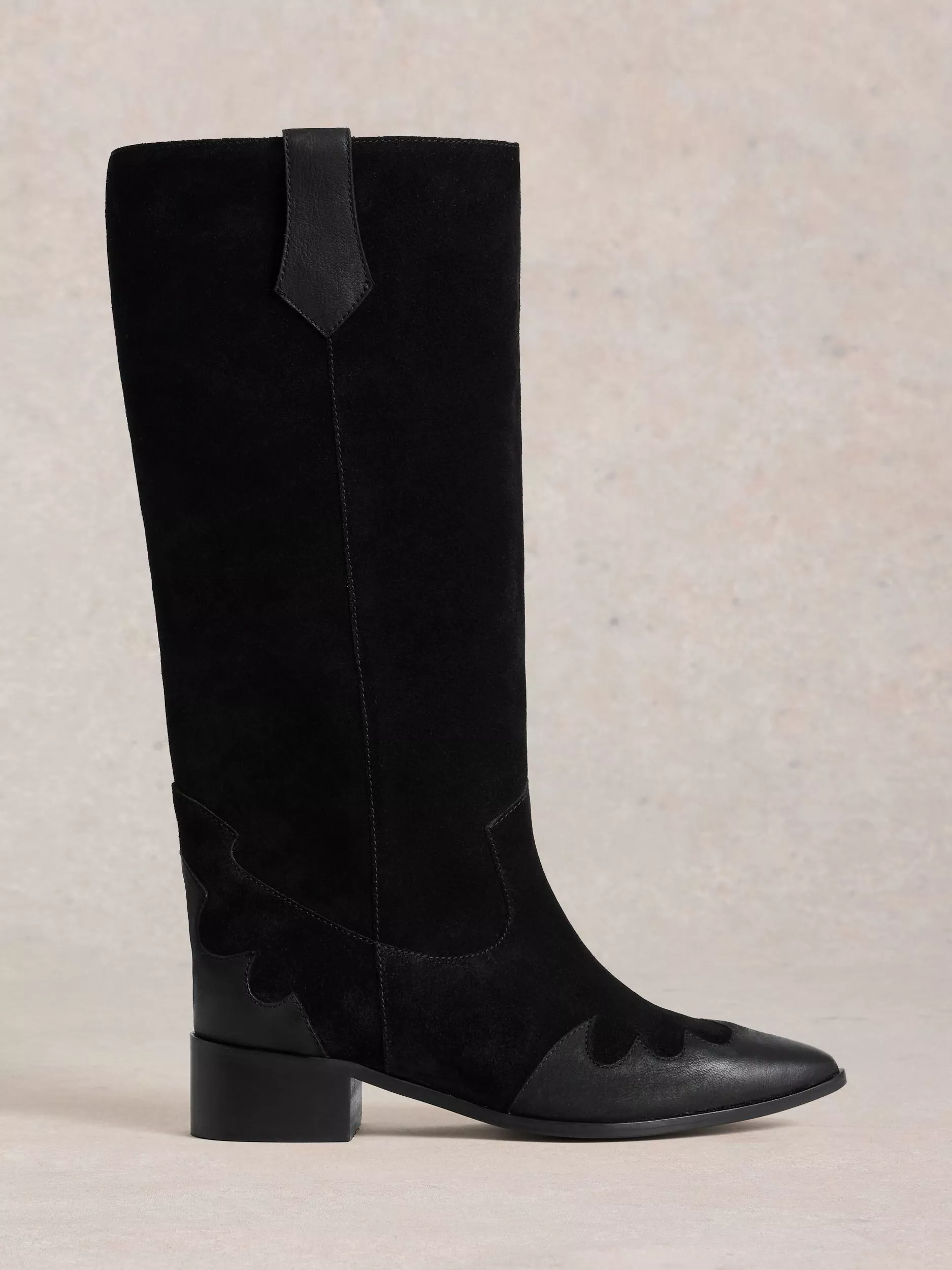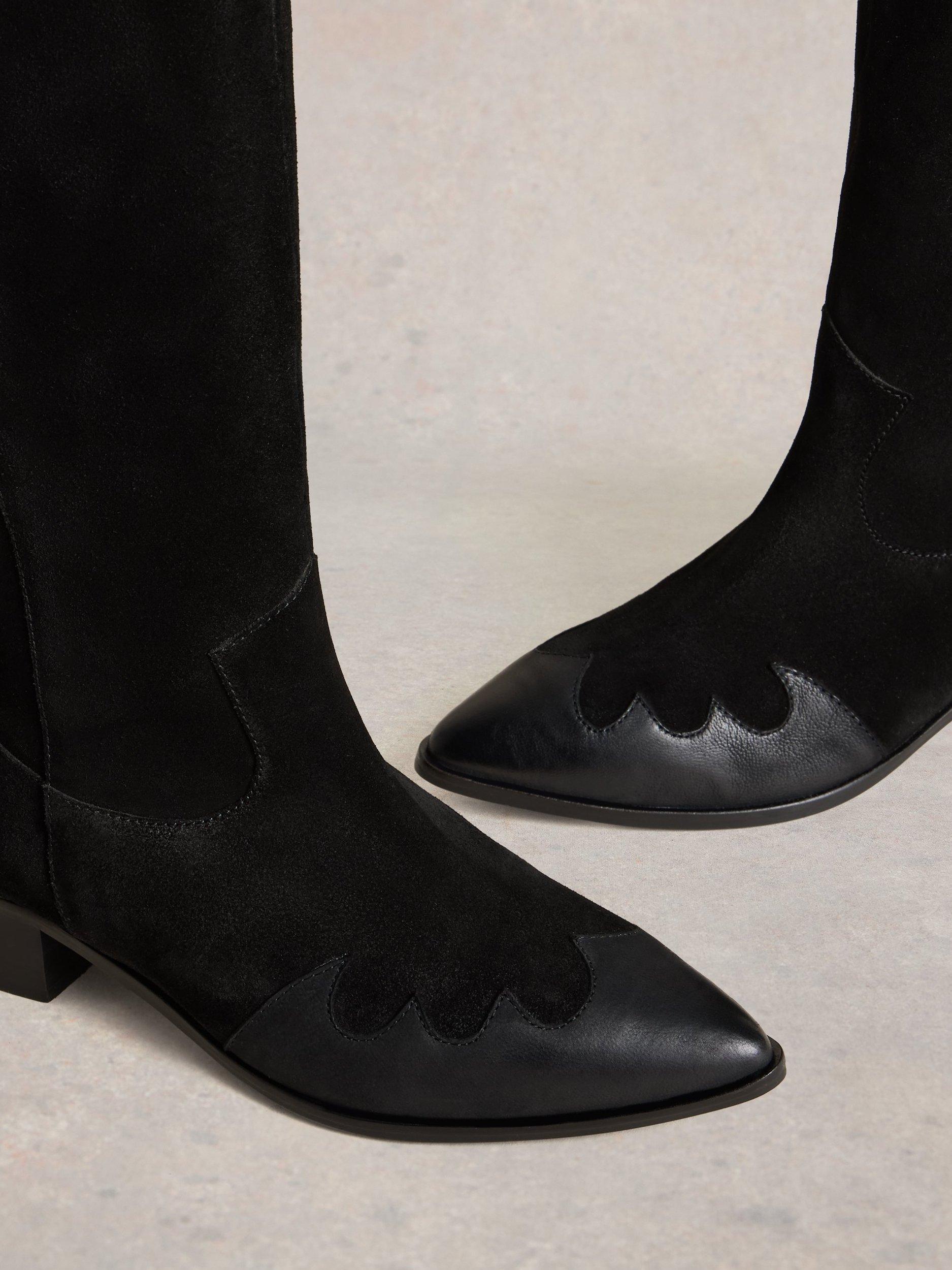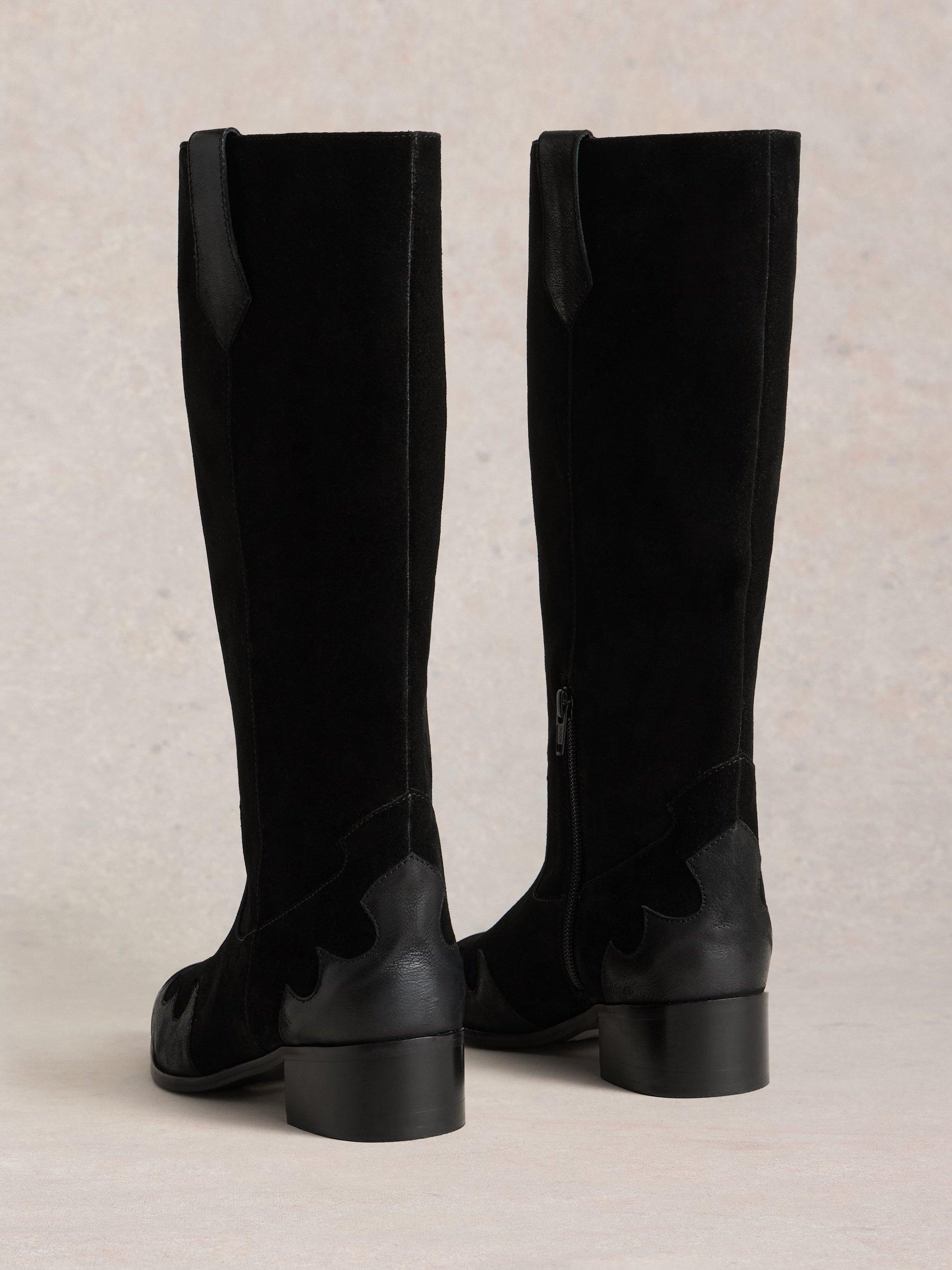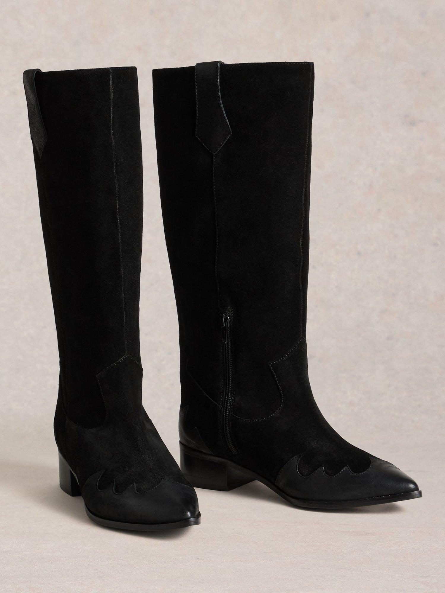 A pair of Western-inspired knee boots. Crafted in soft suede with a comfortable block heel, a pointed toe and a loose fit through the knee for easy, all-day wear.