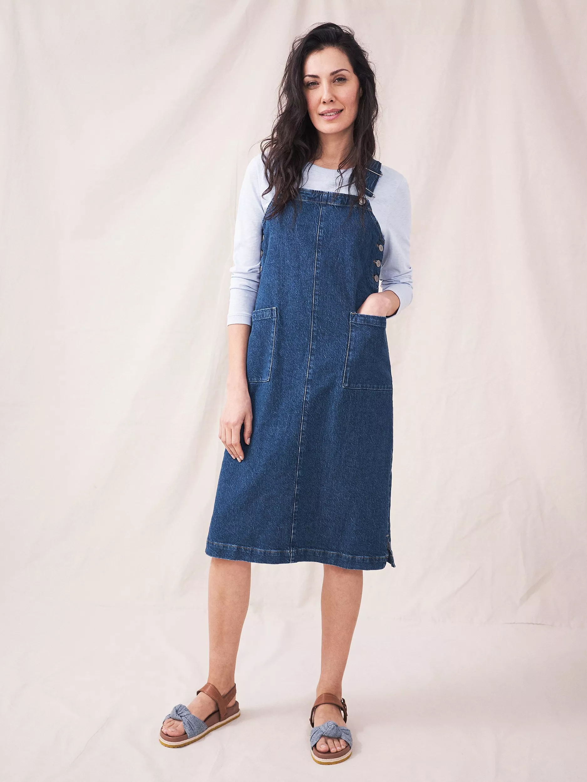 In a timeless straight shape, this knee-length pinafore dress by White Stuff is in need of no fussy details or prints to catch the eye.