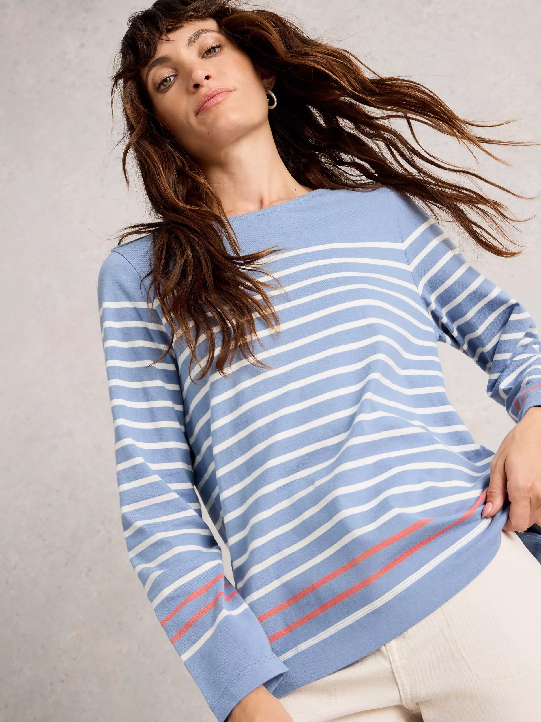 This shirt from White Stuff is printed with fresh stripes throughout. Cut with a fuss-free round neck and long sleeves, it is light and breathable in cotton.