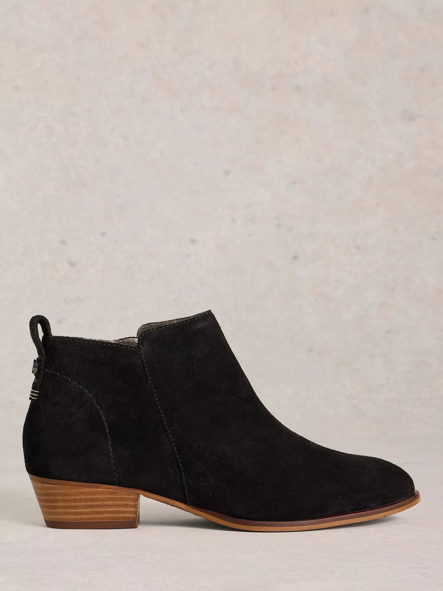Crafted from soft suede, the Willow ankle boots from White Stuff feature a pull tab, zip-side fastening, almond toe and 3cm block heel.