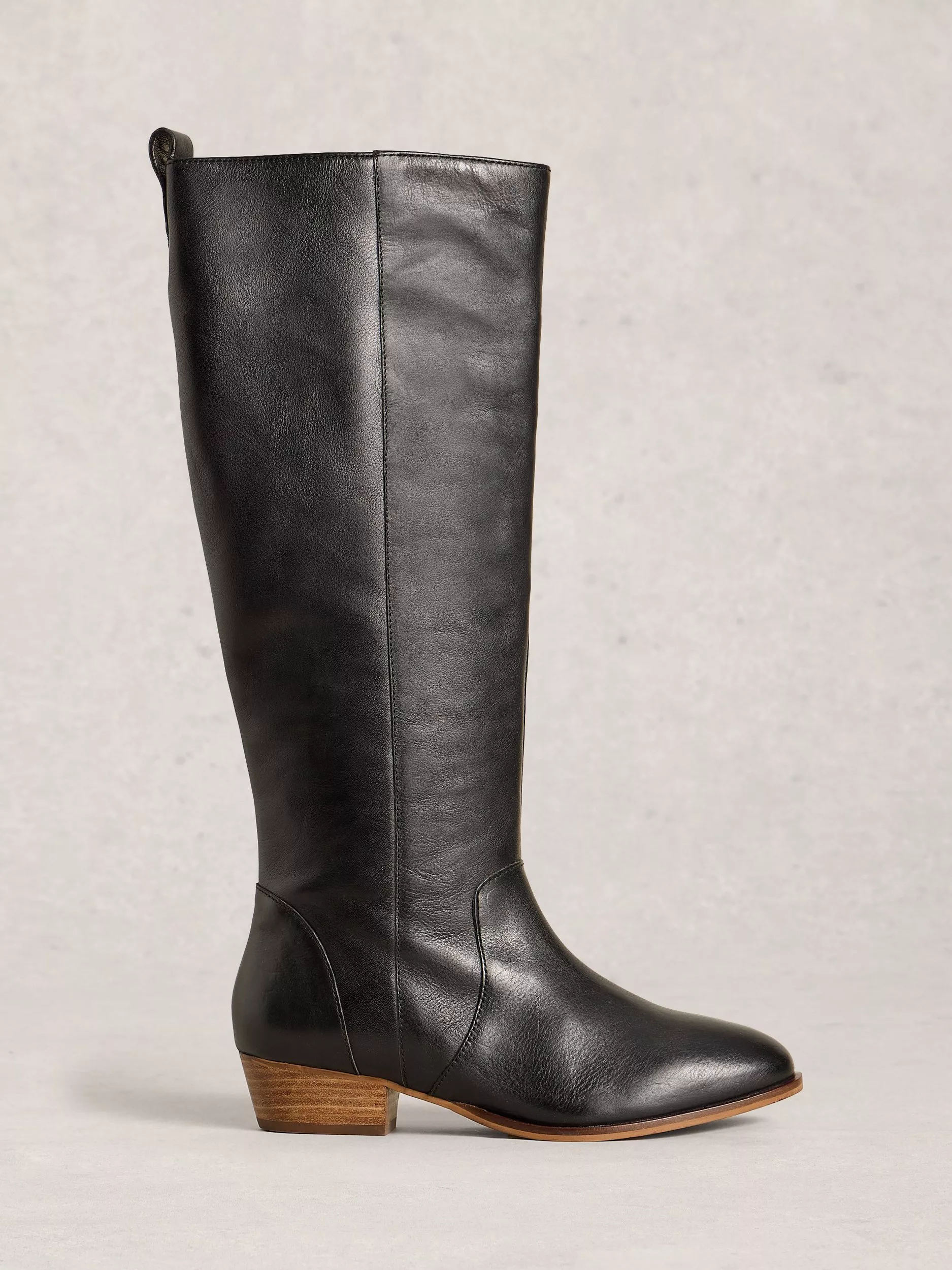 Knee-high boots crafted from smooth leather with a comfortable block heel, supportive wide fit, and easy zip fastening. Designed for everyday confidence and comfort, they complement your smart outfits and bring flair to winter days.