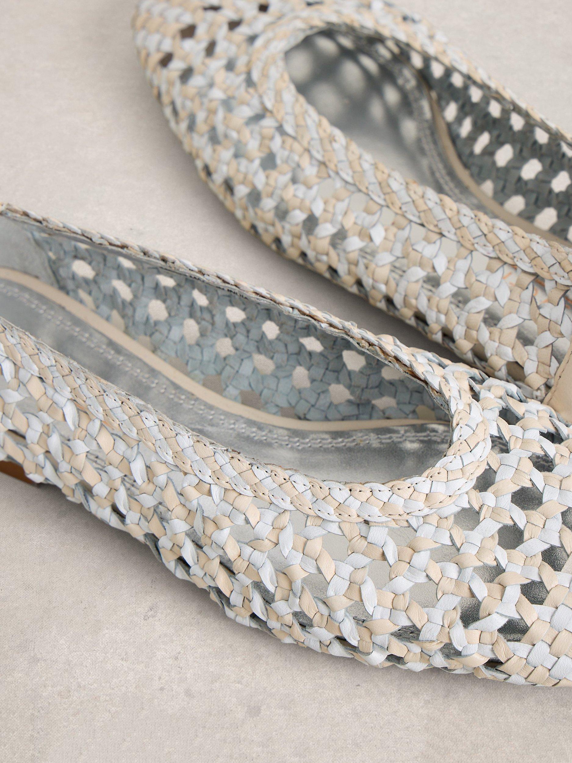 Low block heel woven geometric ballerina pumps by White Stuff. Crafted from supple leather with a leather lining, they offer comfort with comfortable memory foam soles and a secure slip-on fit.