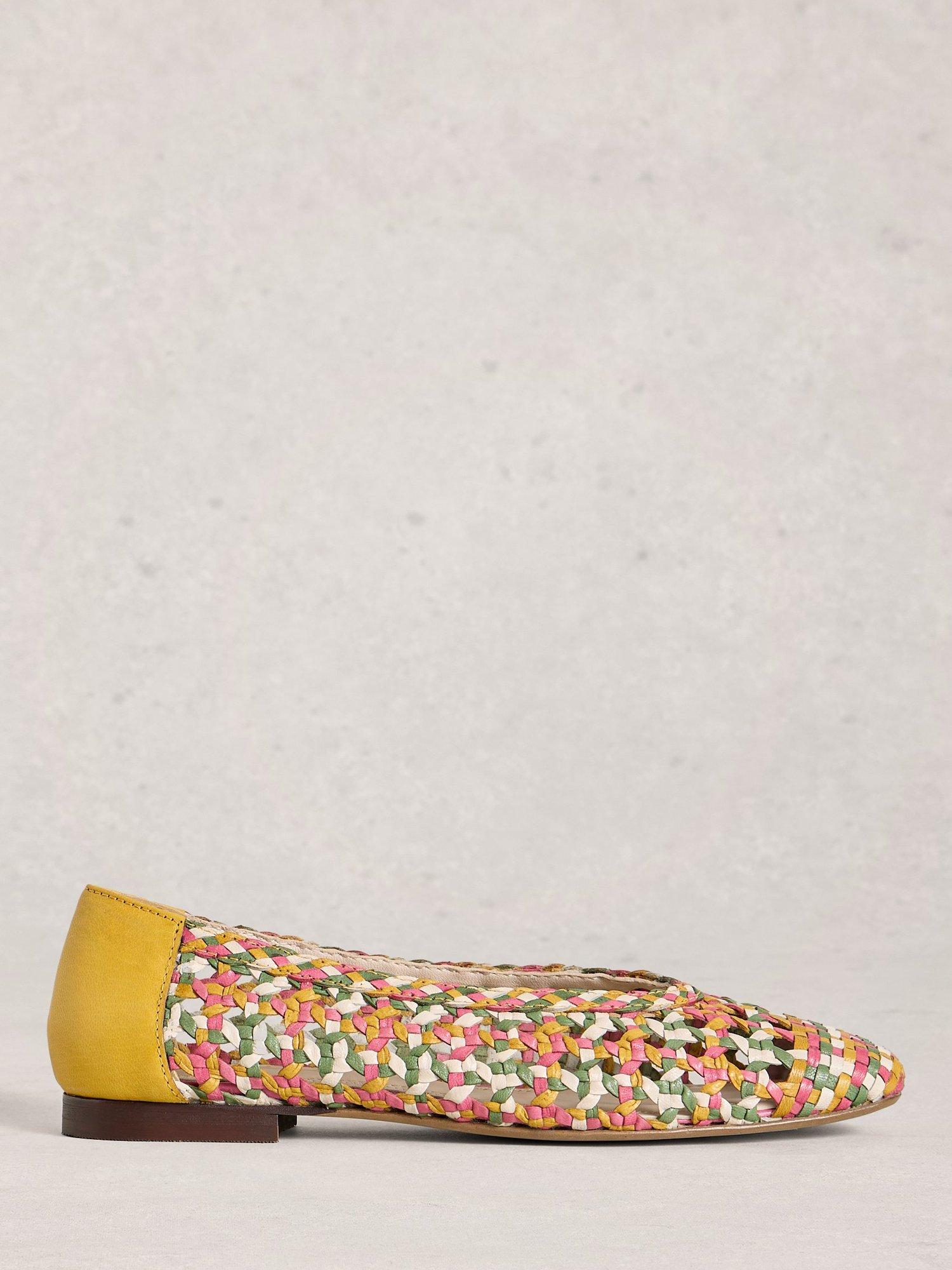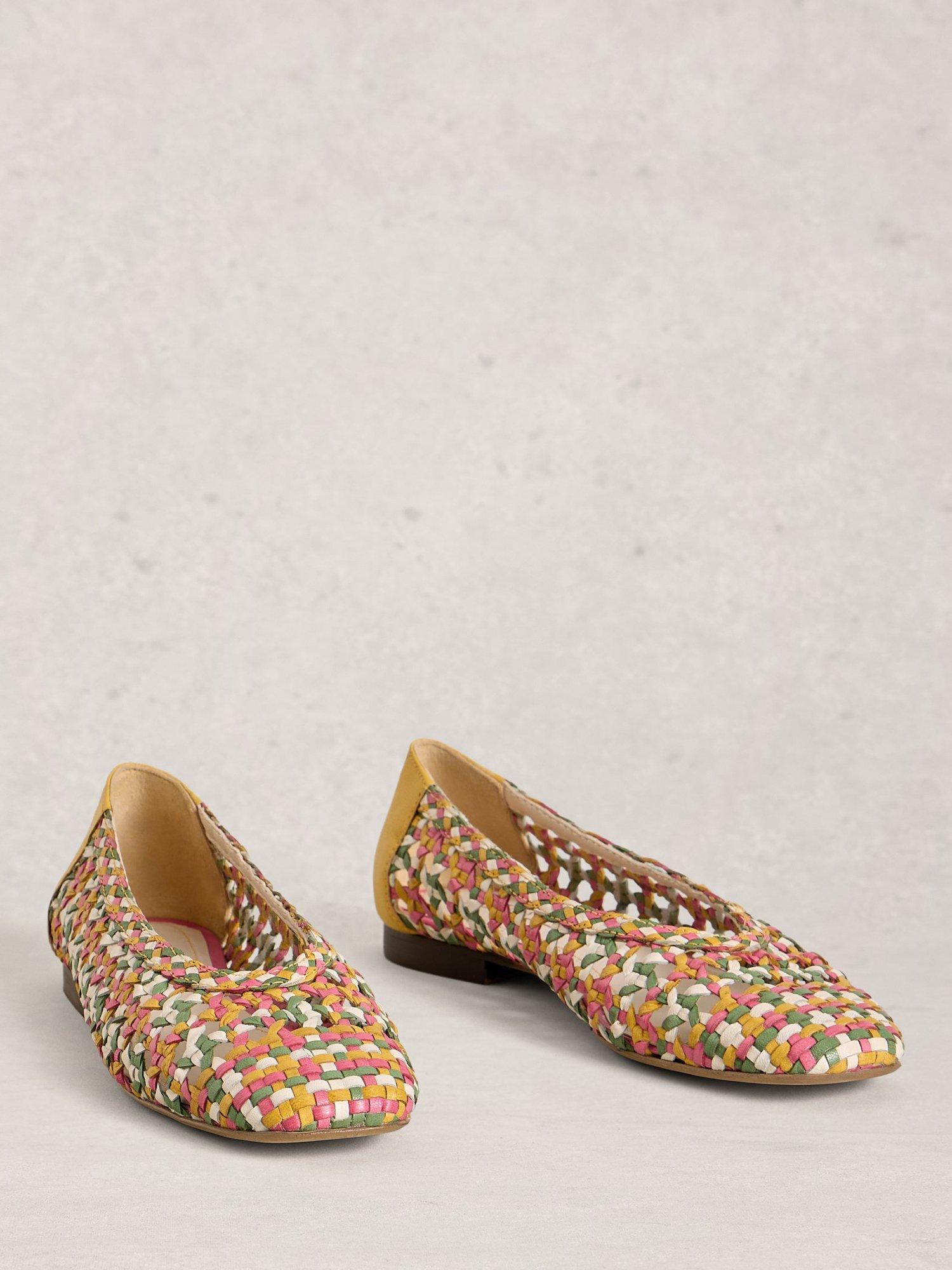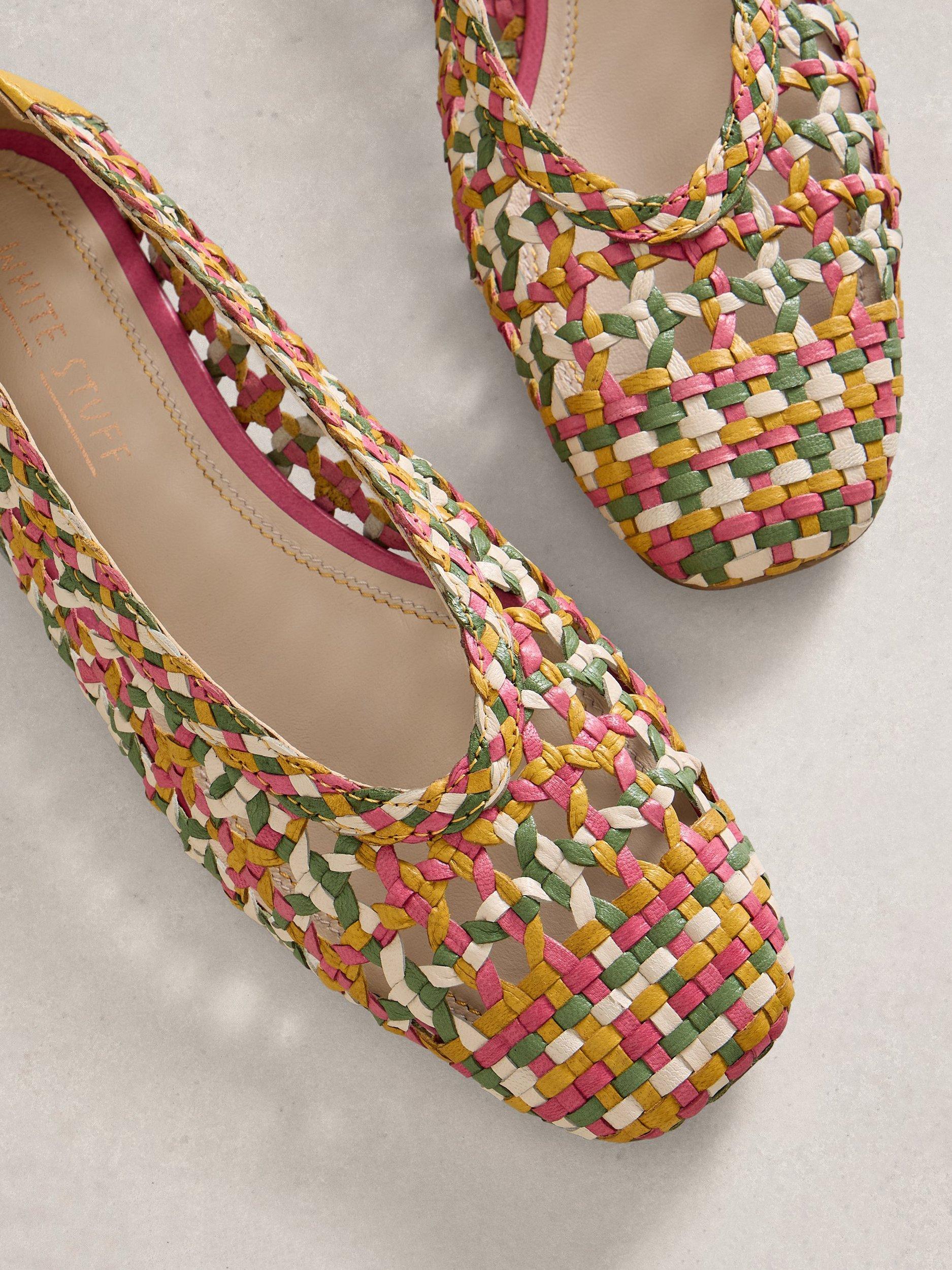 Low block heel woven geometric ballerina pumps by White Stuff. Crafted from supple leather with a leather lining, they offer comfort with comfortable memory foam soles and a secure slip-on fit.
