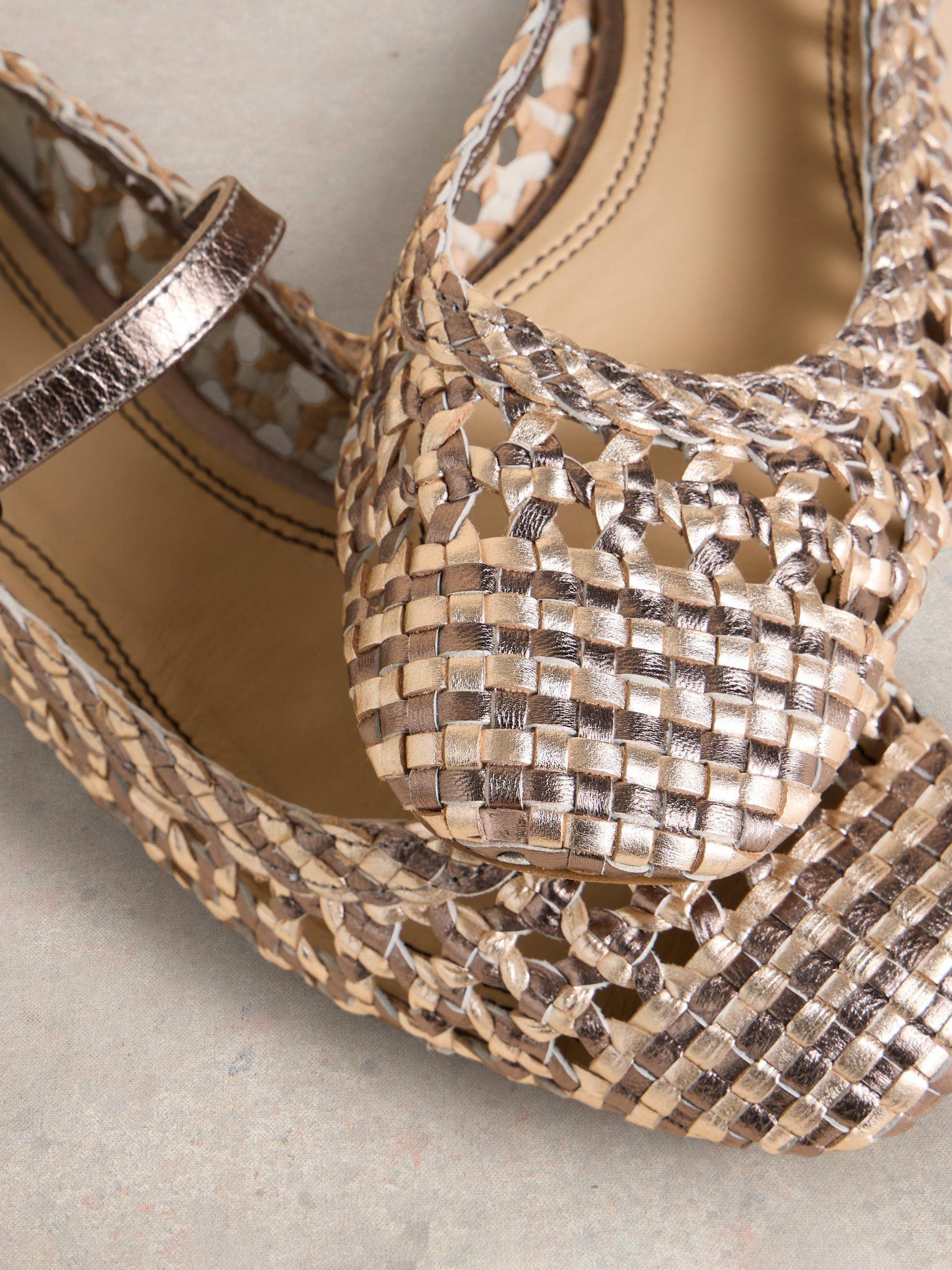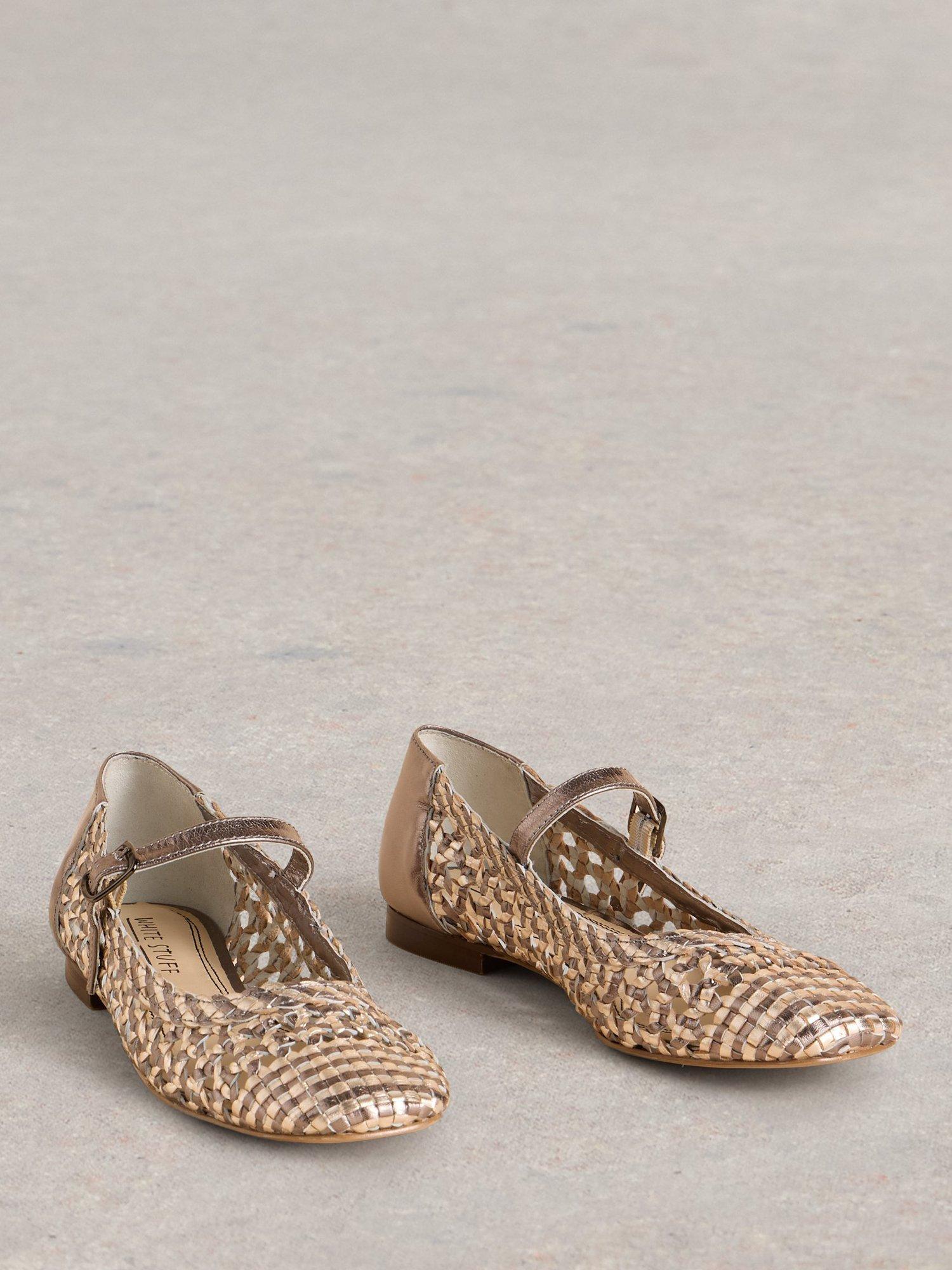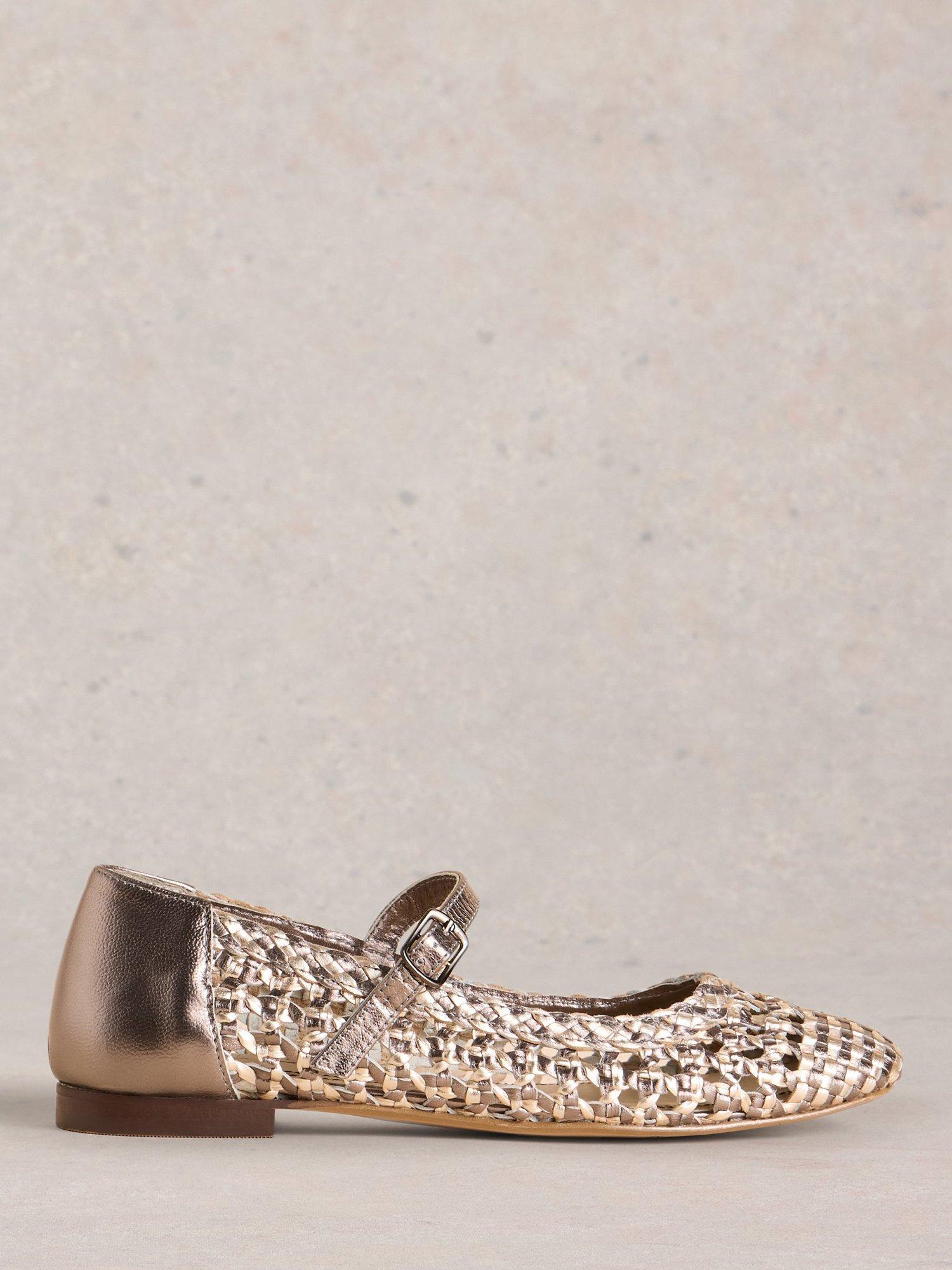 A modern twist on the classic ballerina with a woven pink and metallic look, with comfortable memory foam soles. Breathable and comfortable for summer.