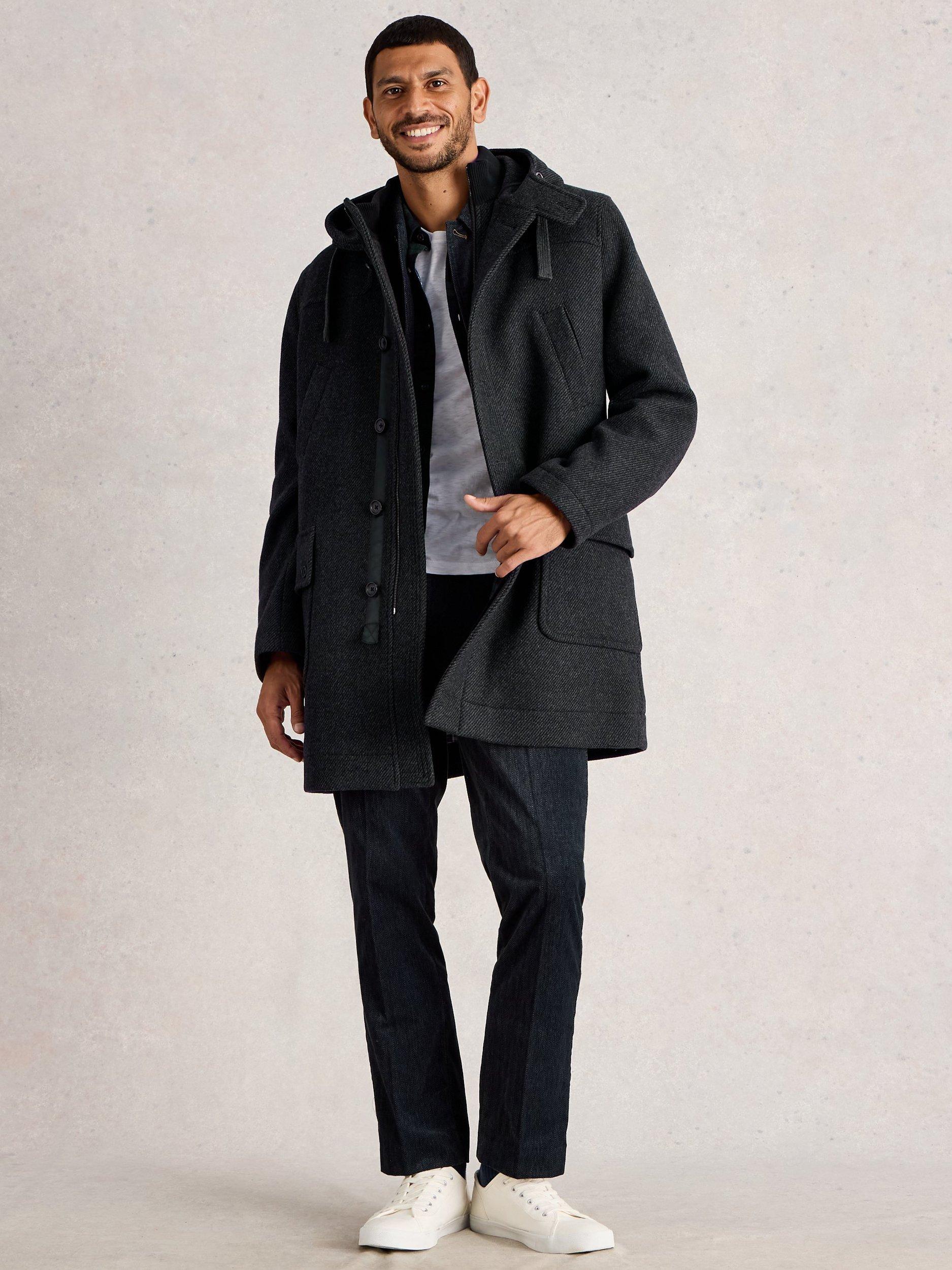 A heavy-weight coat featuring a hood, convenient pockets, buttons and a zip. There's no more of a stylish and comfortable way to keep yourself warm in the cooler months.