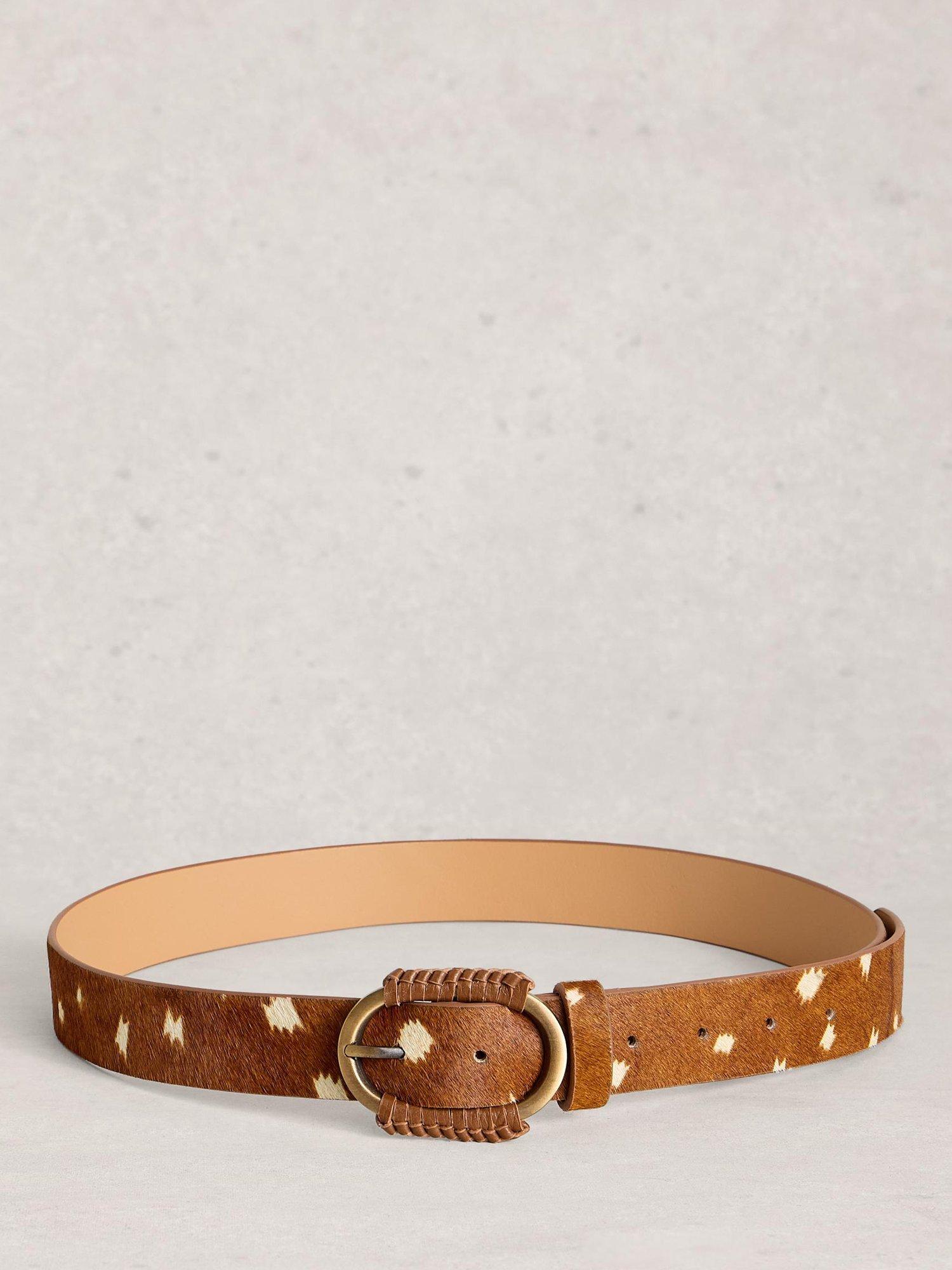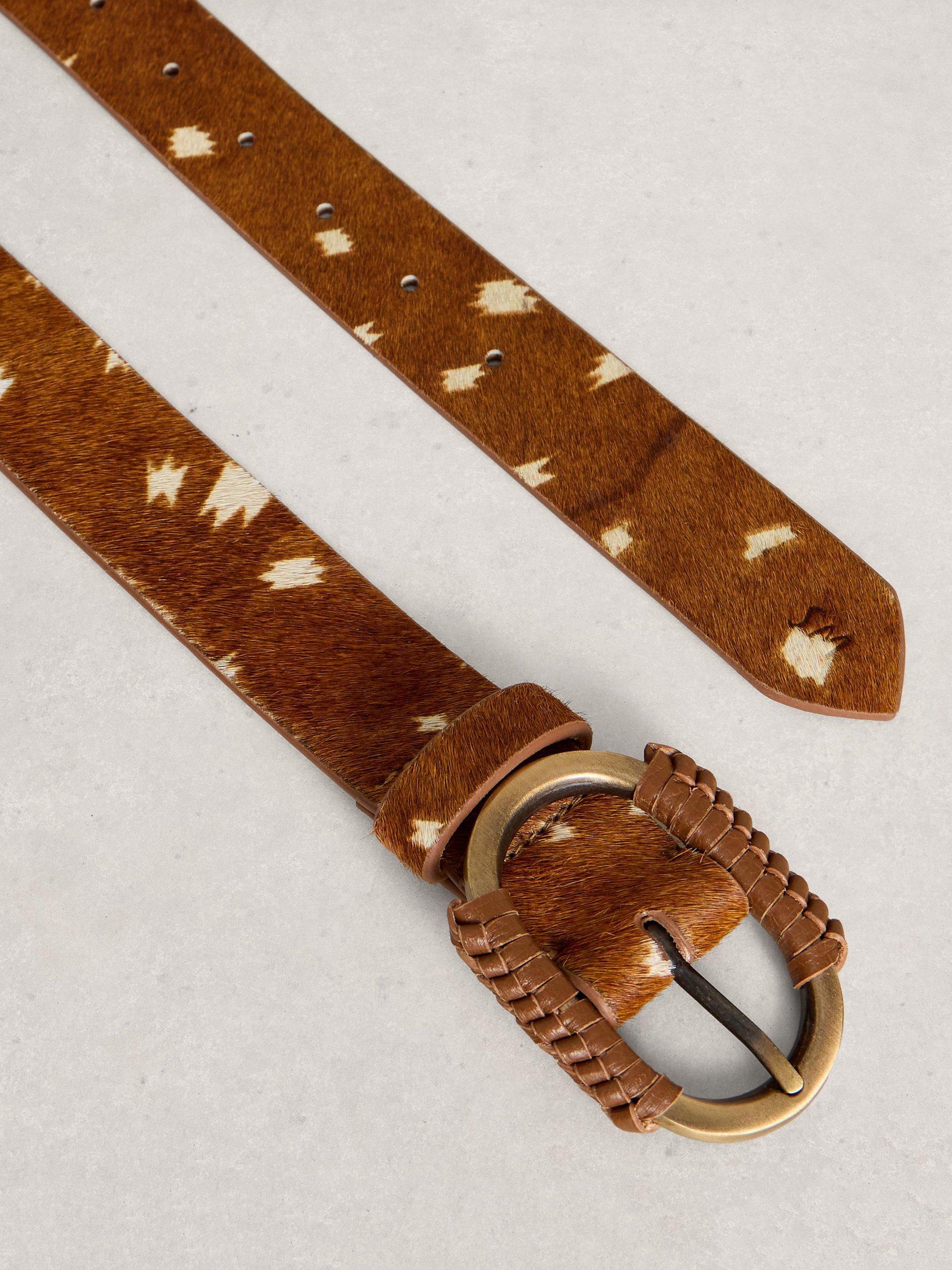 A textured animal-spot belt by White Stuff, made in hair-on-hide leather.