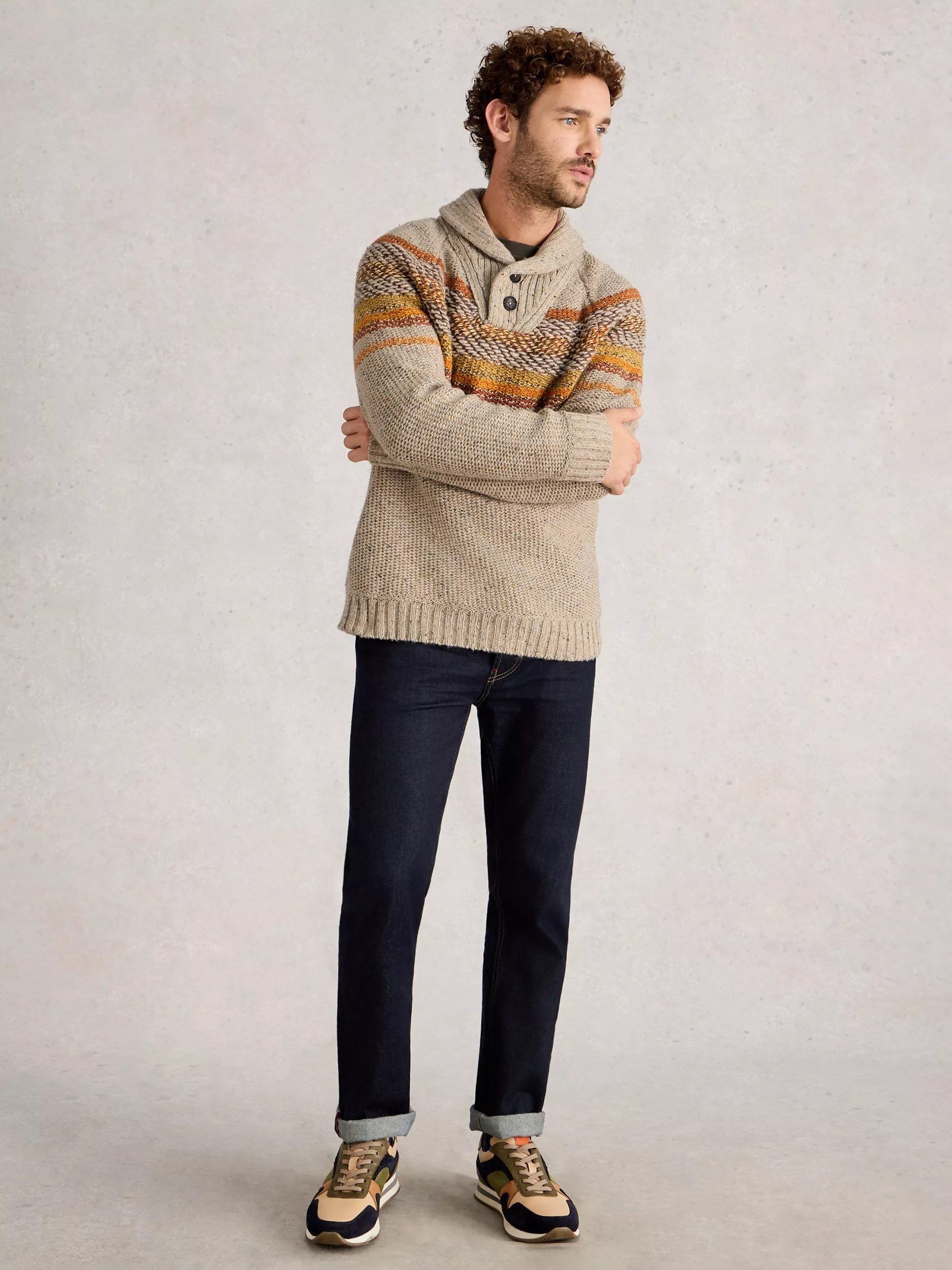 Framed with a collar neckline for an elevated feel, this jumper from White Stuff boasts a striped detail at the chest and is made for layering over shirts when the breeze rolls in, under winter coats as the temperature drops and everything in between.