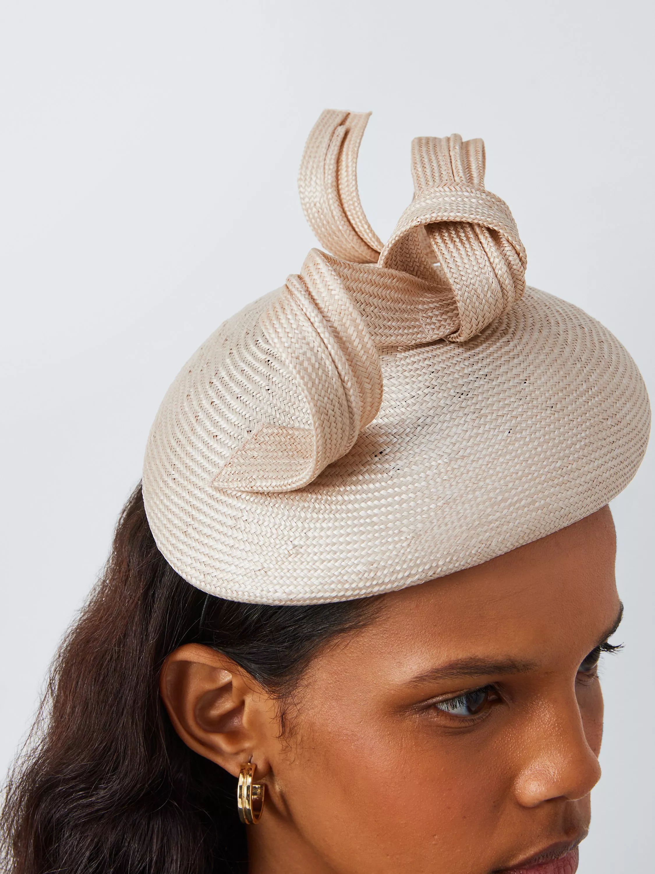 This chic occasion hat has a beret shape with a detailed parasisal knot trim.