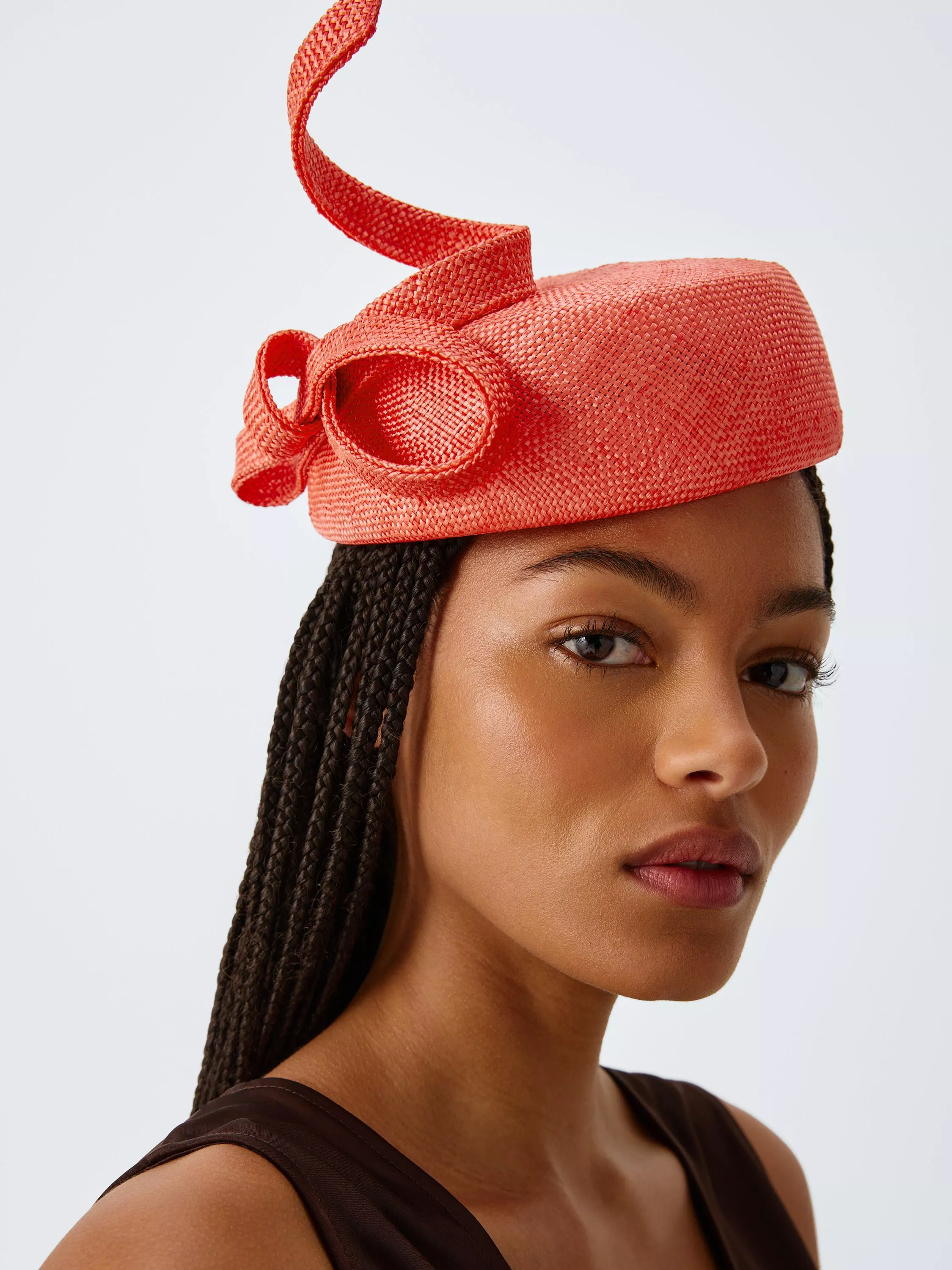 A classic parisisal pill box fascinator with side knot trim.