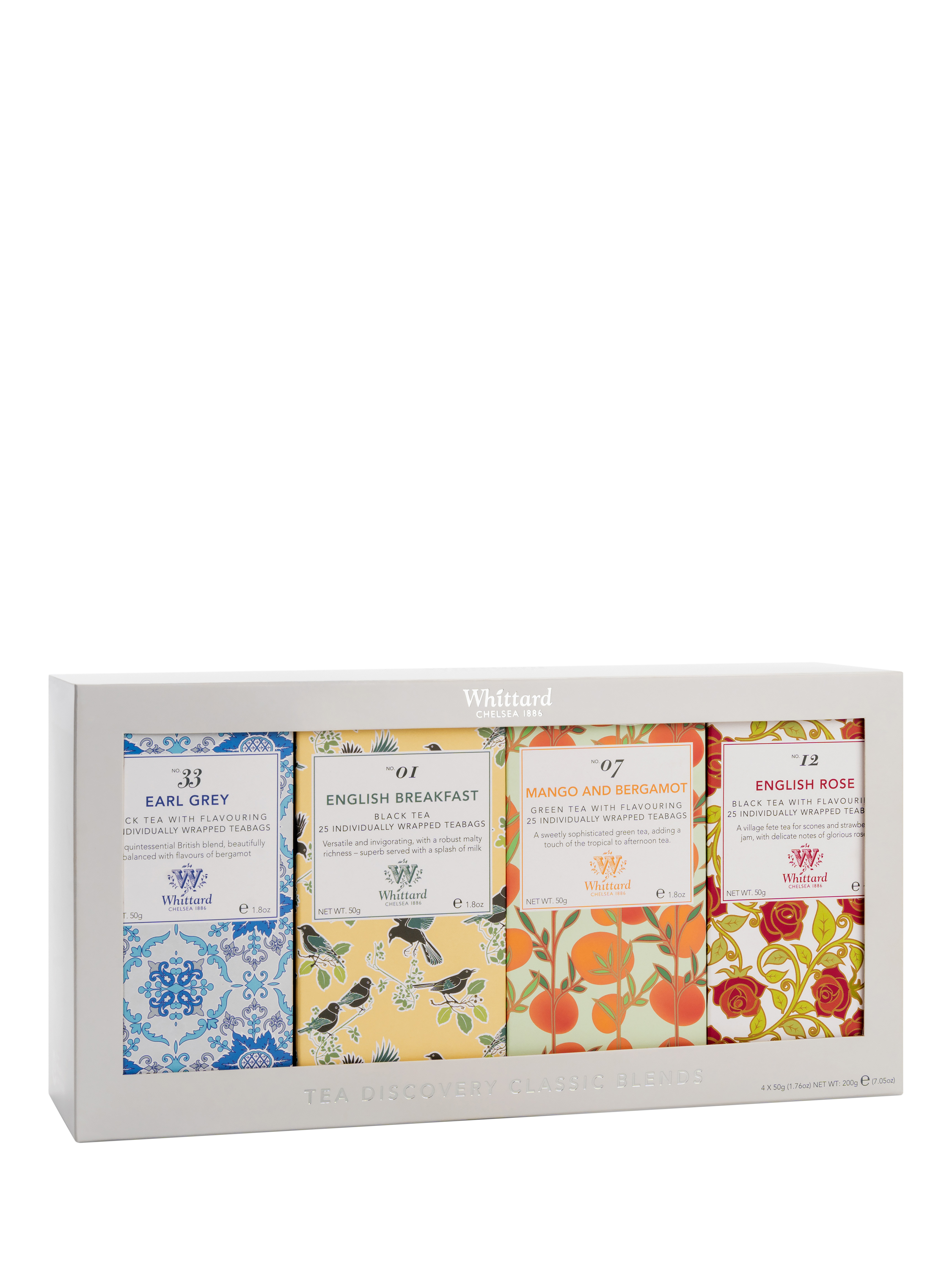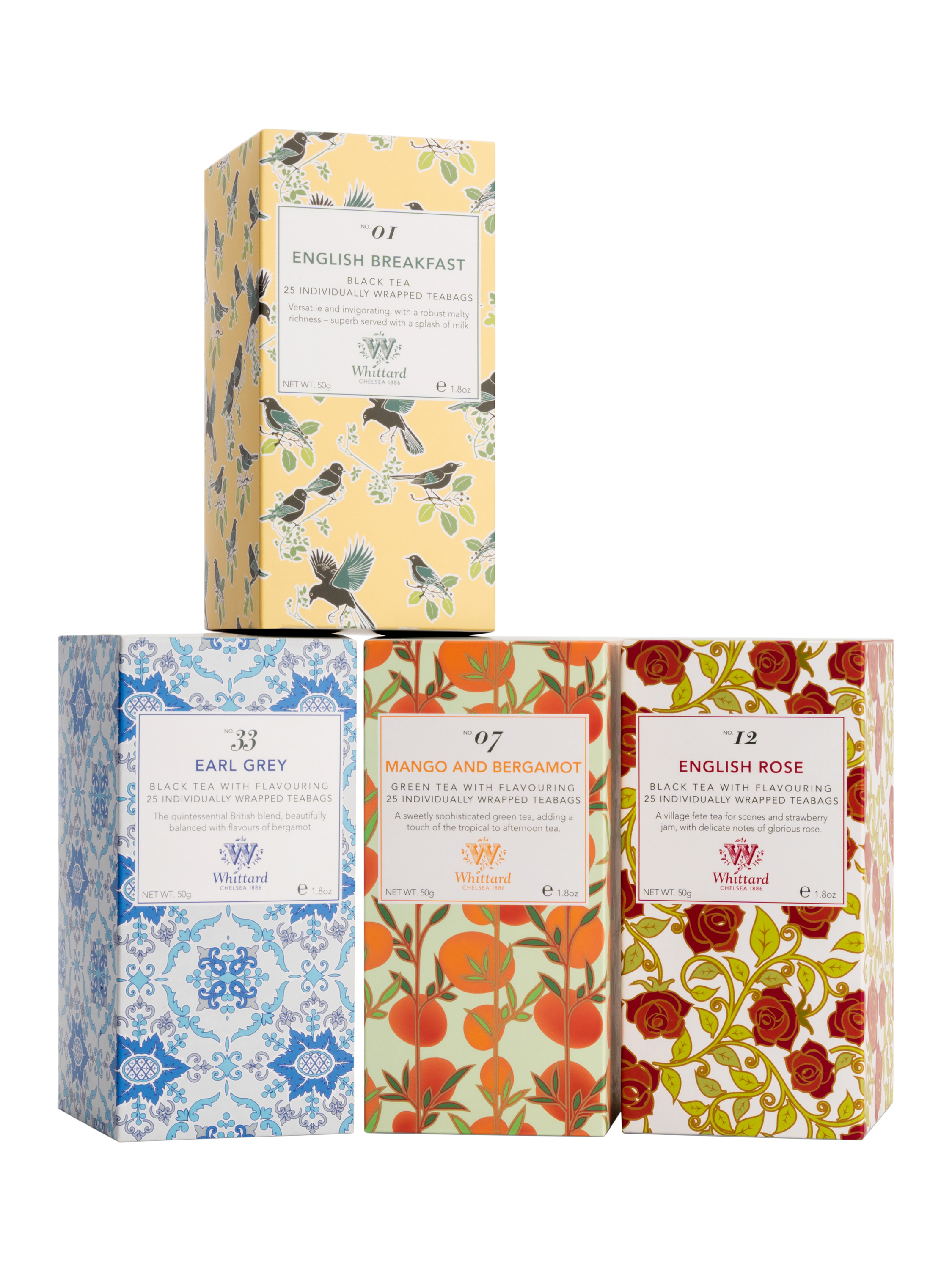 With these four magnificent teas, afternoons have never been so elegant. Choose from Mango and Bergamot to good old English Breakfast.