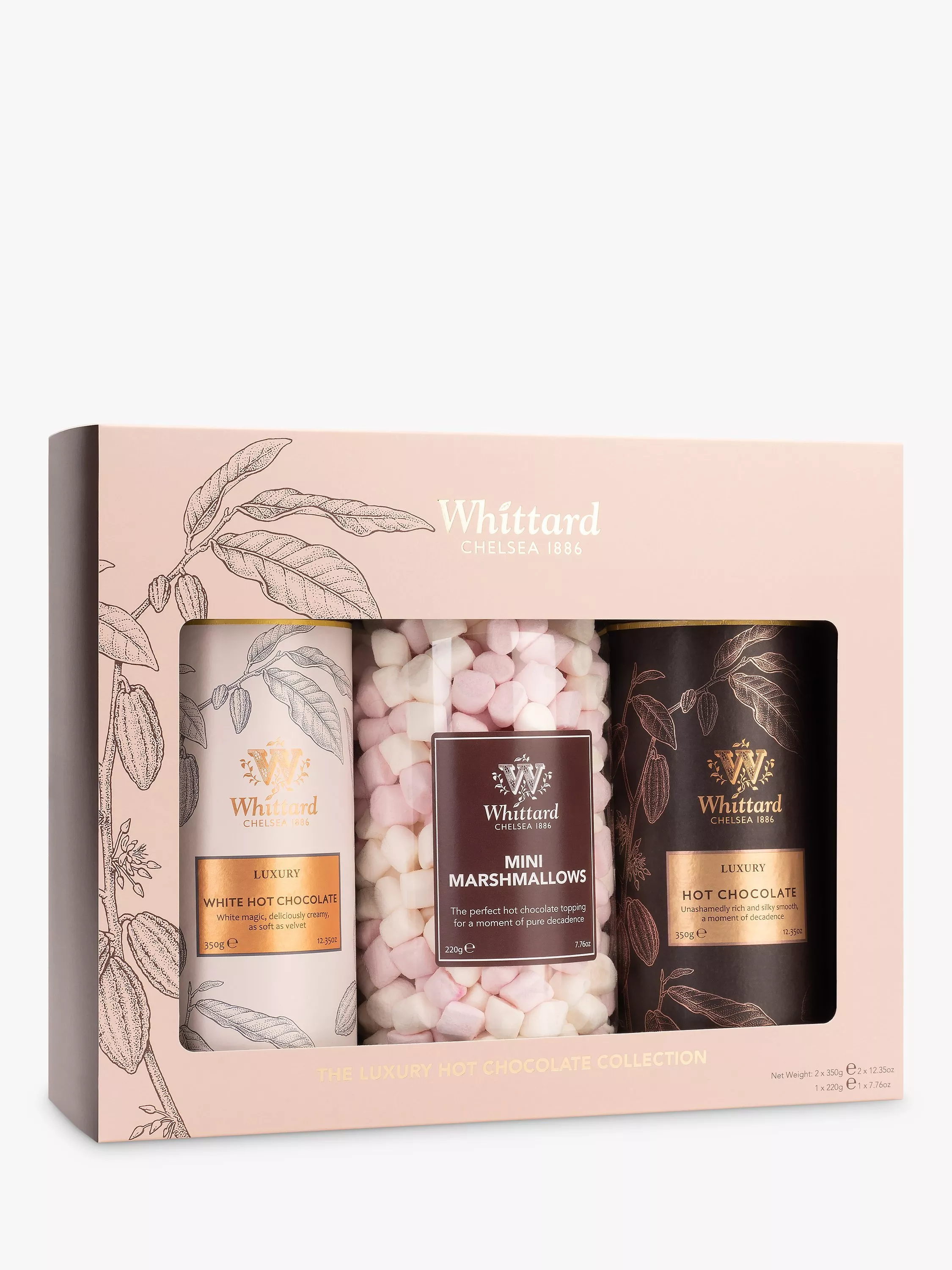 Whittard's luxury milk and buttery-sweet; luxury white are at the heart of their hot chocolate collection and are firm customer favourites. Why not try with a swirl of whipped cream and to take luxury to new heights add a tower of marshmallows on top! Whittard's hot chocolate gift set is the perfect gift for hot chocolate lovers.