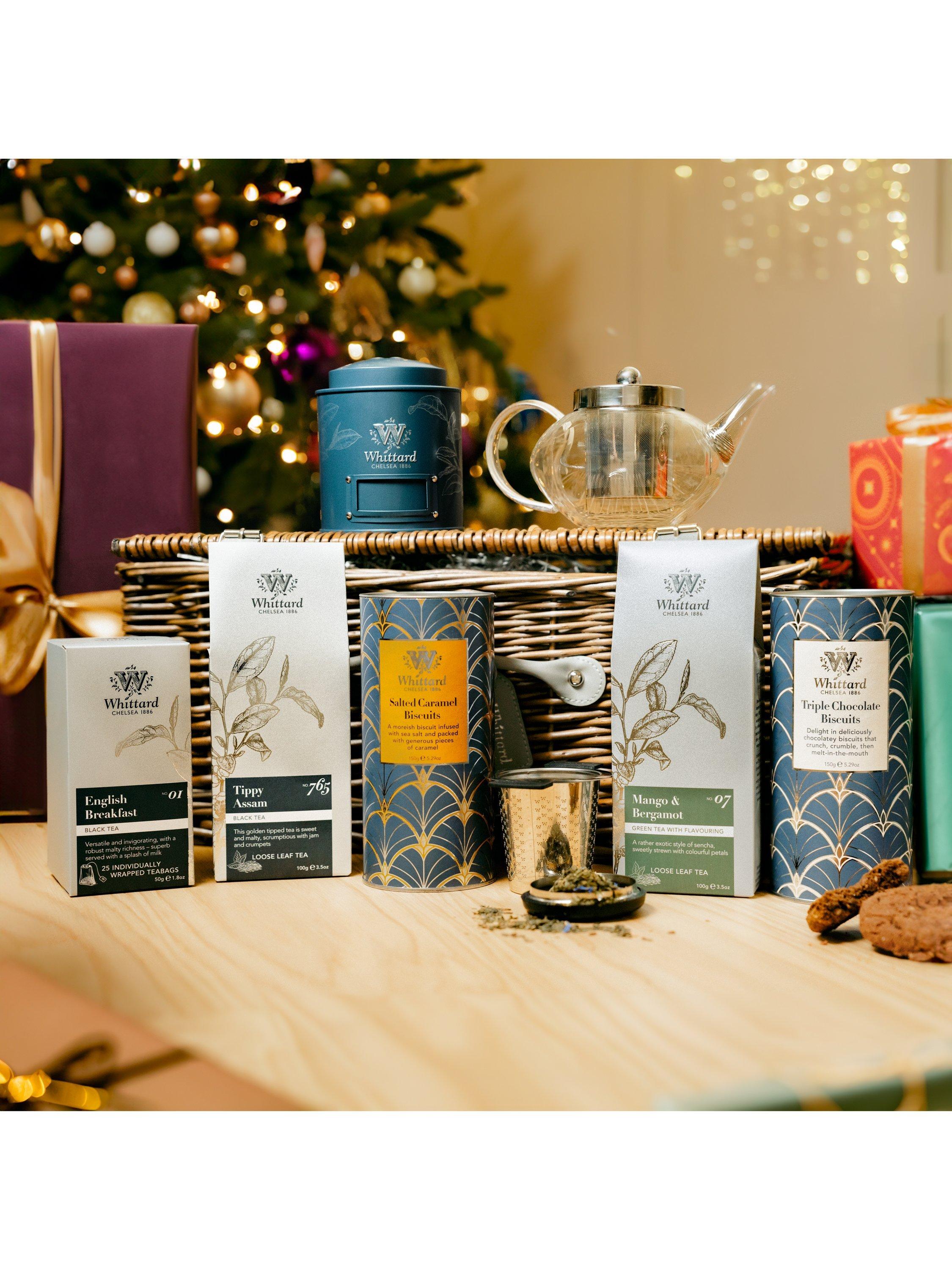 Elevate tea time with this wicker basket hamper. Inside, you'll find three of Whittard's finest tea flavours: Luxury English Breakfast Teabags, Tippy Assam and Mango & Bergamot Loose Leaf Tea. You'll also find a Pimlico teapot, a mess-free infuser for a single cup and a stylish tea caddy. Finally, tea time wouldn't be the same without a biscuit or two so Whittard have included Salted Caramel and Triple Chocolate biscuits too.