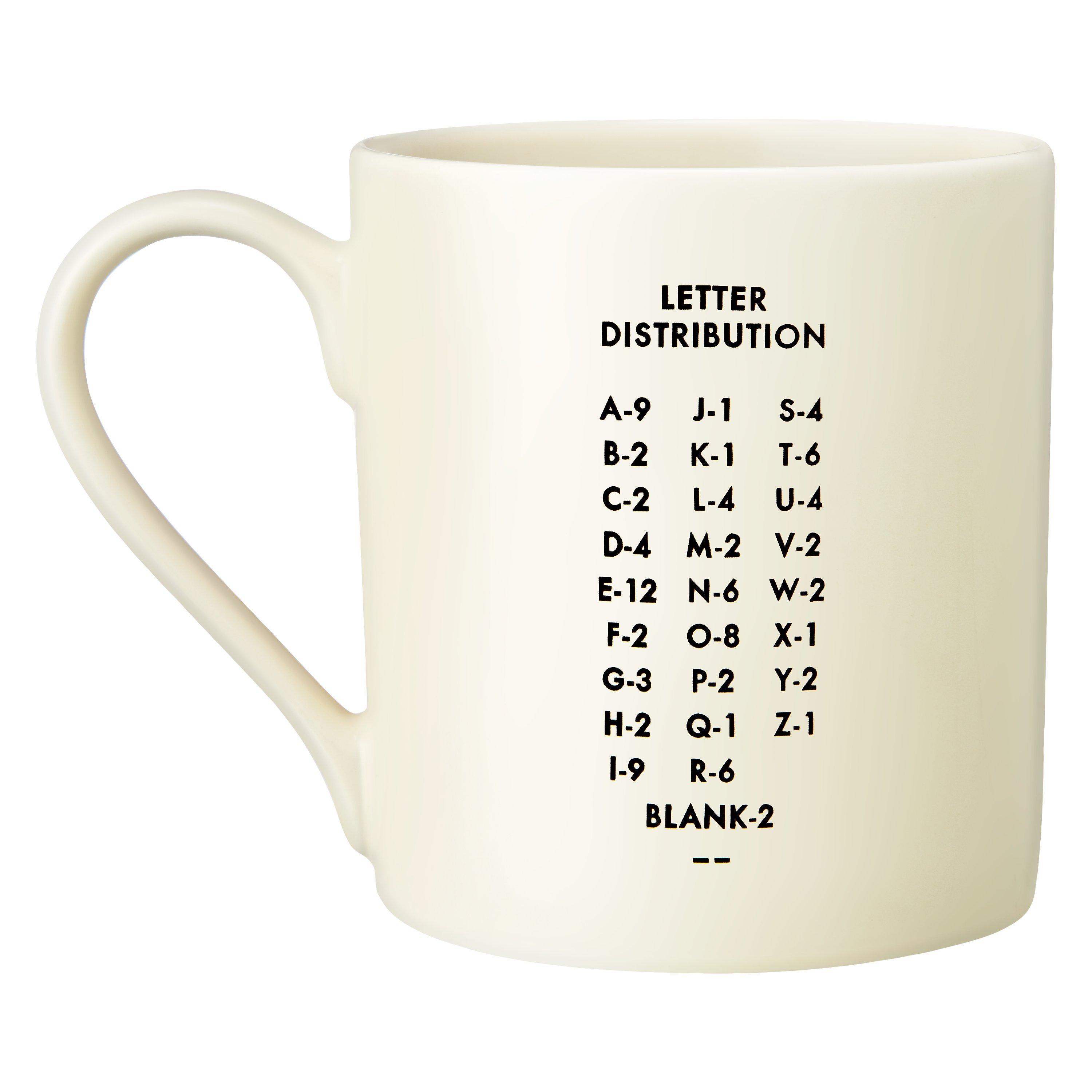 Crafted from quality ceramic, each mug Scrabble letter on the front and the official Scrabble letter distribution chart on the back.