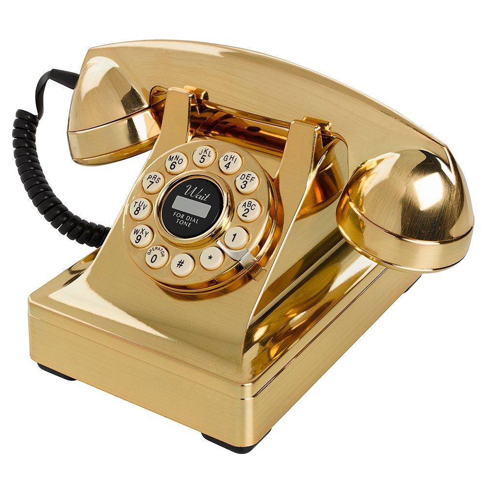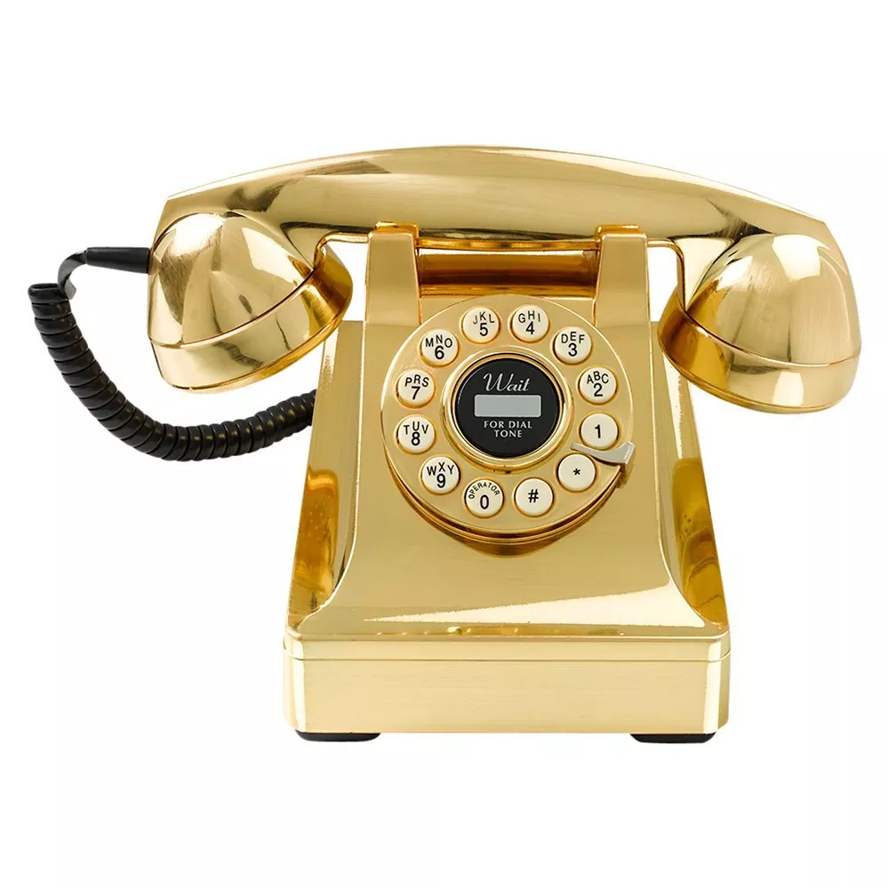 This gorgeous gold telephone from Wild & Wolf will make a striking statement in your hallway. An icon of style, this shape can be found in some of the world's finest hotel lobbies. Originally cast in heavy duty metal, it was later reconditioned in a lightweight thermoplastic for a more appealing curved design. Bring this sleek piece into your home and add an element of boutique hotel to your interiors. With a simple set up, this phone plugs directly into a standard telephone socket.