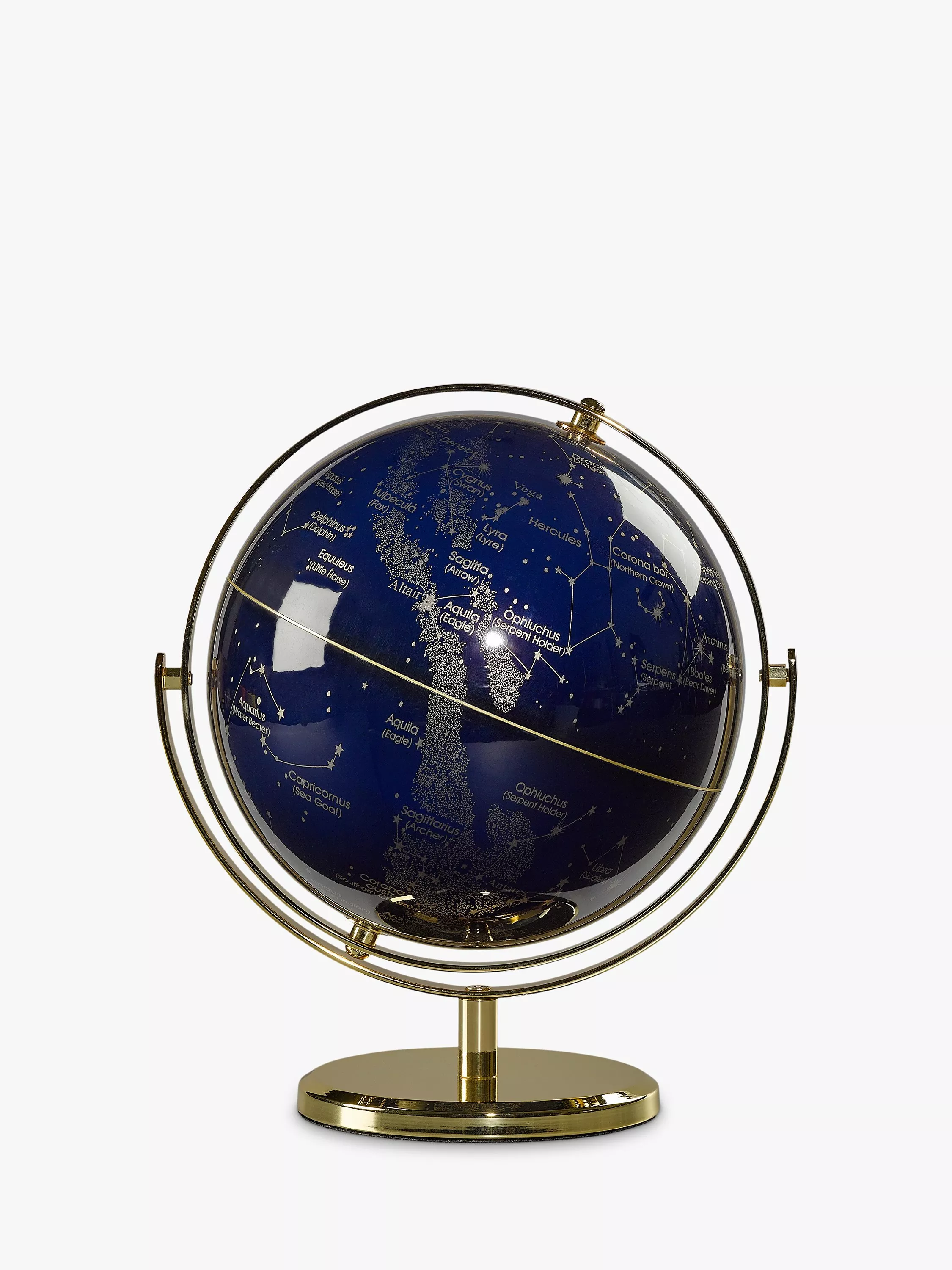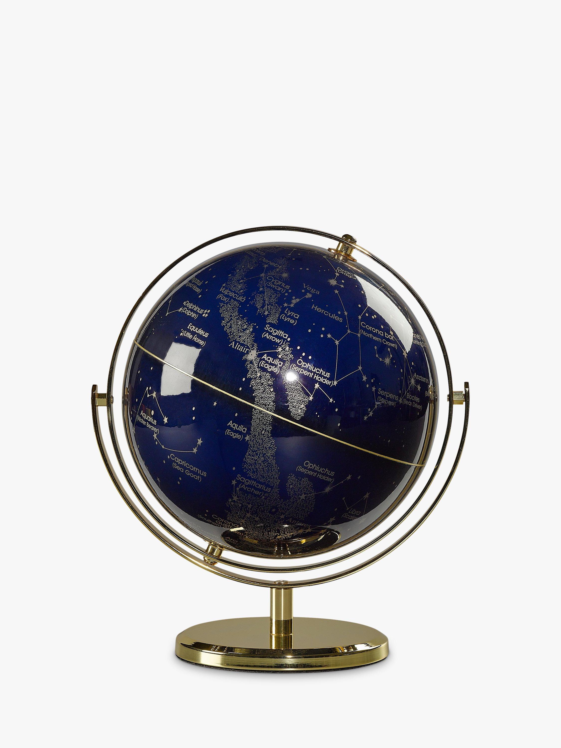 The entrancing combination of the shimmering gold constellations against a dark blue sky makes this globe a statement addition to any desk, home or office. Mounted on a two directional 360° spinning stand, you can explore the stars from all directions. Expand your knowledge of the stars with this night sky globe, featuring a fascinating collection of star names and constellations.