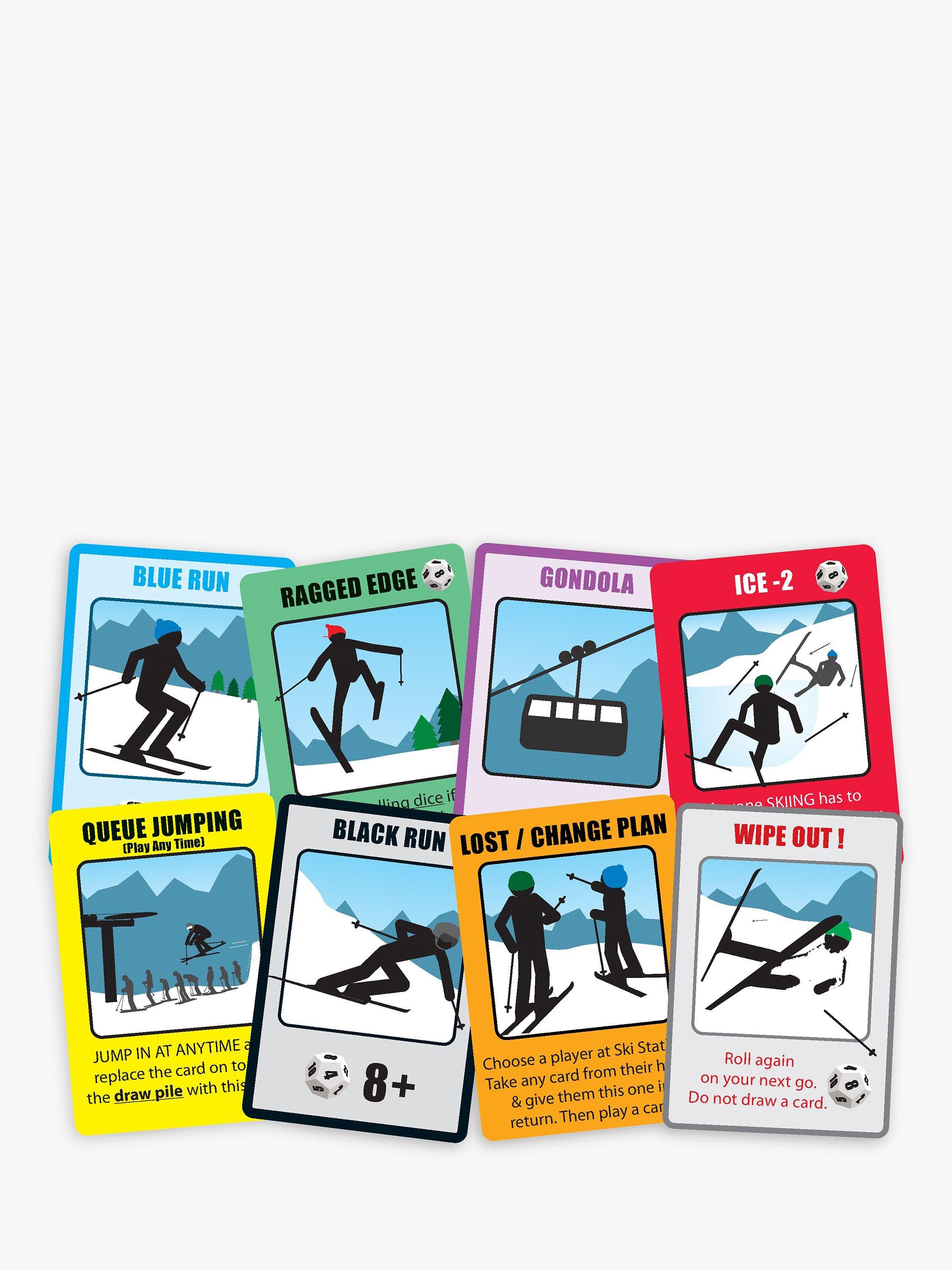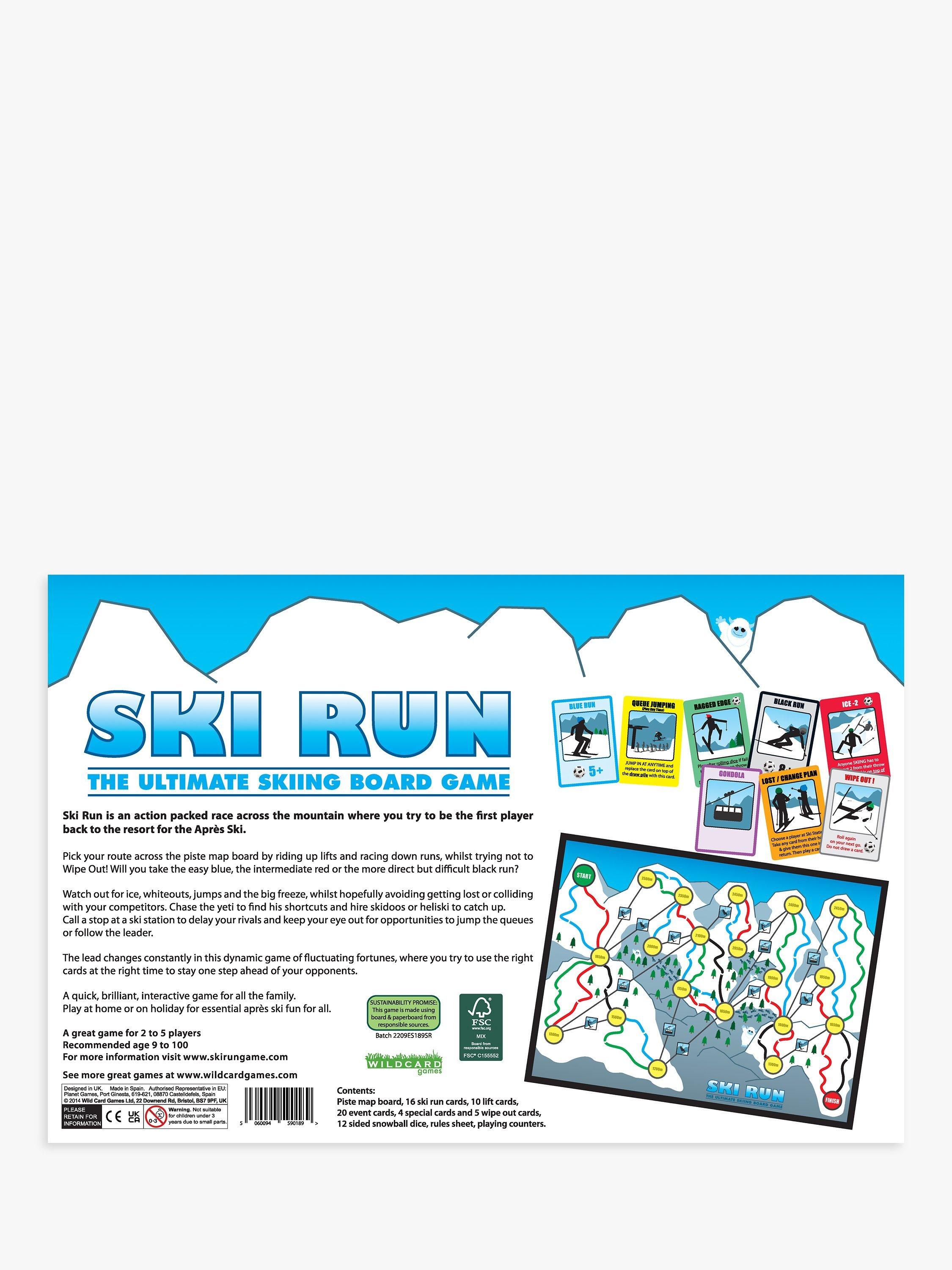 Pick your route across the piste map board by riding up lifts and racing down runs, whilst trying not to Wipe Out! Will you take the easy blue, the intermediate red or the more direct but difficult black run?