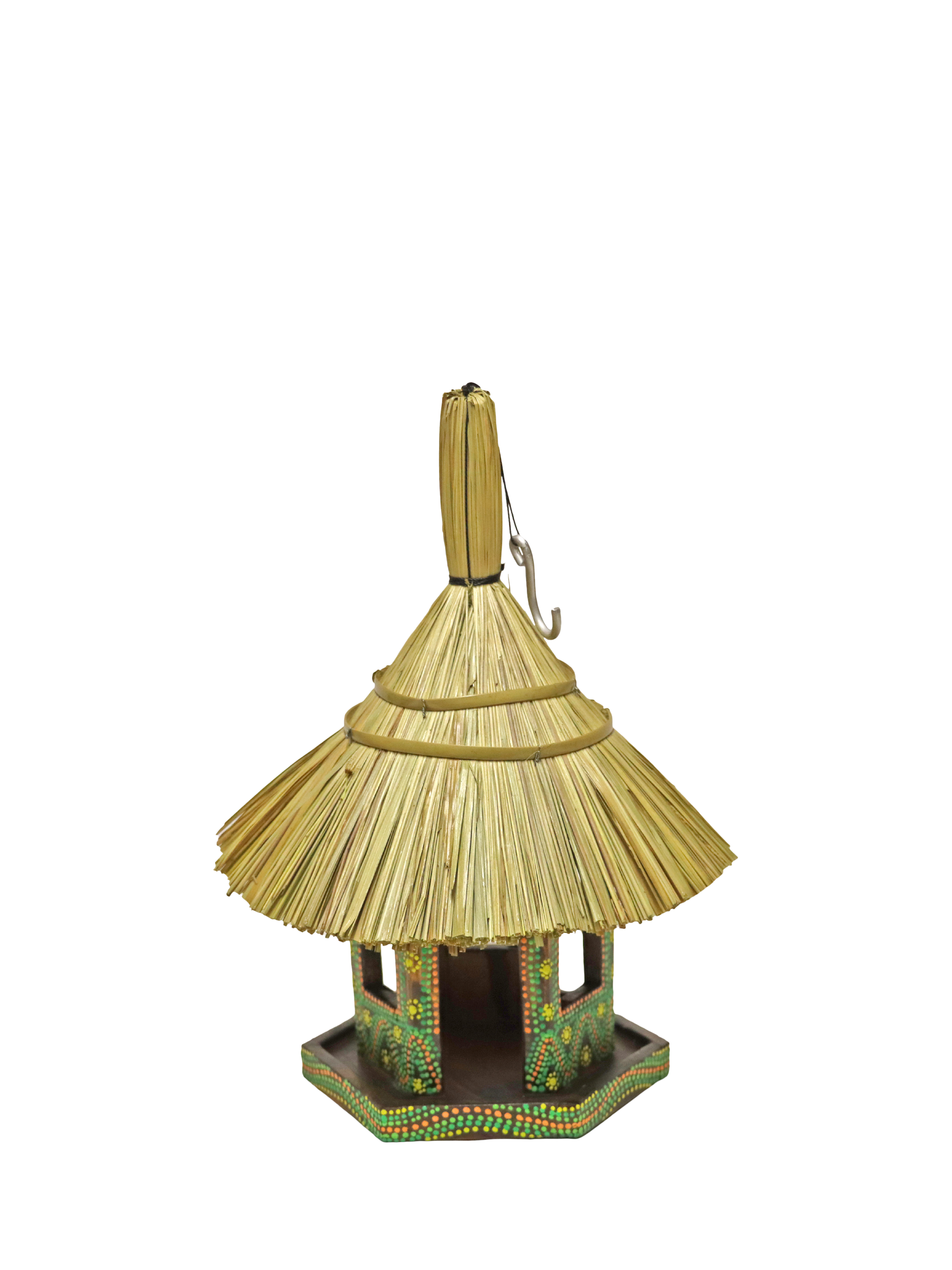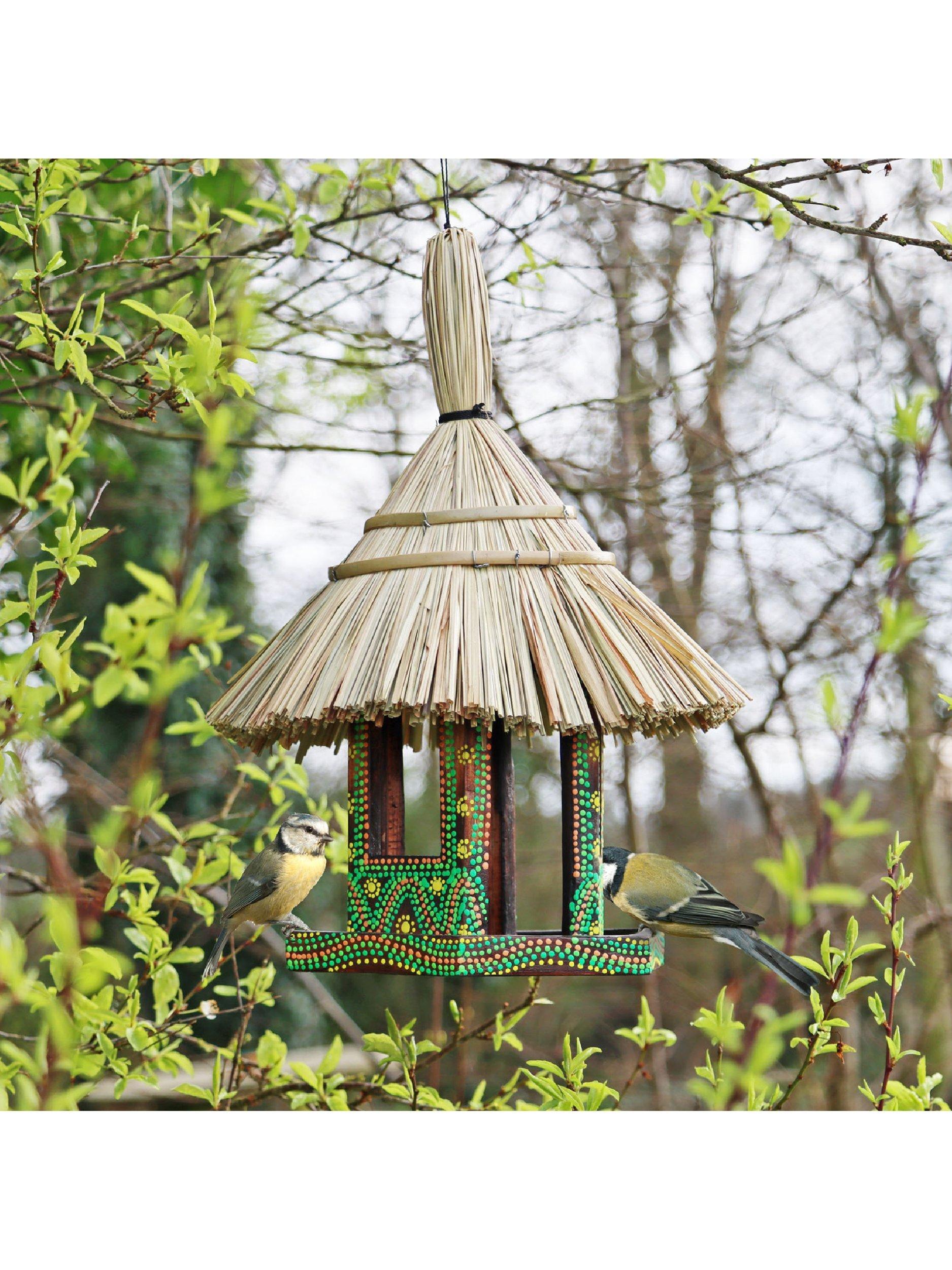 Part of the Bali Island Range, the Artisan Hexagonal Thatched Bird Table is a unique and handcrafted product built by Balinese artisans using sustainably sourced timber. Hand-painted in vibrant green using a traditional dot painting technique, this hexagonal bird table features a conical thatched roof in an authentic Indonesian style. Great for small birds to feed safely on seeds, peanuts, suet and other safe food scraps. The smaller entrances prevent larger species like crows, pigeons and magpies from accessing the food.