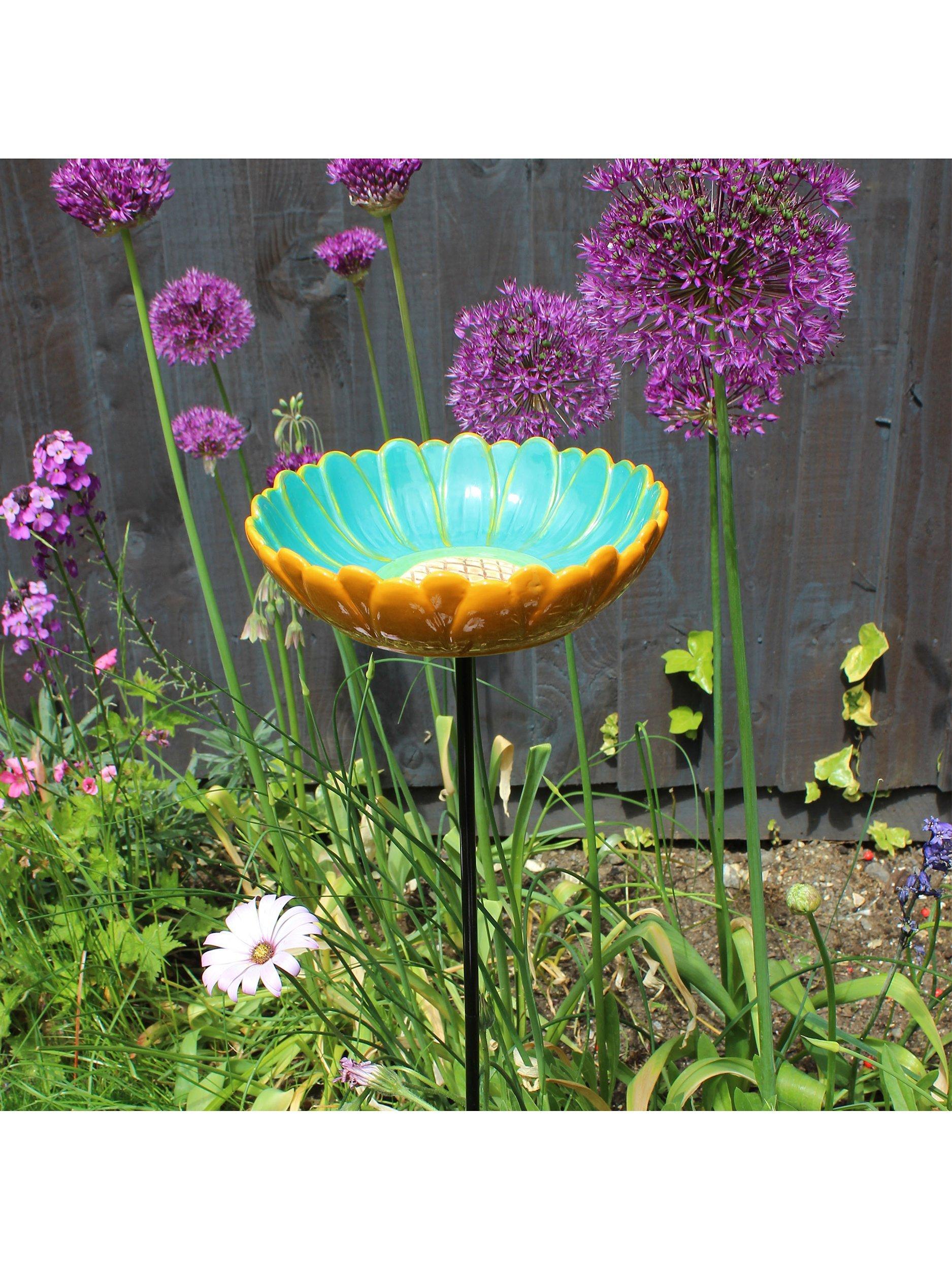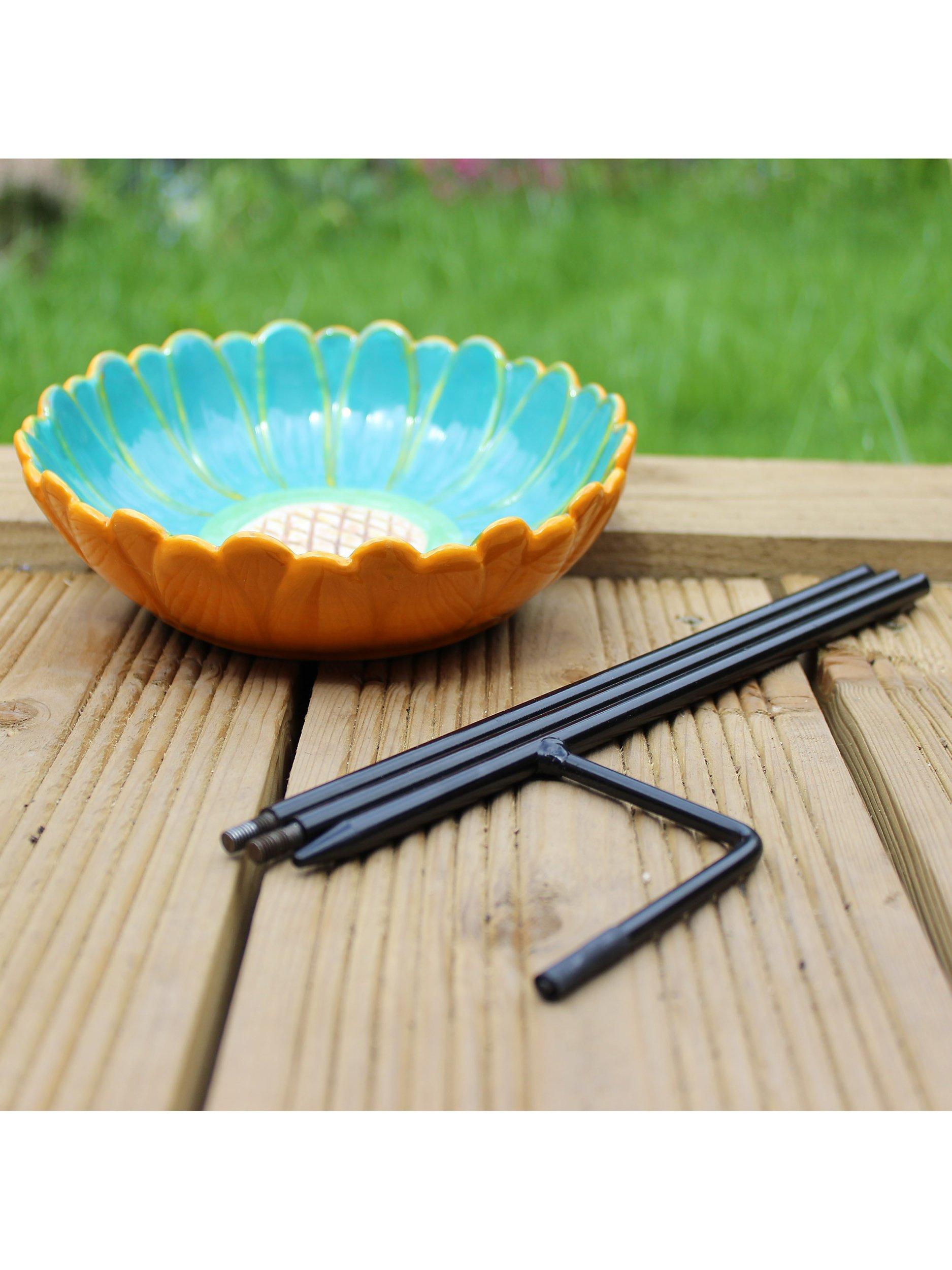 The colourful ceramic African Daisy Bird Drinker from Wildlife World is an attractive glazed ceramic flower design. A delightful addition to any garden. Easy to assemble with the threaded steel stem in four sections and the ceramic bowl on top.