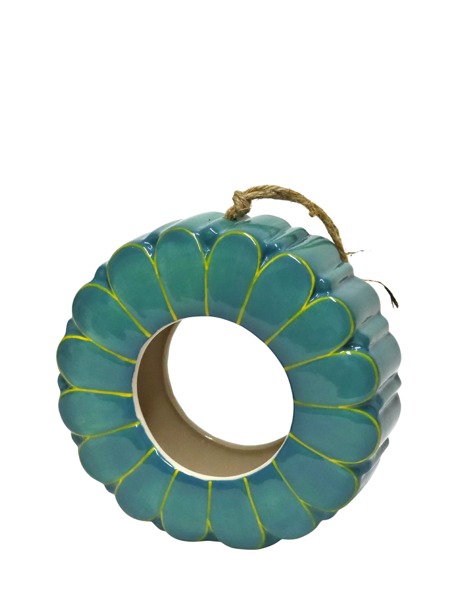 A splash of colour for your garden, this hanging bird feeder is inspired by the African Daisy. The attractive glazed ceramic flower is crafted from high-fired ceramic in a richly coloured tone.