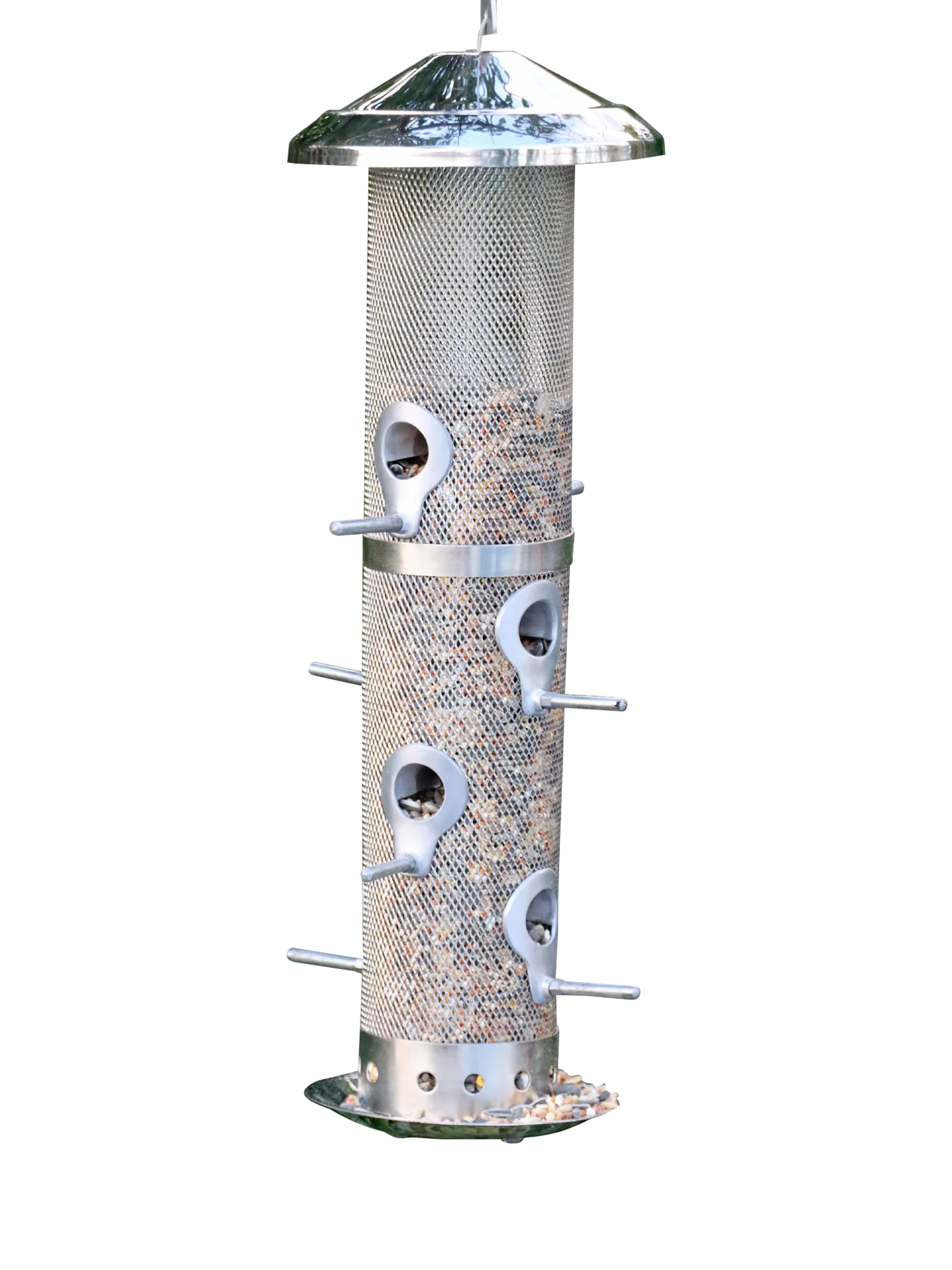 Say goodbye to rusting and hello to longevity with this upgraded model. Crafted entirely from high-quality stainless steel, this feeder ensures superior protection against corrosion and squirrel damage, making it the ultimate choice for all-weather use. Unlike its predecessors, which relied on coated metal, this feeder boasts a plastic-free stainless-steel design, enhancing sustainability and eliminating the risk of plastic degradation.