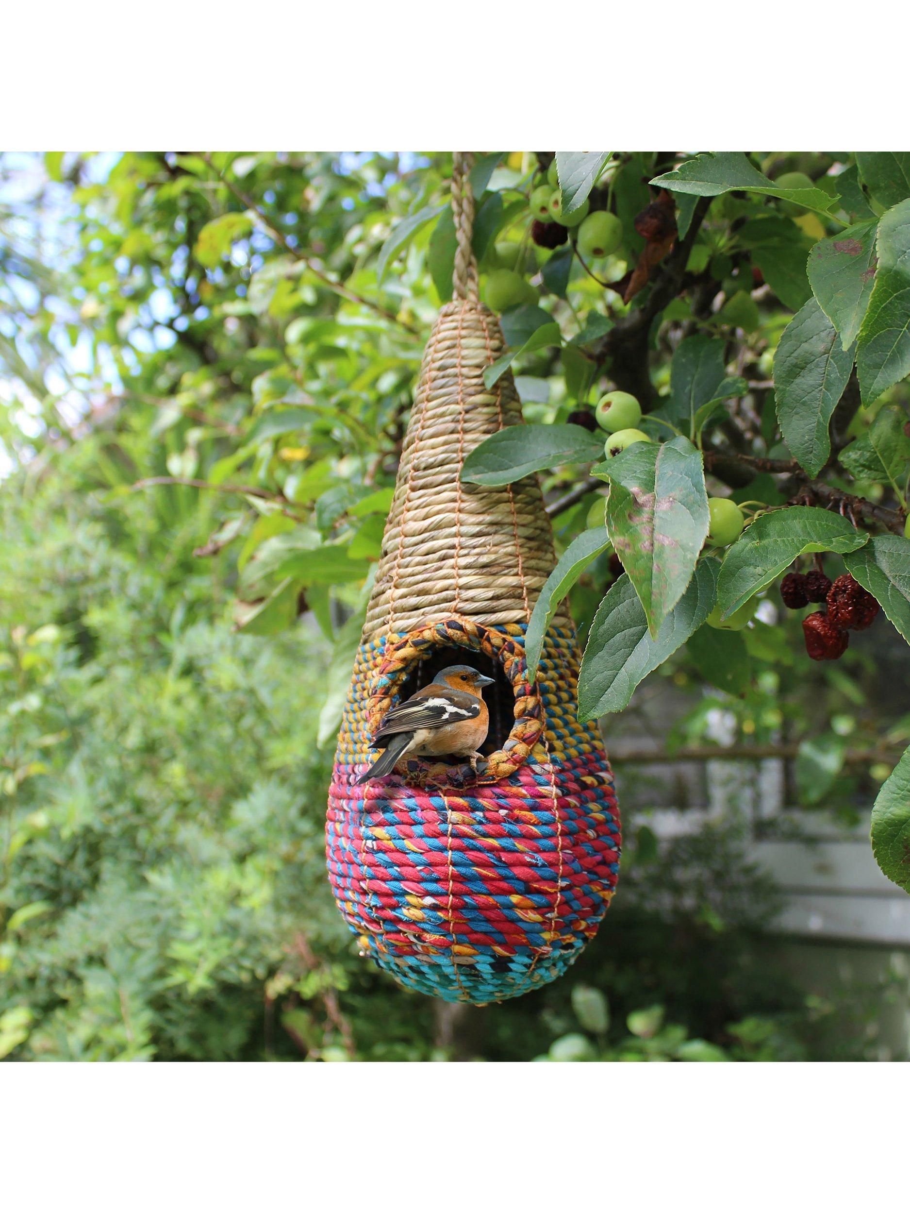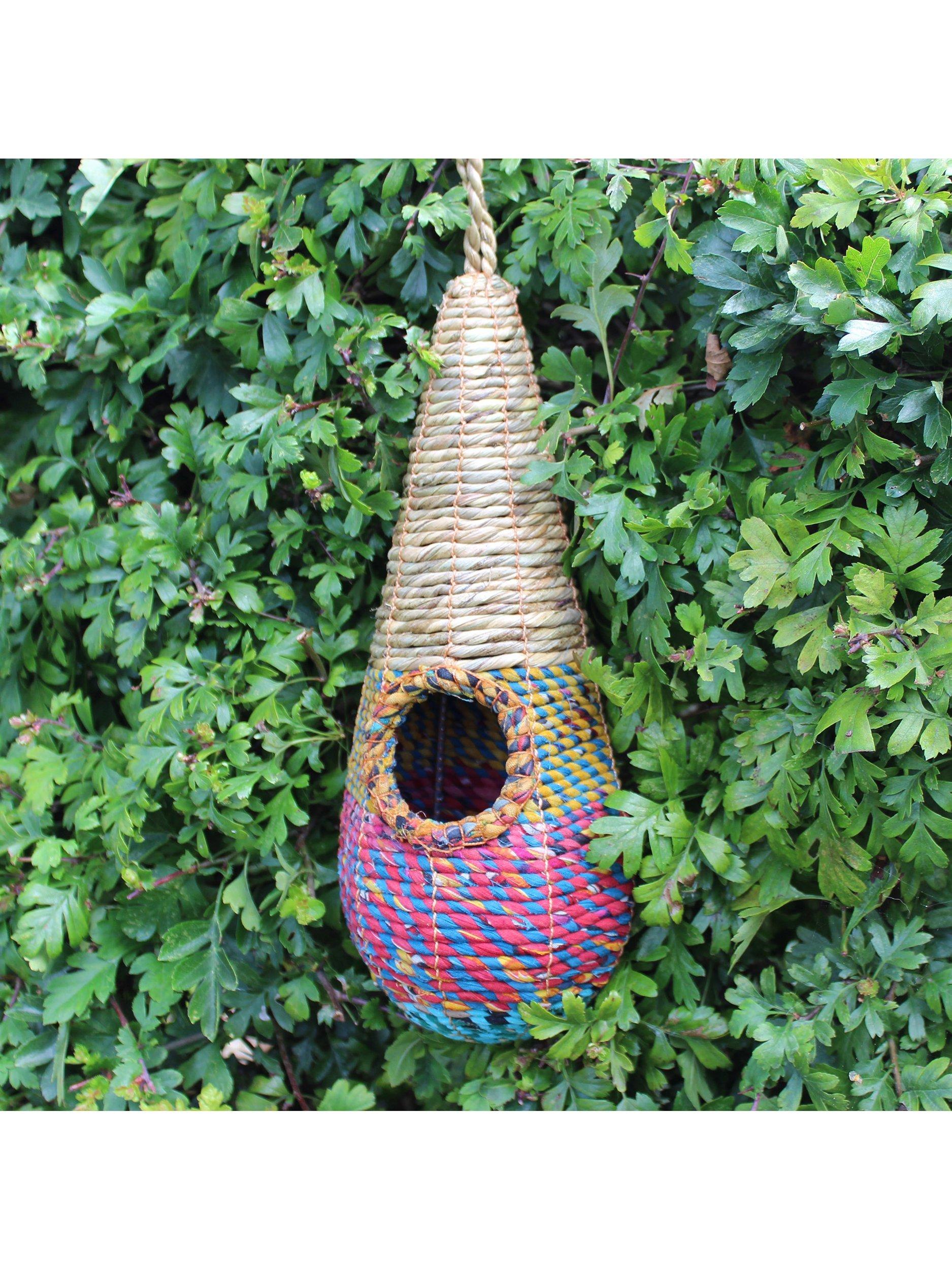 The Tahera Nester is an elegant elongated 'teardrop' model. The teardrop shape offers a smaller cavity perfect for species of small garden birds that roost alone. Offering a cosy place to roost during harsh winter months, plus in springtime, small birds may use this Fair Trade product as a nest.