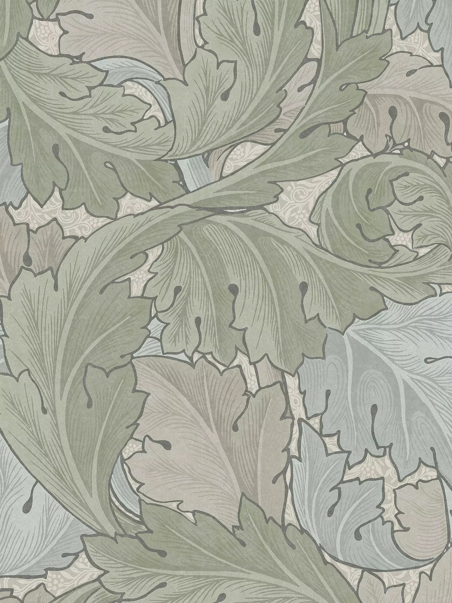 Acanthus leaves decorate many of Morris's designs and are made a central feature in his Acanthus pattern for wallpaper. Morris found this classical motif ideal for repeating patterns and believed the large pattern he created here was perfect for smaller rooms, creating a more restful atmosphere than a smaller, dense pattern.