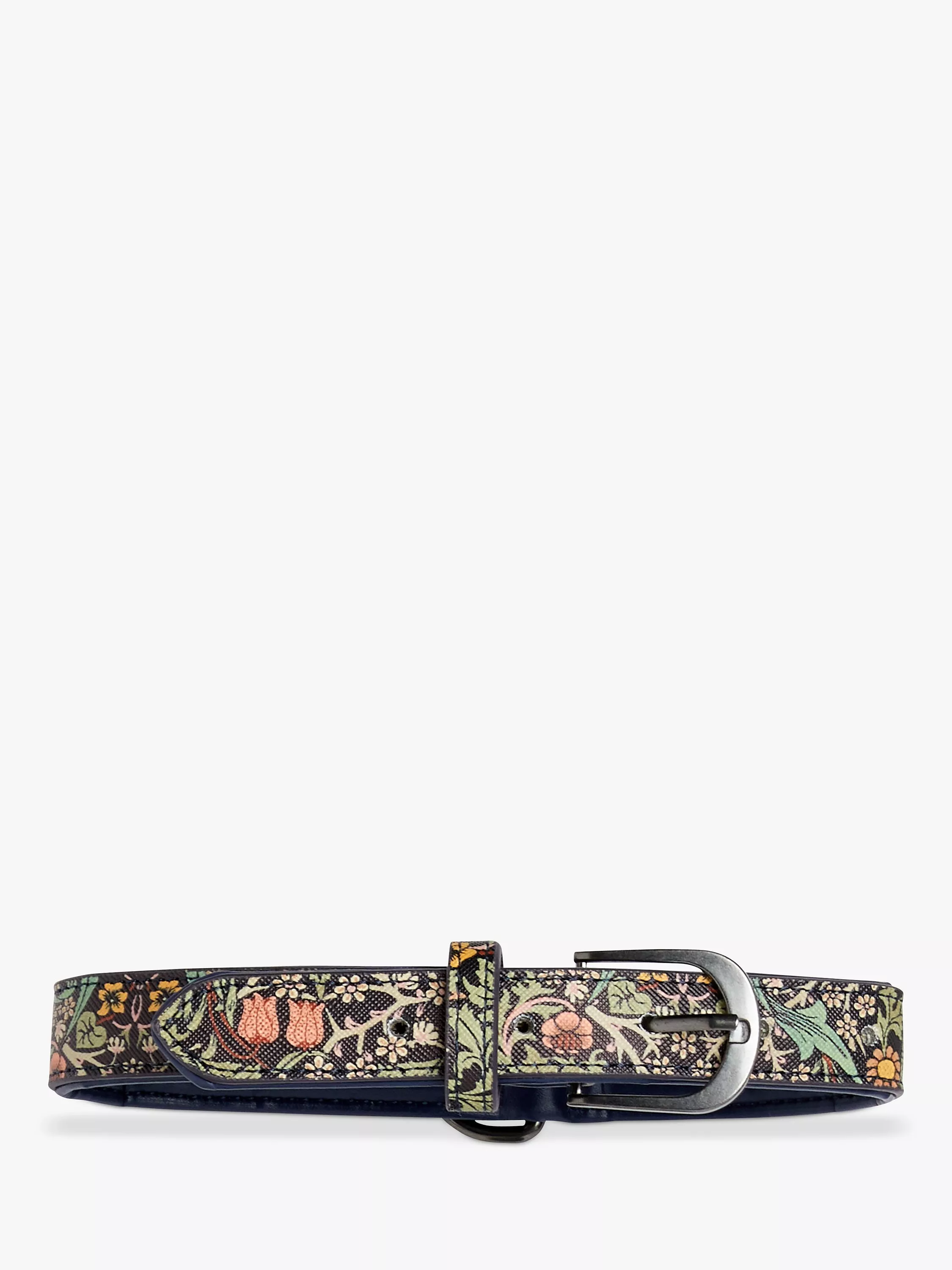 A fabulous gift for a beloved pooch. The smart William Morris print dog collar is crafted from durable, vegan leather featuring the beautiful heritage Blackthorn print in practical deep blue. The collar is adjustable and styled with a ‘D ring’ towards the centre of the strap providing easy access for attaching nametag and lead.