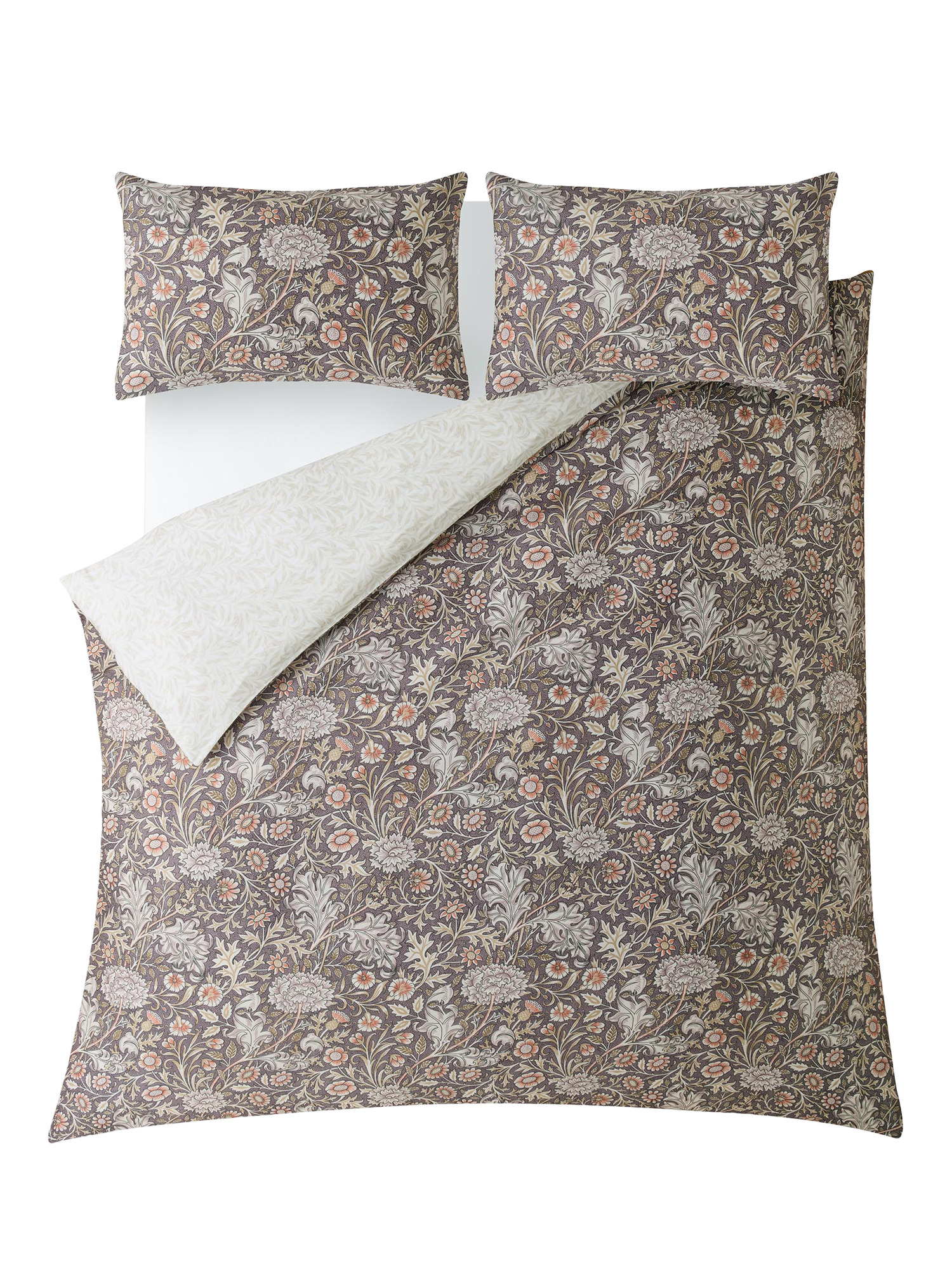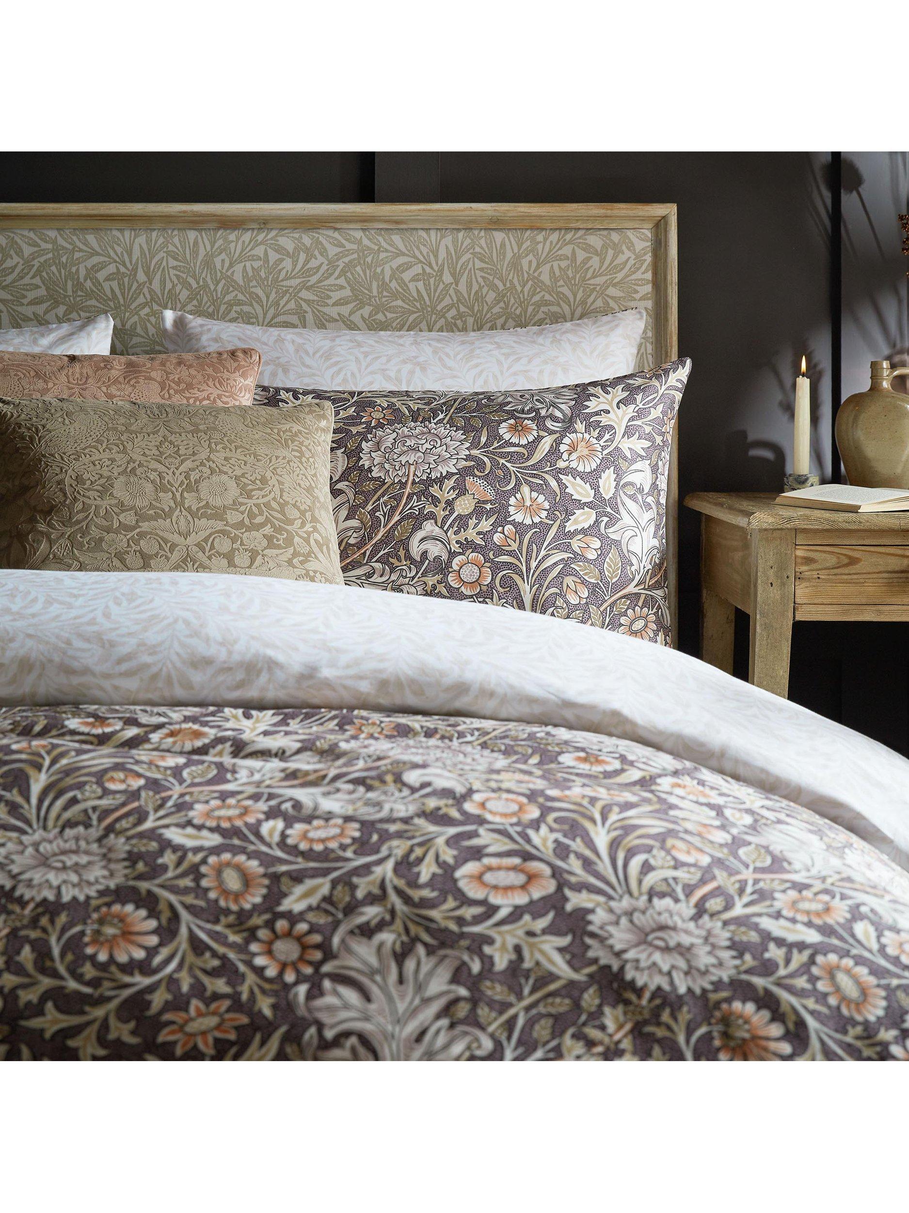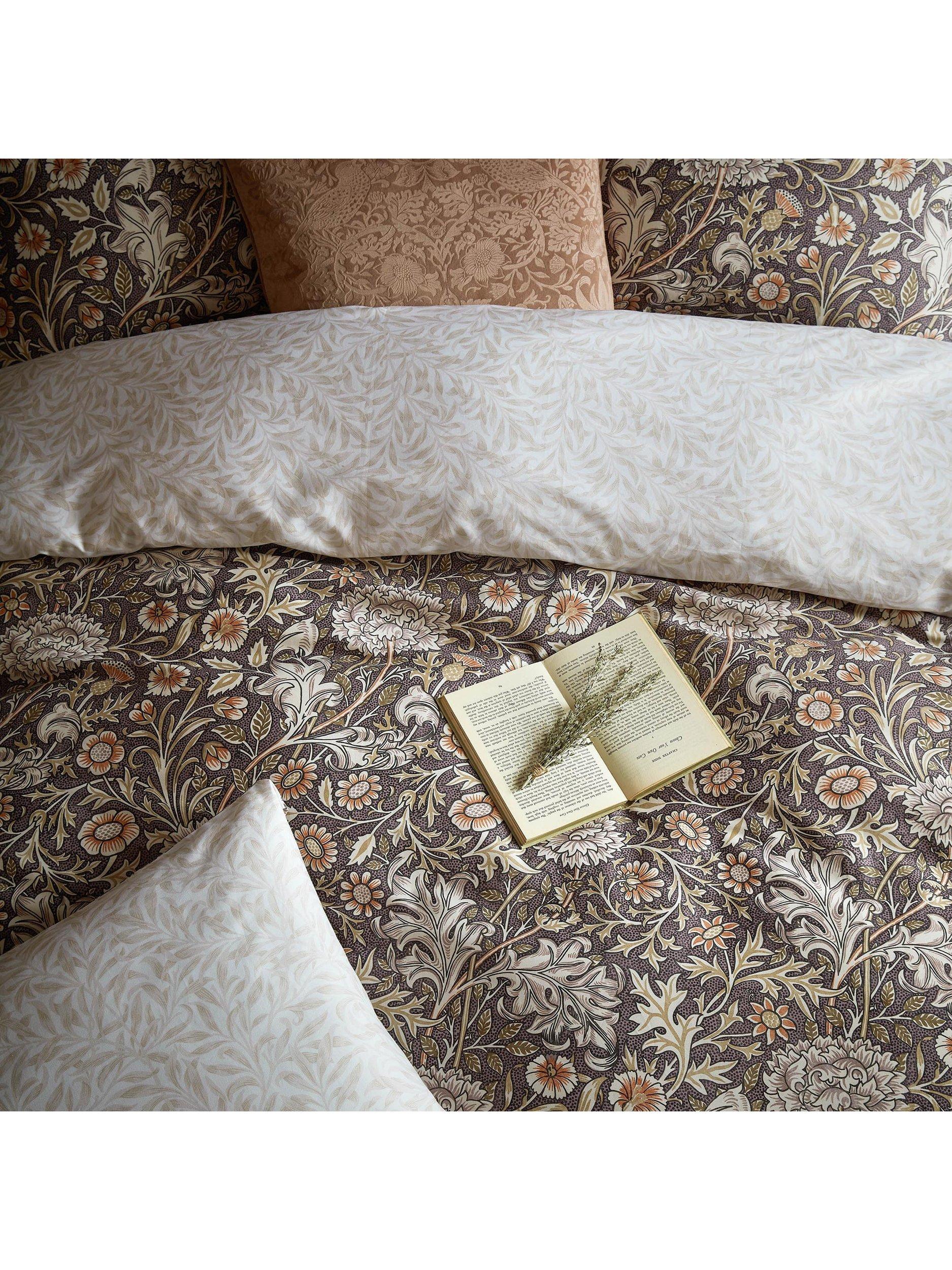 A combination of flowers including, pinks, thistles and chrysanthemums trail across this elegant 220 thread count, cotton sateen bedlinen. Originally designed as a chintz textile in 1877, Double Bough is coloured in a calming palette. Paired with the William Morris signature Willow Bough design on the reverse, this sophisticated bedlinen is perfect for adding a classic touch to your bedroom.