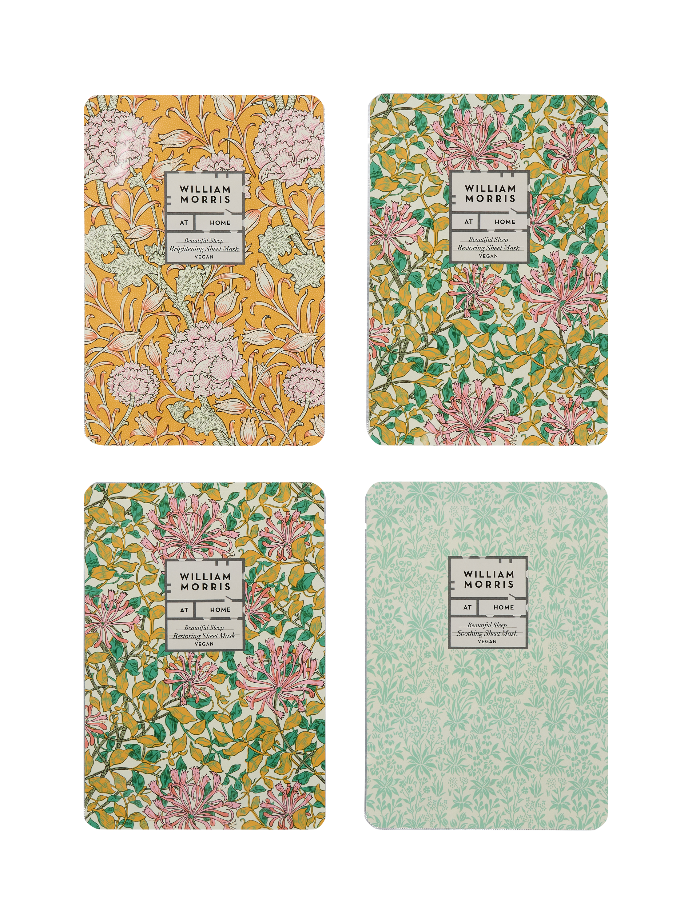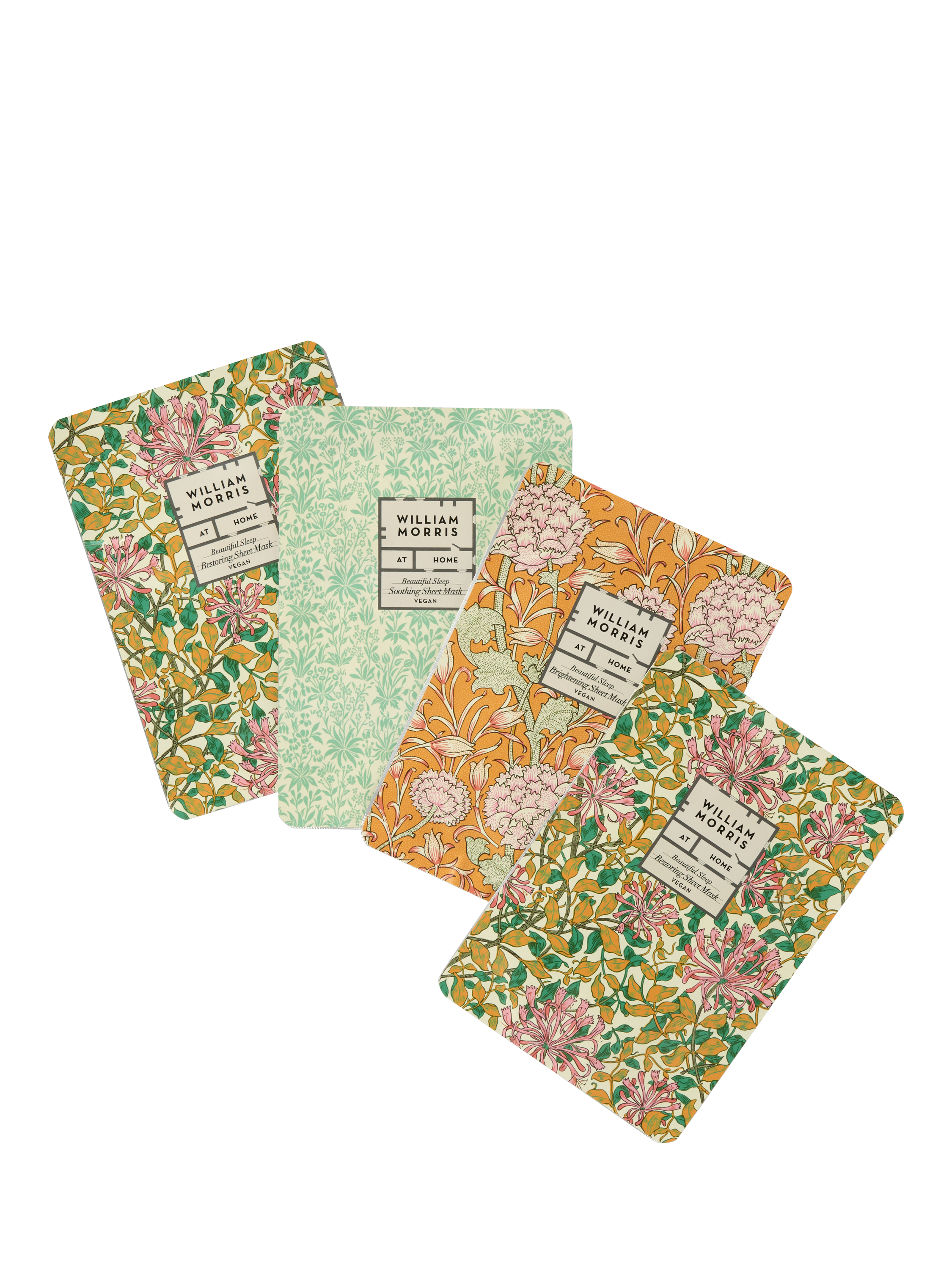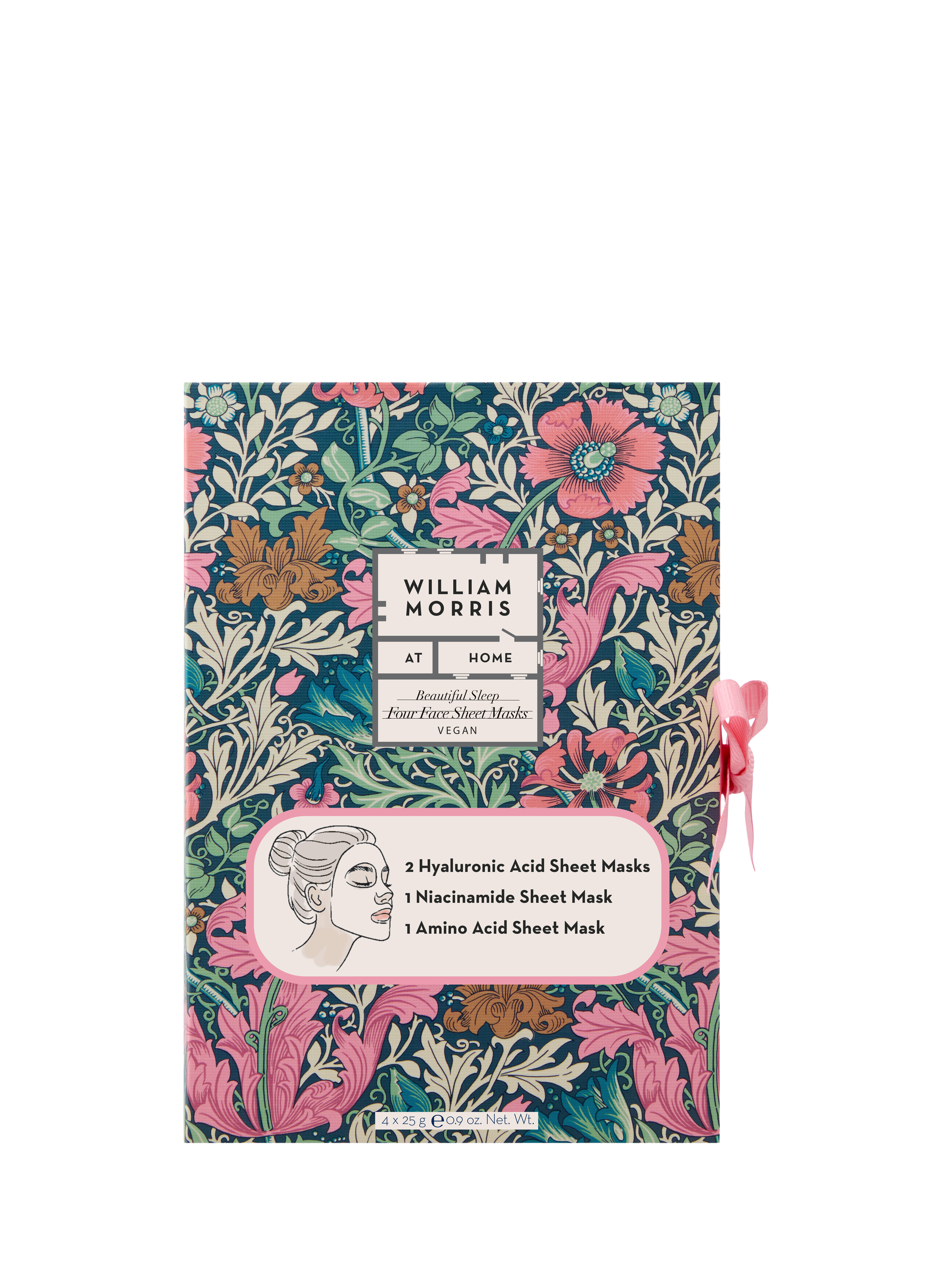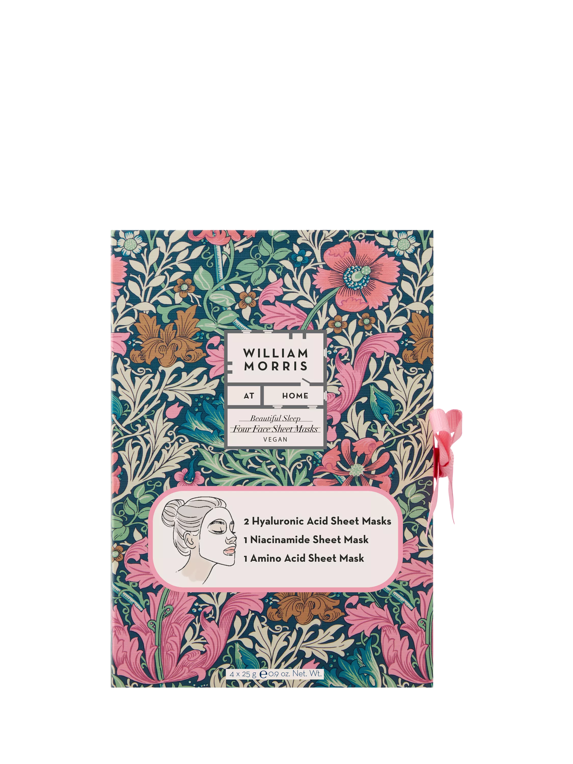 Bring a moment of calm, quiet beauty to your evening routine wrapped in beautiful William Morris designs. A set of four fragrance-free, cotton sheet masks infused with skin-loving ingredients and actives. Designed to nurture, hydrate and comfort your skin before sleep.