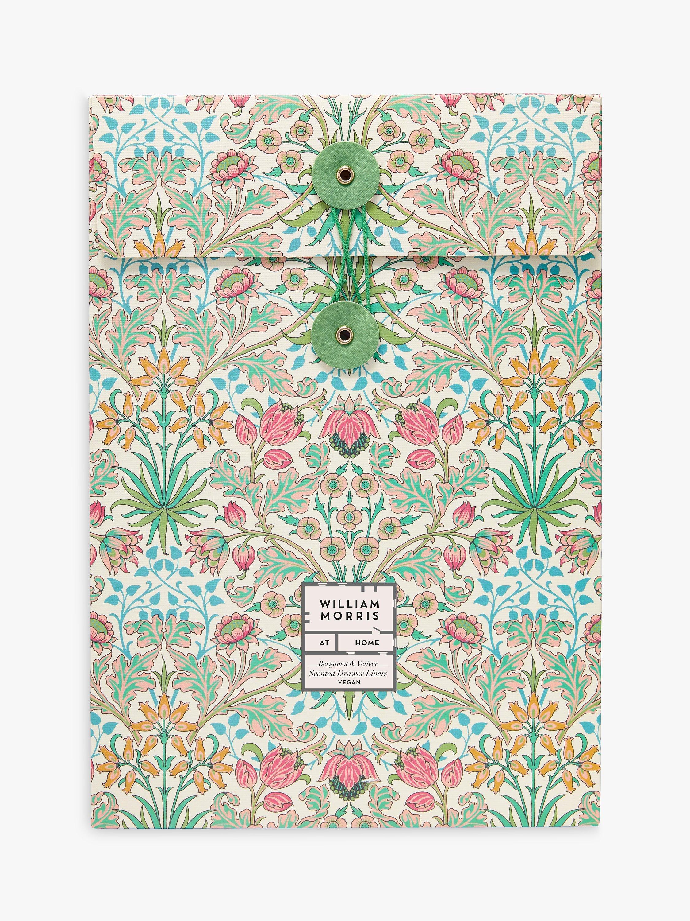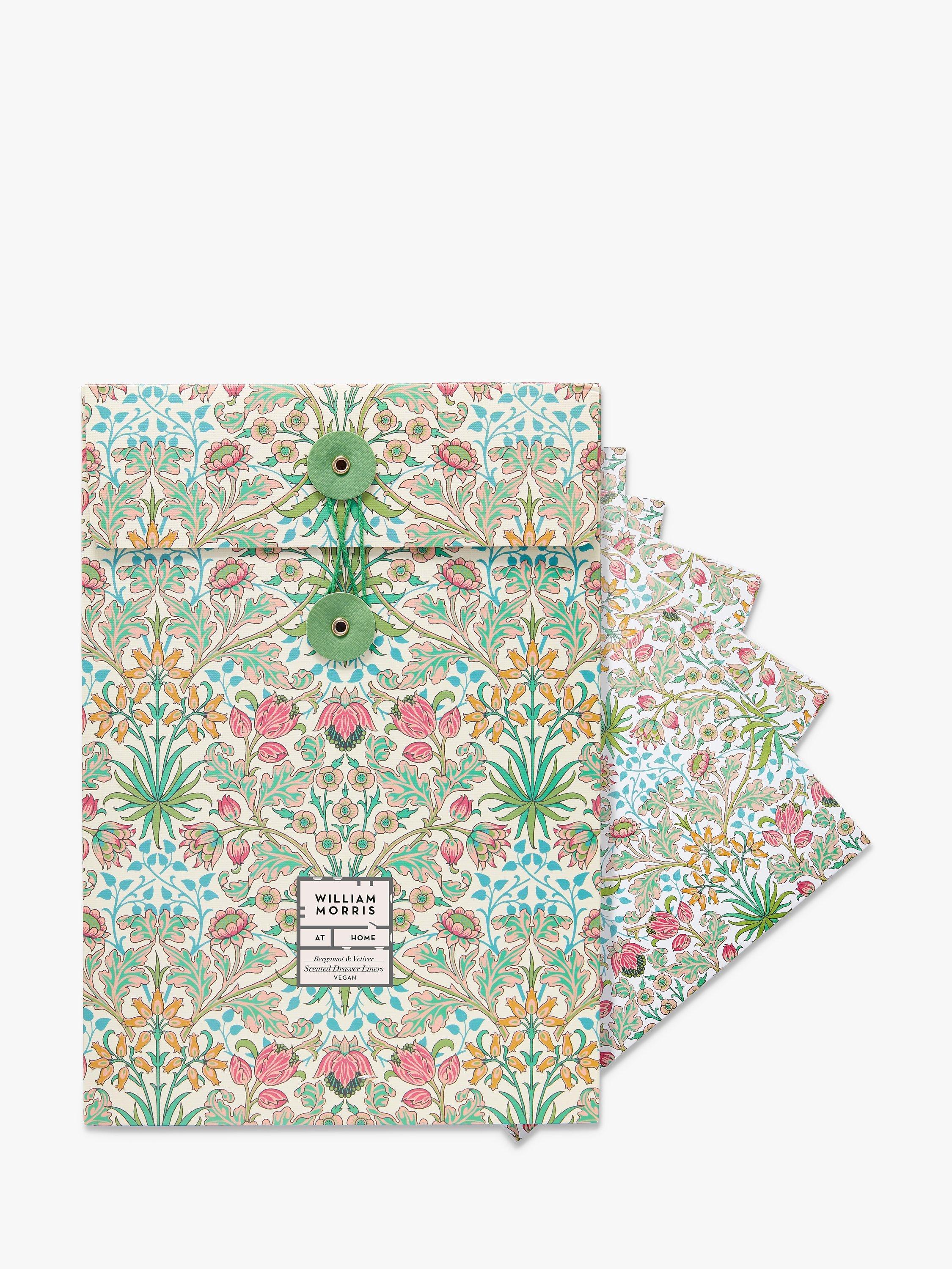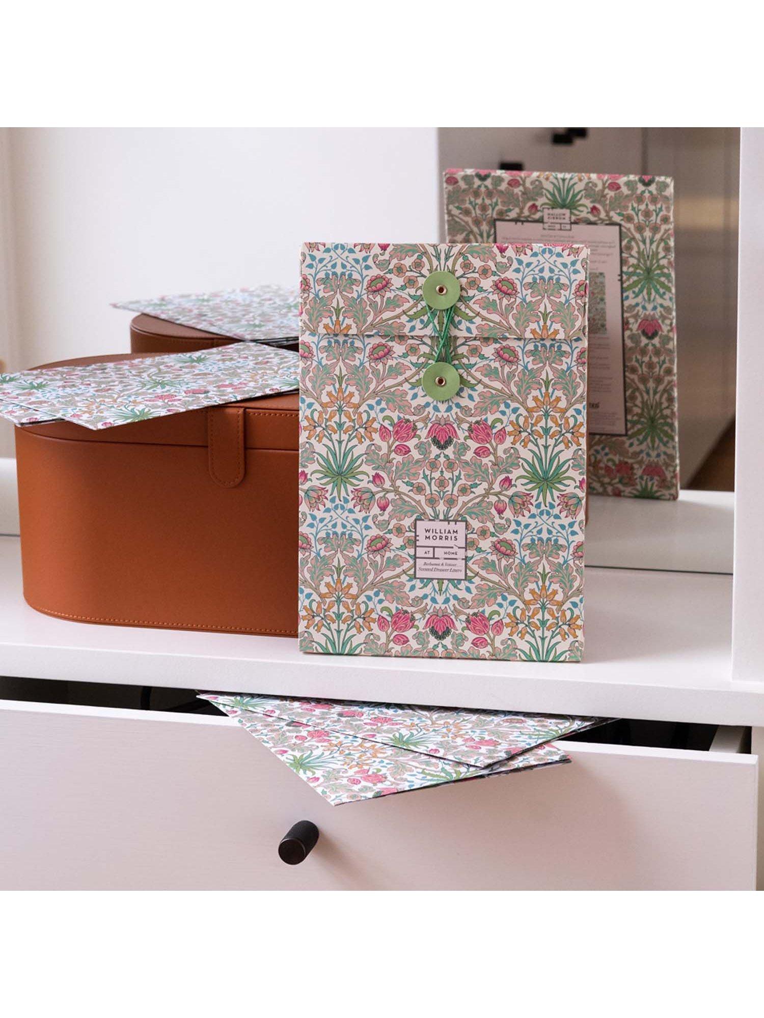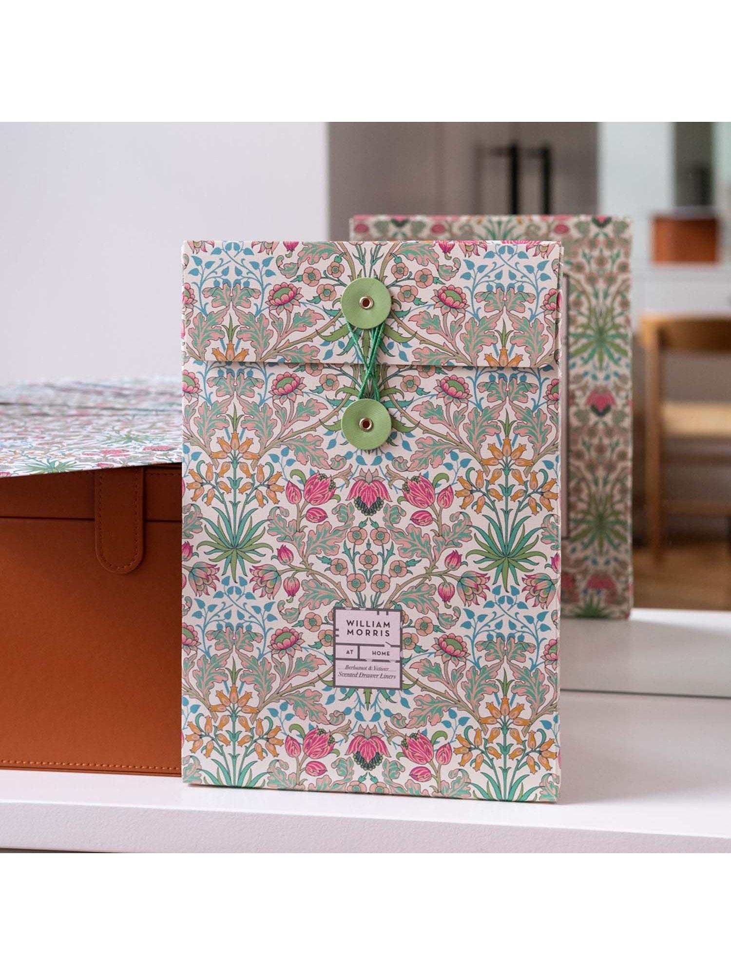 A colourful set of five scented drawer liners printed with the enlivening Hyacinth print from William Morris in a matching folder. A thoughtful gift for the stylish homemaker.