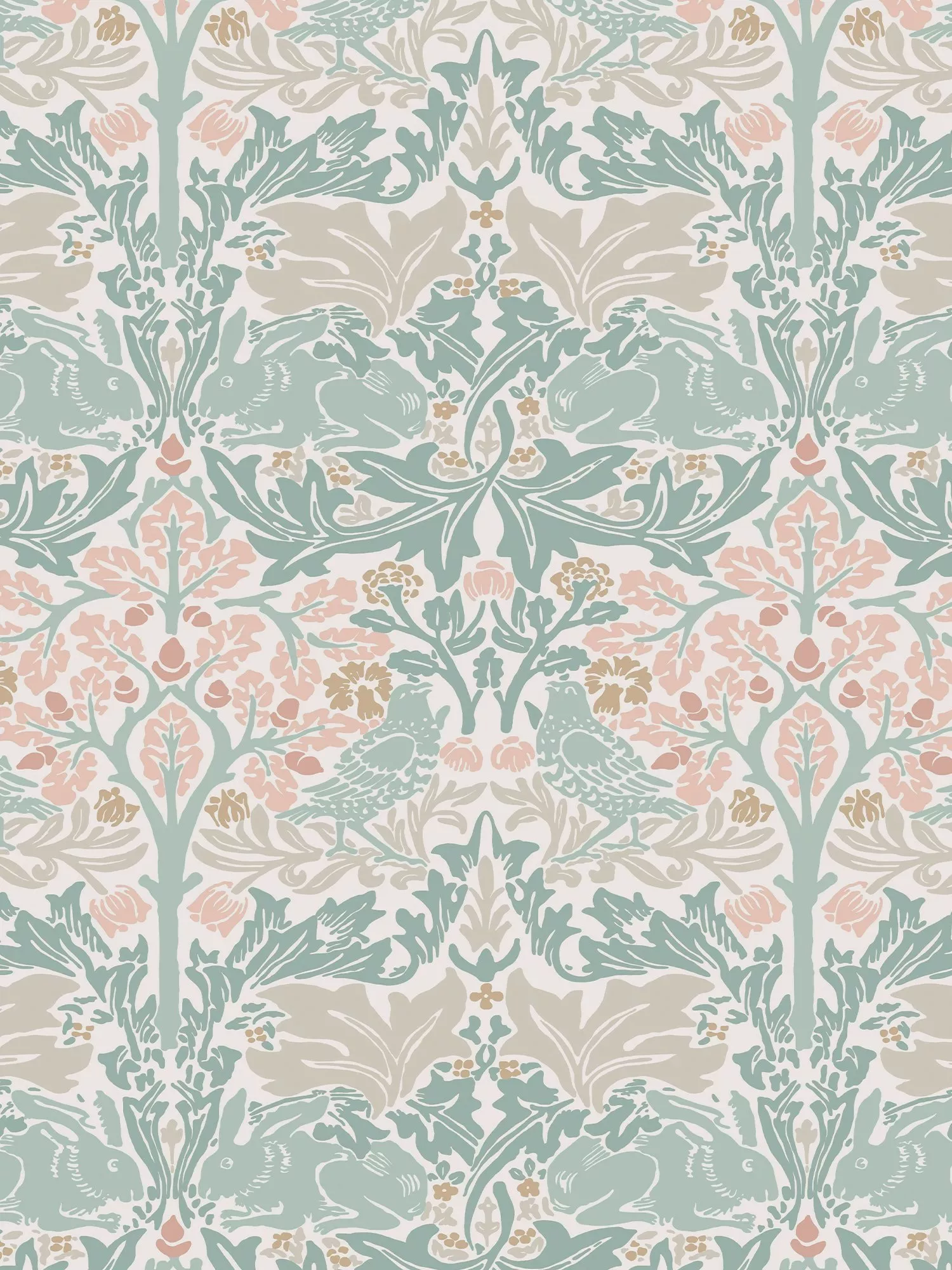Morris’s skilled team of printers would use up to 25 blocks per design in order to create his dense patterns. Brother Rabbit Lullaby wallpaper features beautifully entwined leaves. Hidden within the foliage, you will also be able to find birds rabbits. Perfect for creating a fresh and welcoming feel within any home.