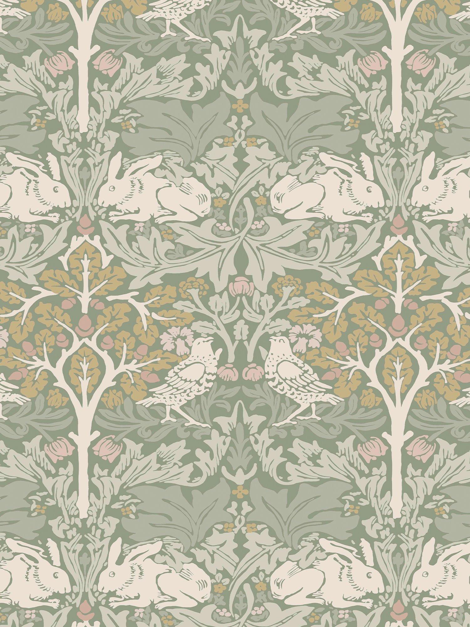 Morris’s skilled team of printers would use up to 25 blocks per design in order to create his dense patterns. Brother Rabbit Lullaby wallpaper features beautifully entwined leaves. Hidden within the foliage, you will also be able to find birds rabbits. Perfect for creating a fresh and welcoming feel within any home.