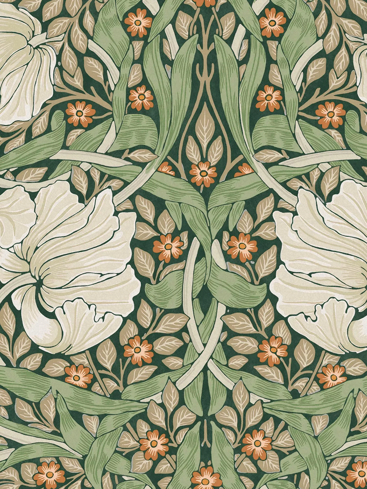 The design layout is almost symmetrical and was hung at Kelmscott Manor, the summer home of William Morris in West Oxfordshire. This matte finish wallpaper would make a statement in any room with its unique and captivating heritage design.
