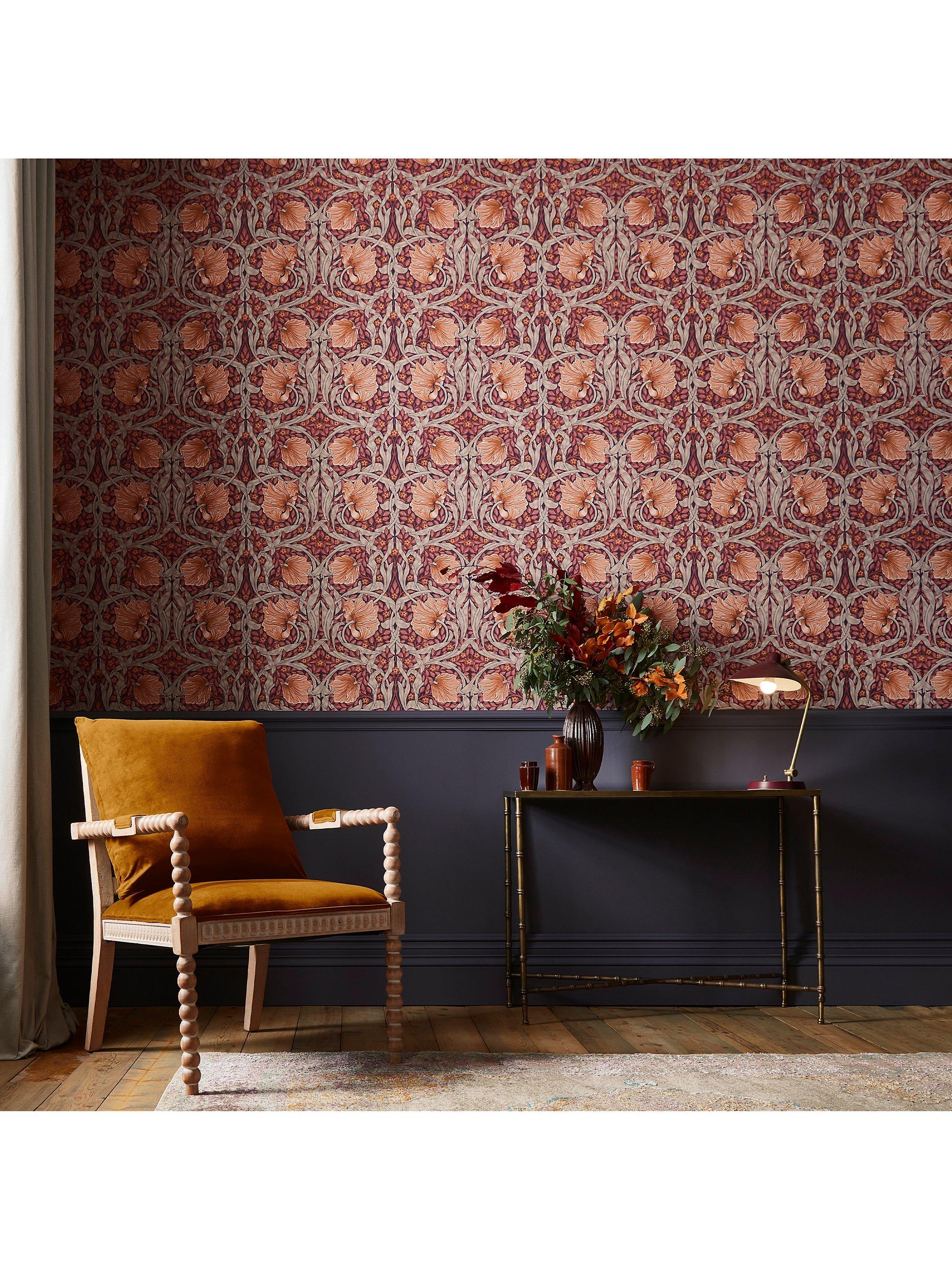 The design layout is almost symmetrical and was hung at Kelmscott Manor, the summer home of William Morris in West Oxfordshire. This matte finish wallpaper would make a statement in any room with its unique and captivating heritage design.