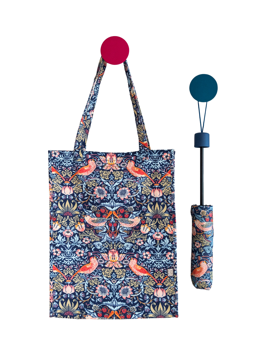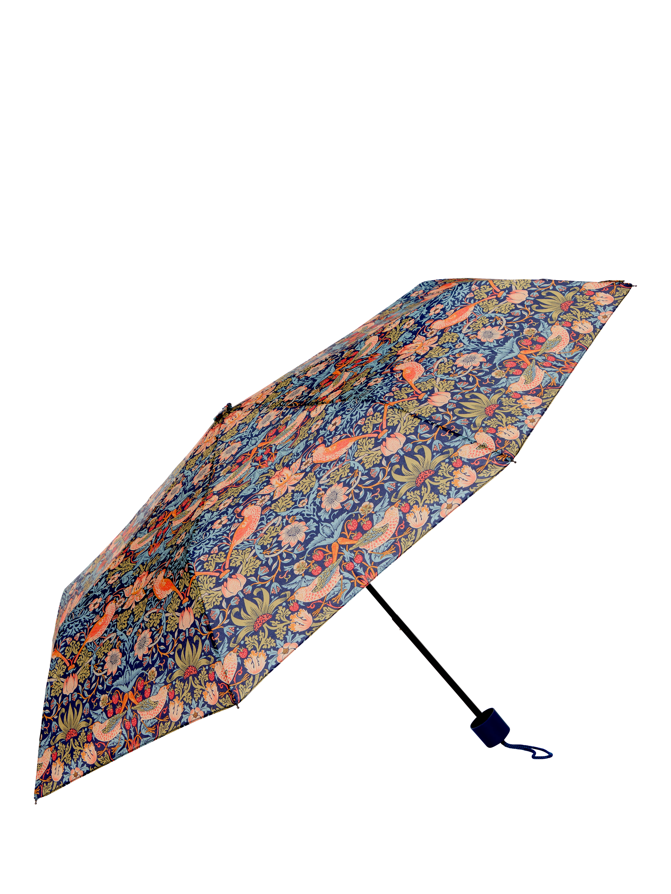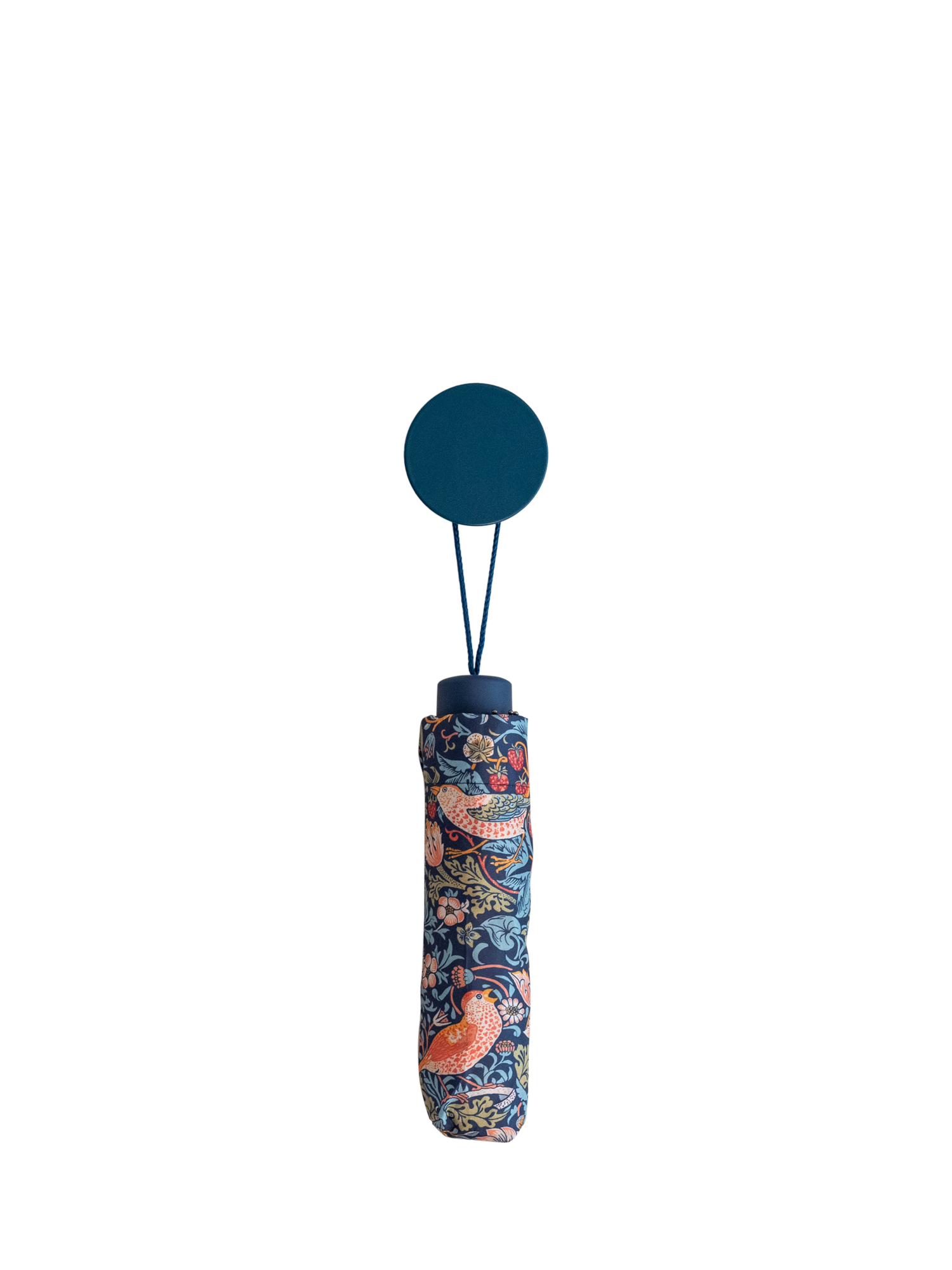 Compact, foldable umbrella, adorned with the iconic Strawberry Thief print depicting the thrushes that Morris found stealing fruit from his kitchen garden, bringing English Heritage to daily life. Comes with matching slide-on case for easy storage.