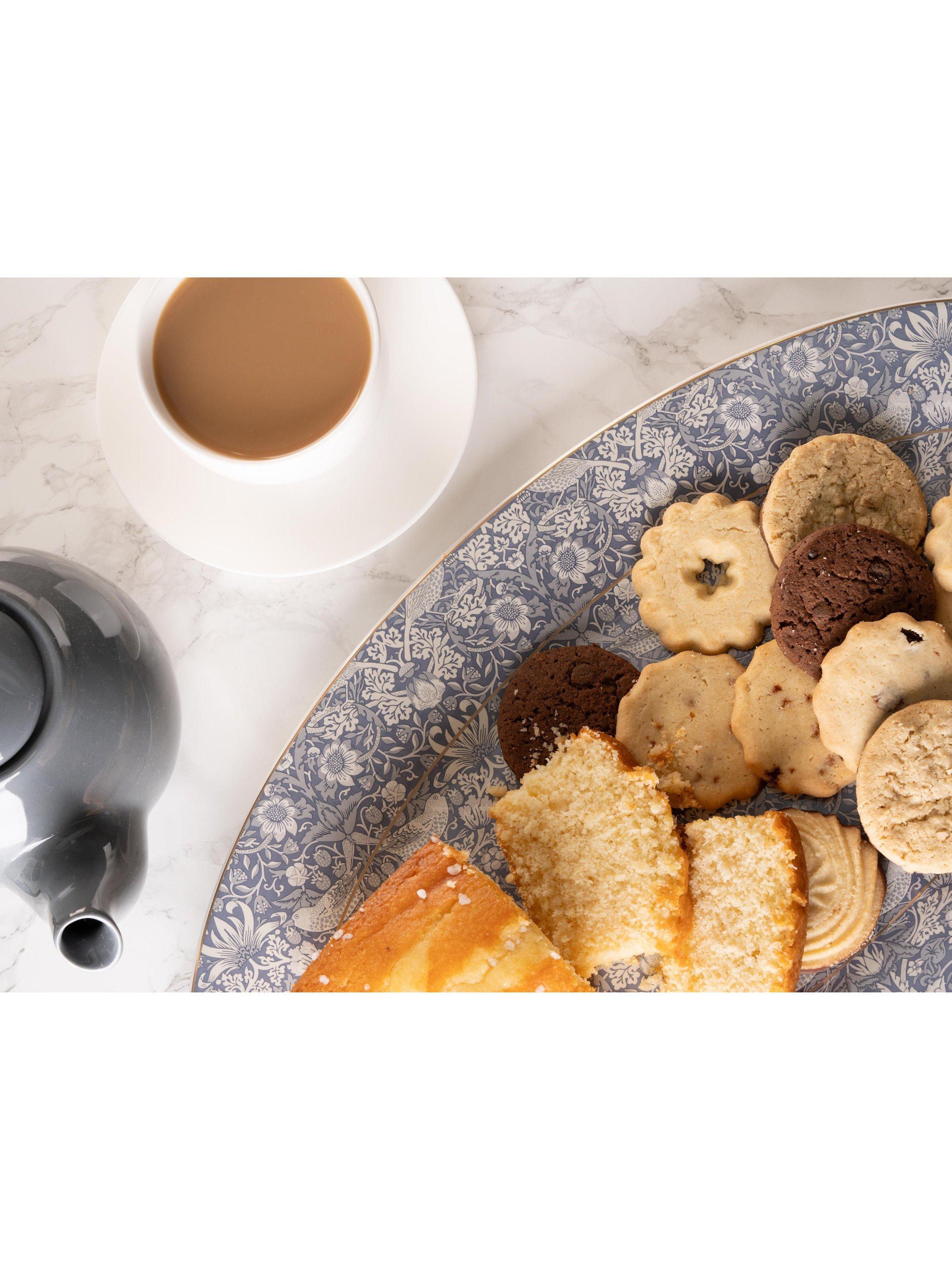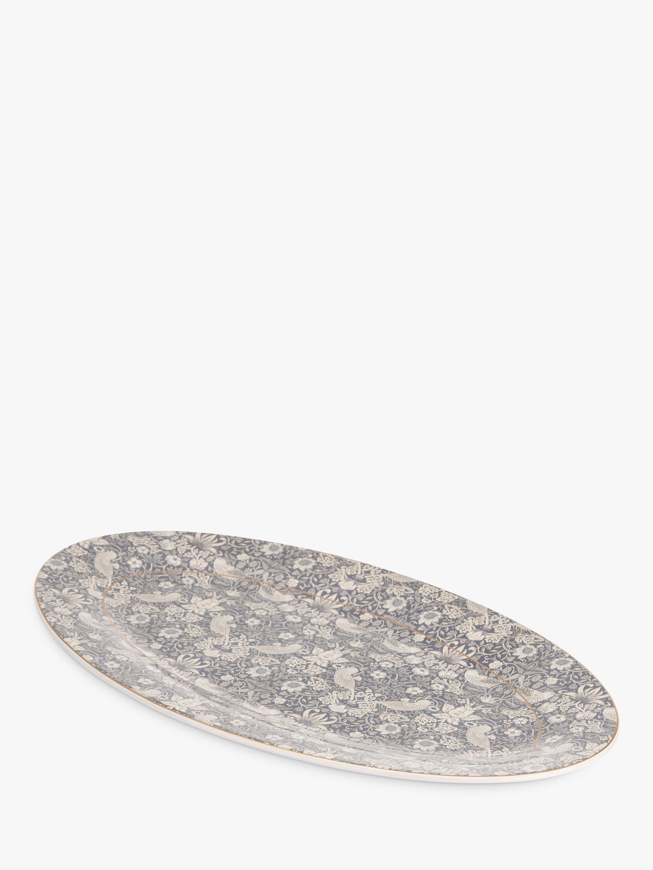 Oval serving platter in the Strawberry Thief print from Arts and Crafts designer and artist William Morris. Made from durable stoneware, this elegant platter is great for everyday use or for special occasions. Dishwasher-safe for easy cleaning.