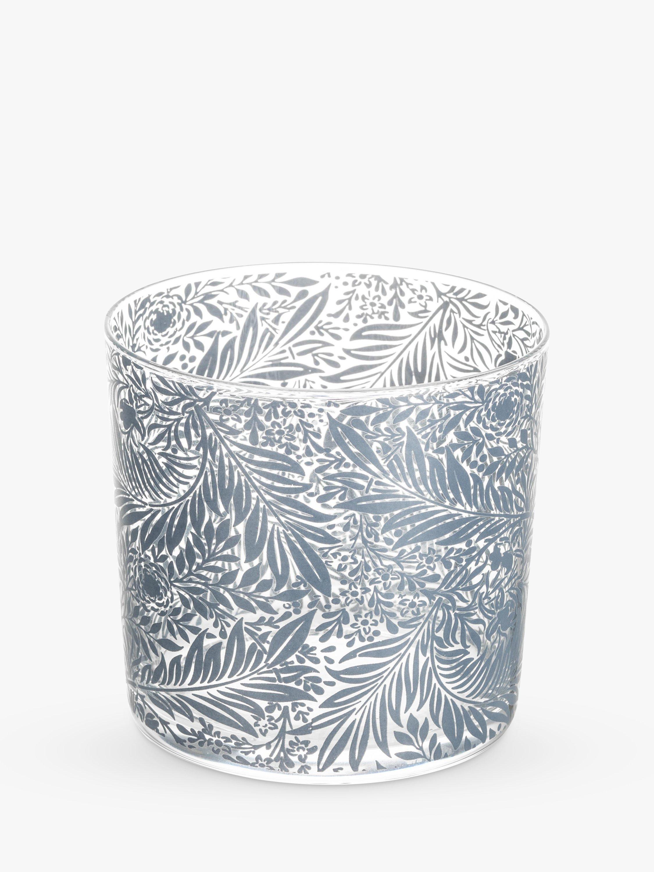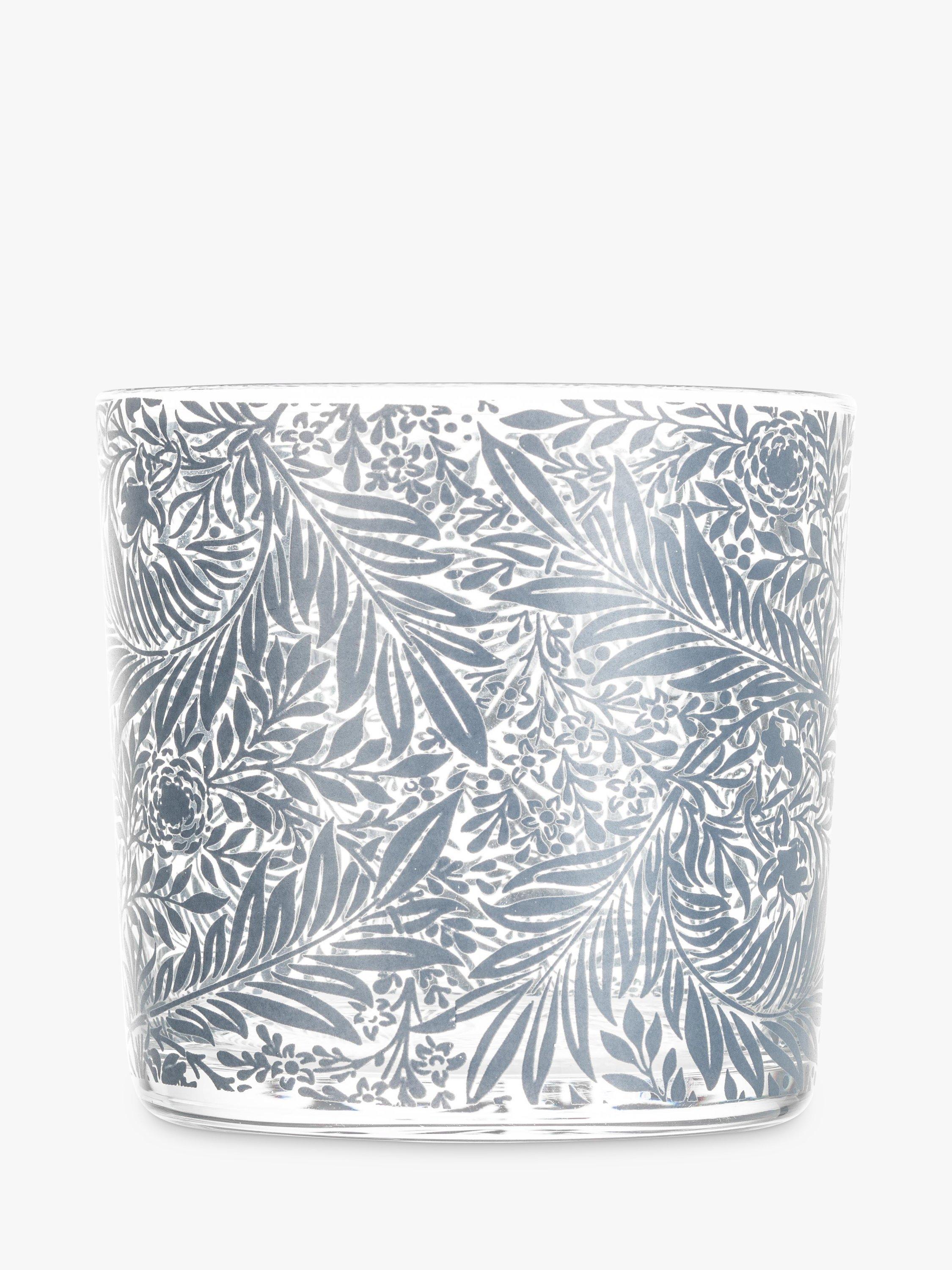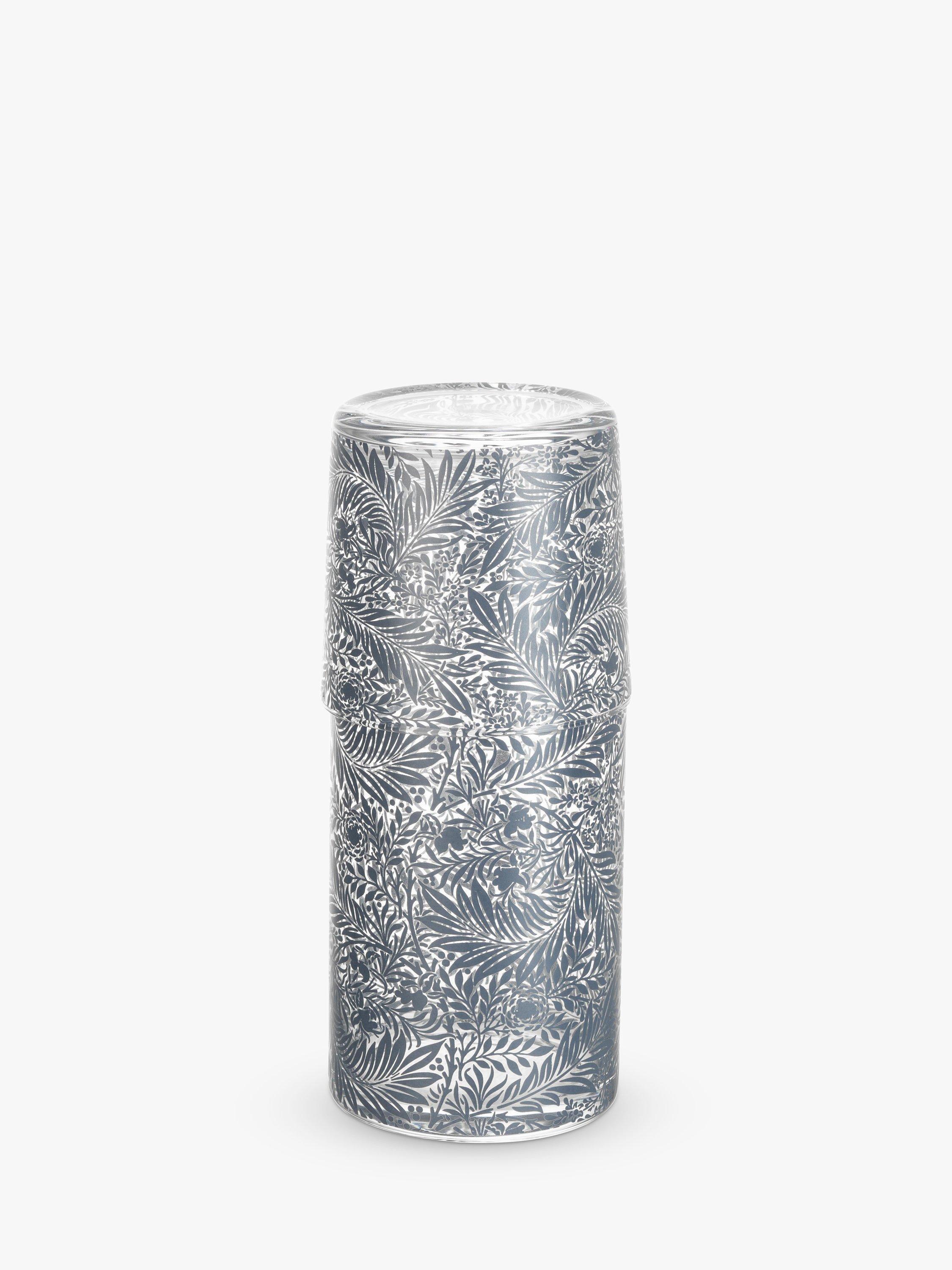 This stackable carafe and tumbler, made from hand-blown glass, will look elegant in any house. The pattern on the glassware is inspired by the work of William Morris, a key figure in the Arts & Crafts movement.