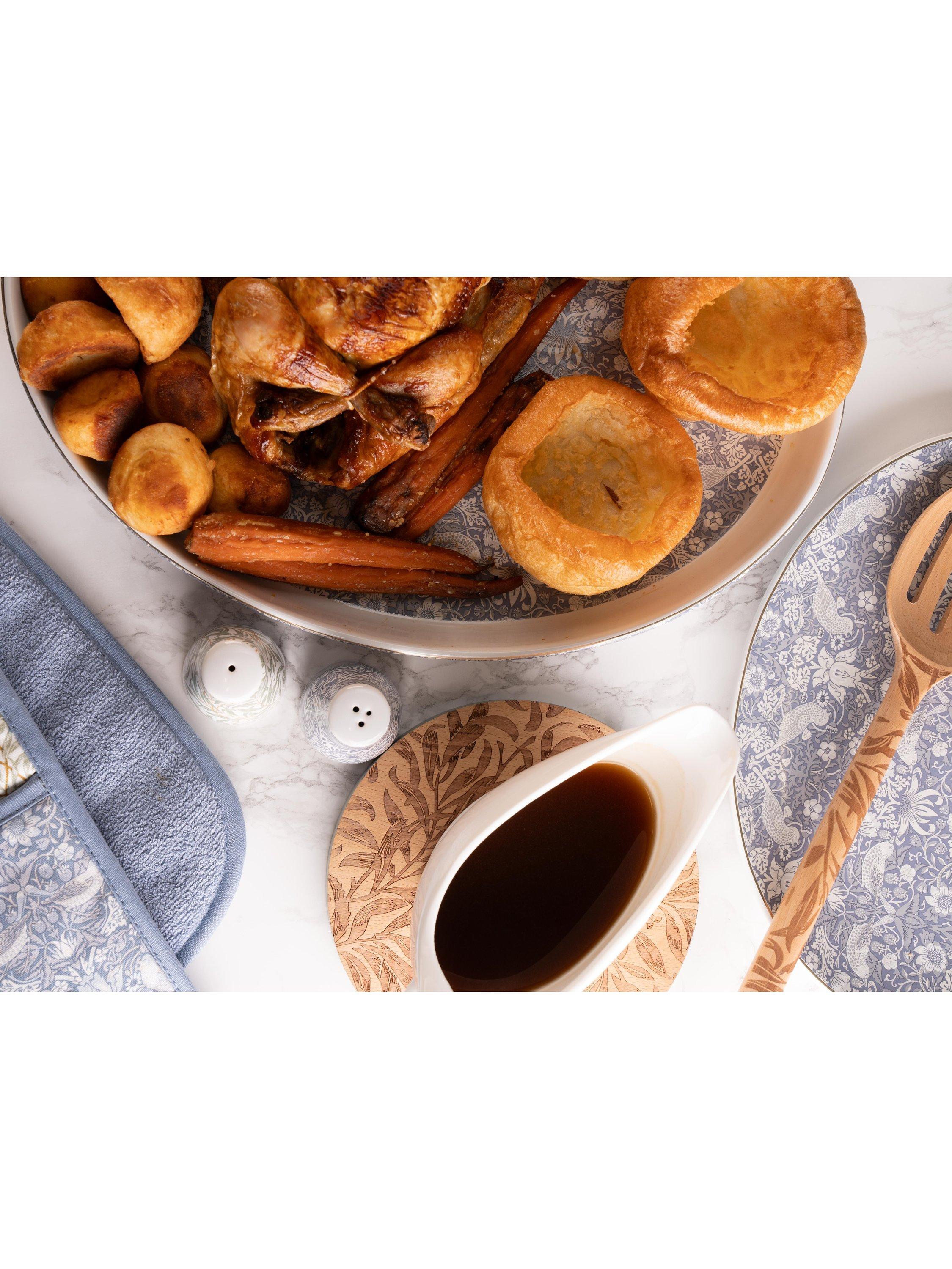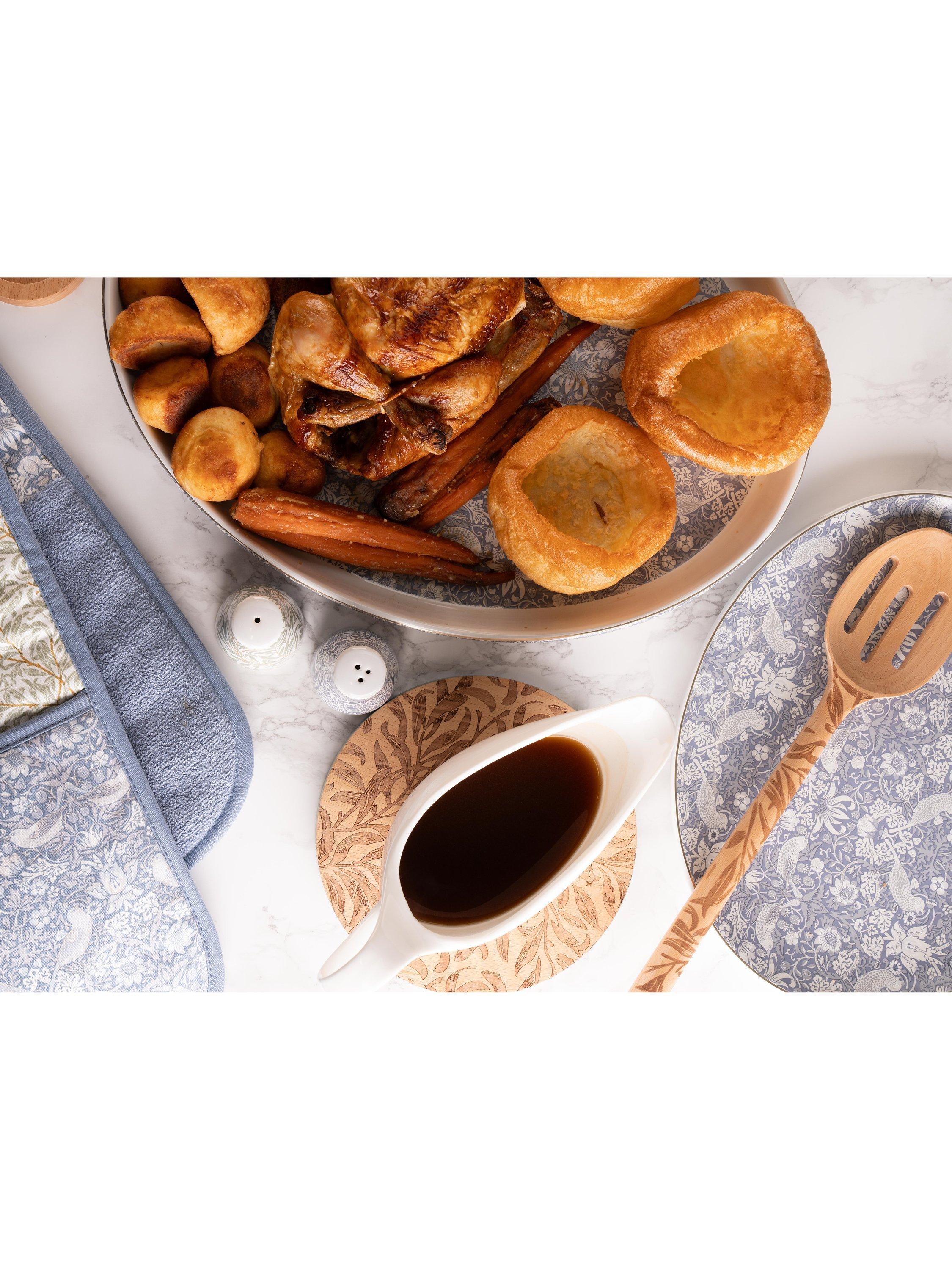 Oval roaster featuring the famous Strawberry Thief print created by William Morris. Made from durable stoneware, this roaster is oven-safe up to 230°C and dishwasher-safe for easy cleaning.