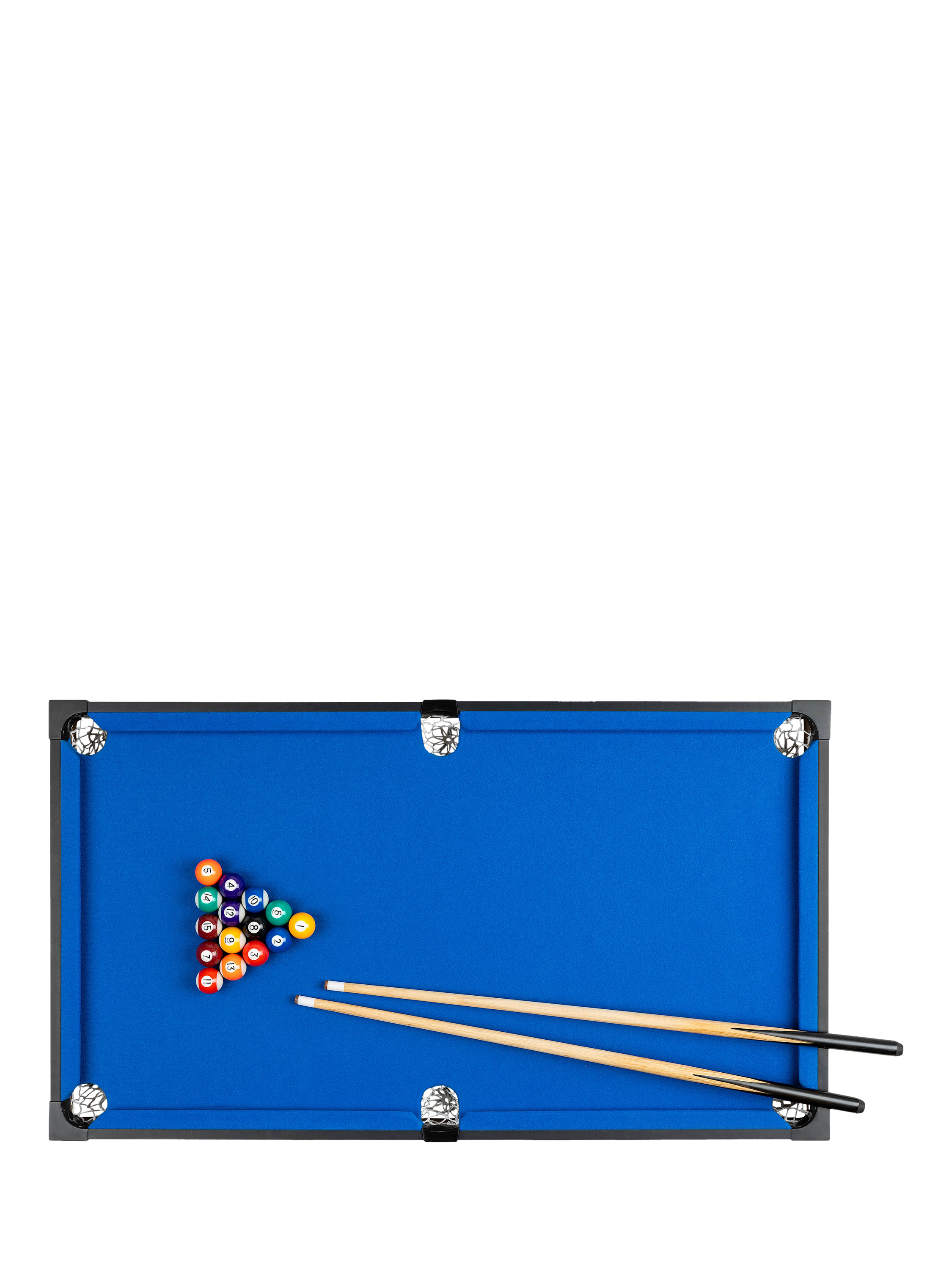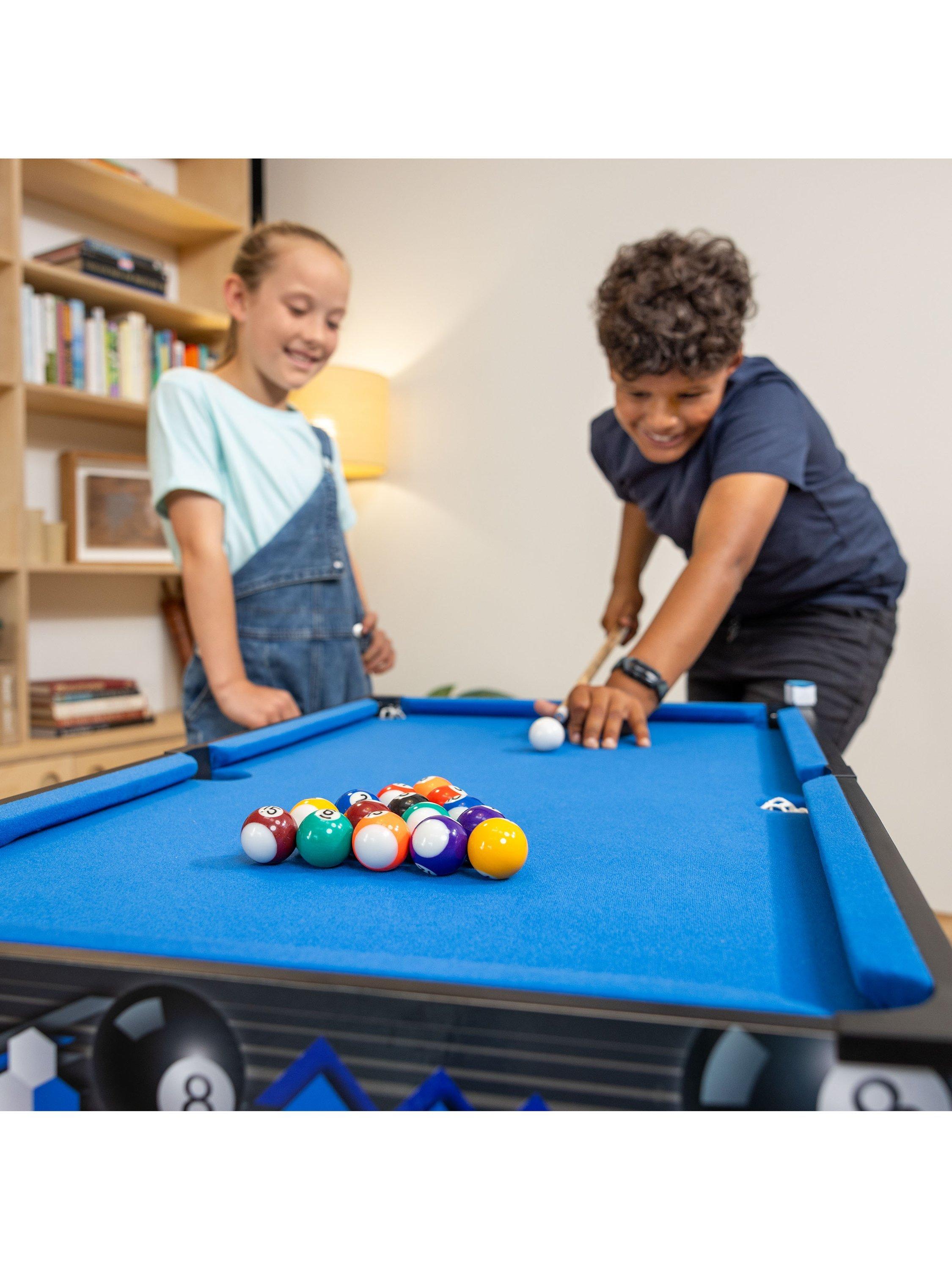 Featuring two cues, 16 balls, a triangle rack, table brush and chalk, the 3ft Pool Games Table is easy to set up, so you can start playing right away. Suitable for ages 5 and over, this pool table is a fantastic addition to family games nights, teaching kids about precision, hand-eye coordination and sportsmanship.