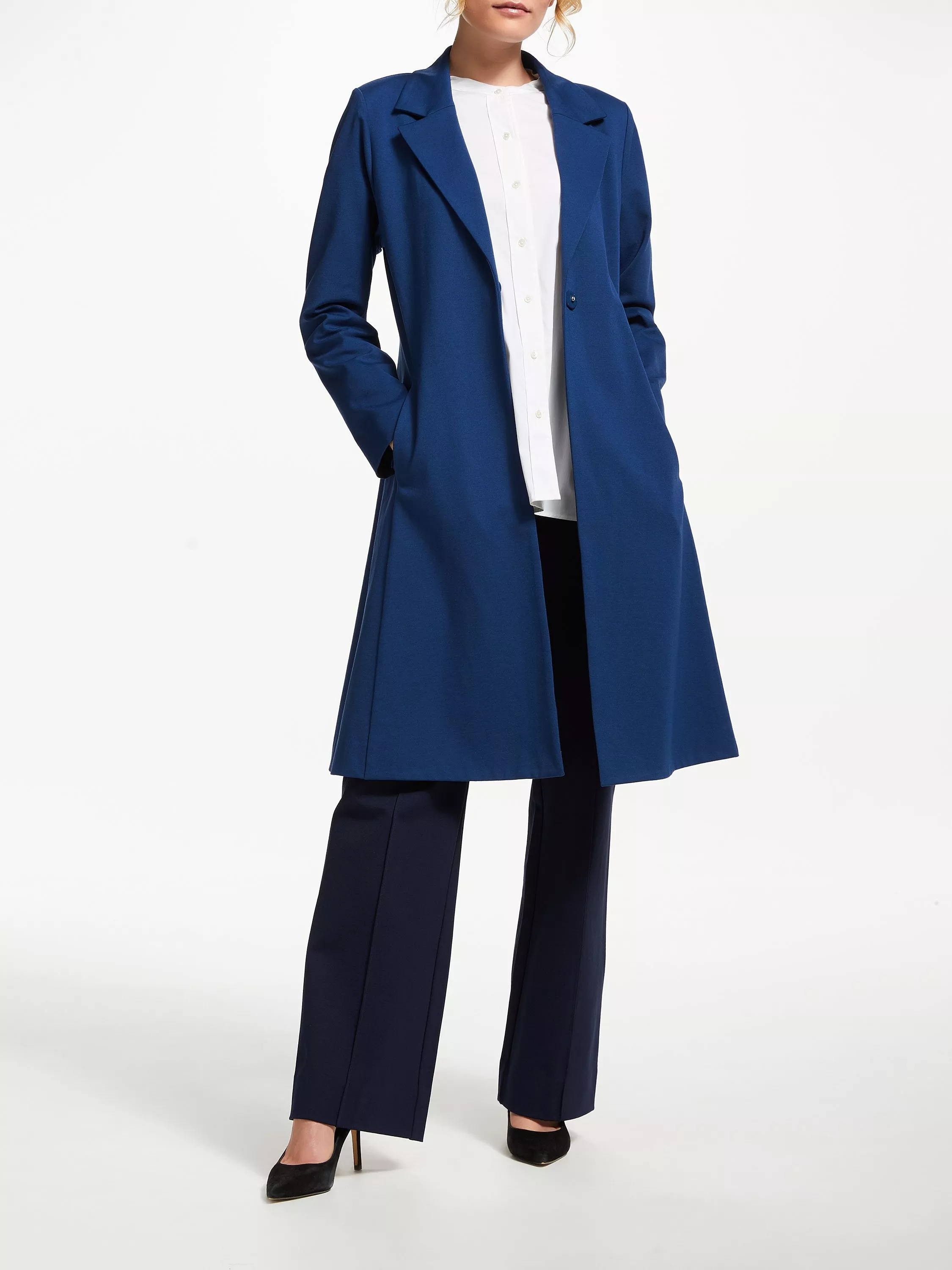 Combining a tailored silhouette with a soft fabric, this longline coat from Winser London will dress up any look.