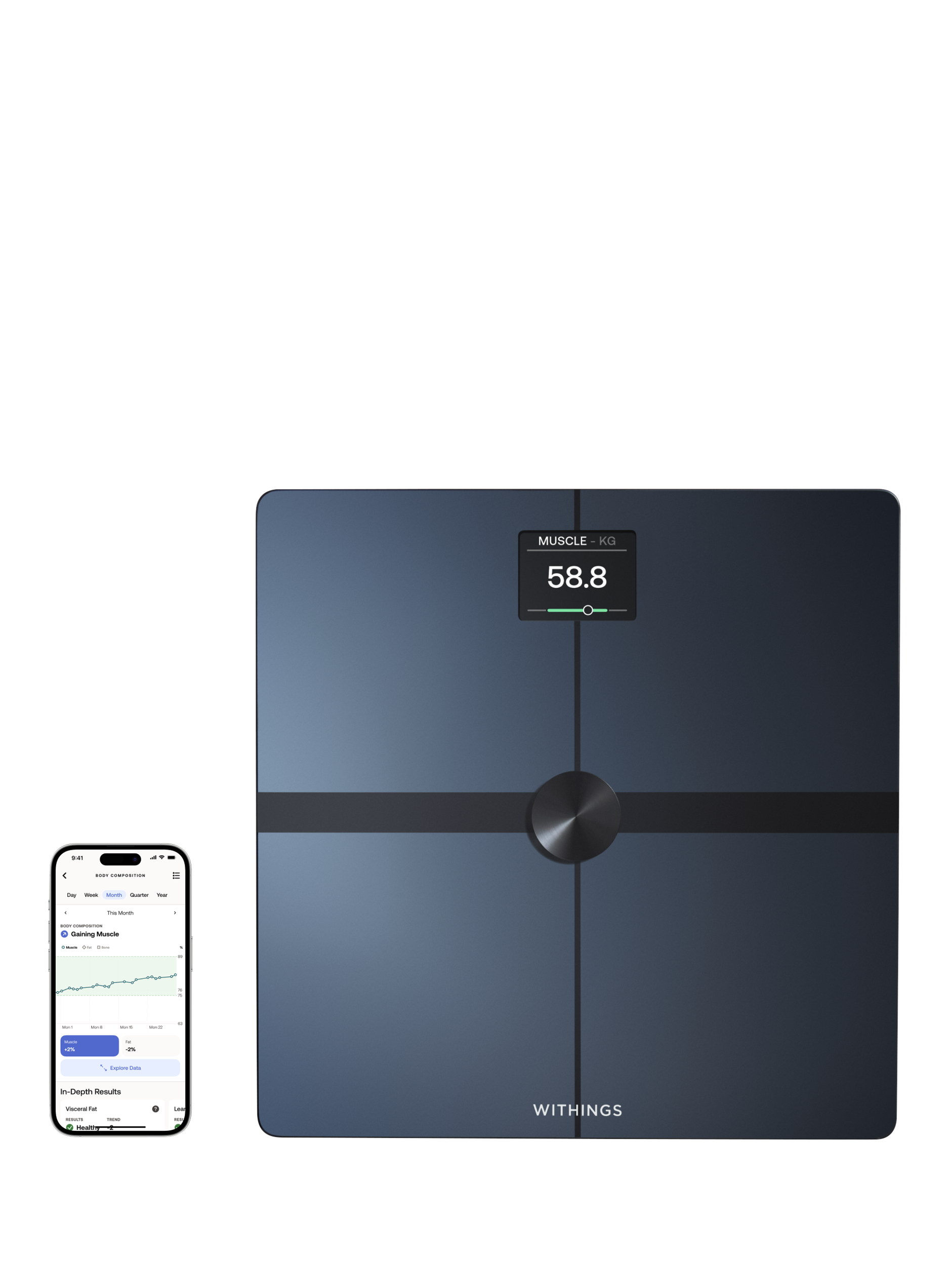 Monitor all your daily health metrics with the free Withings app for iOS or Android, where you’ll see trends, progress and daily inspiration for long term progress, while enjoying best-in-class privacy.