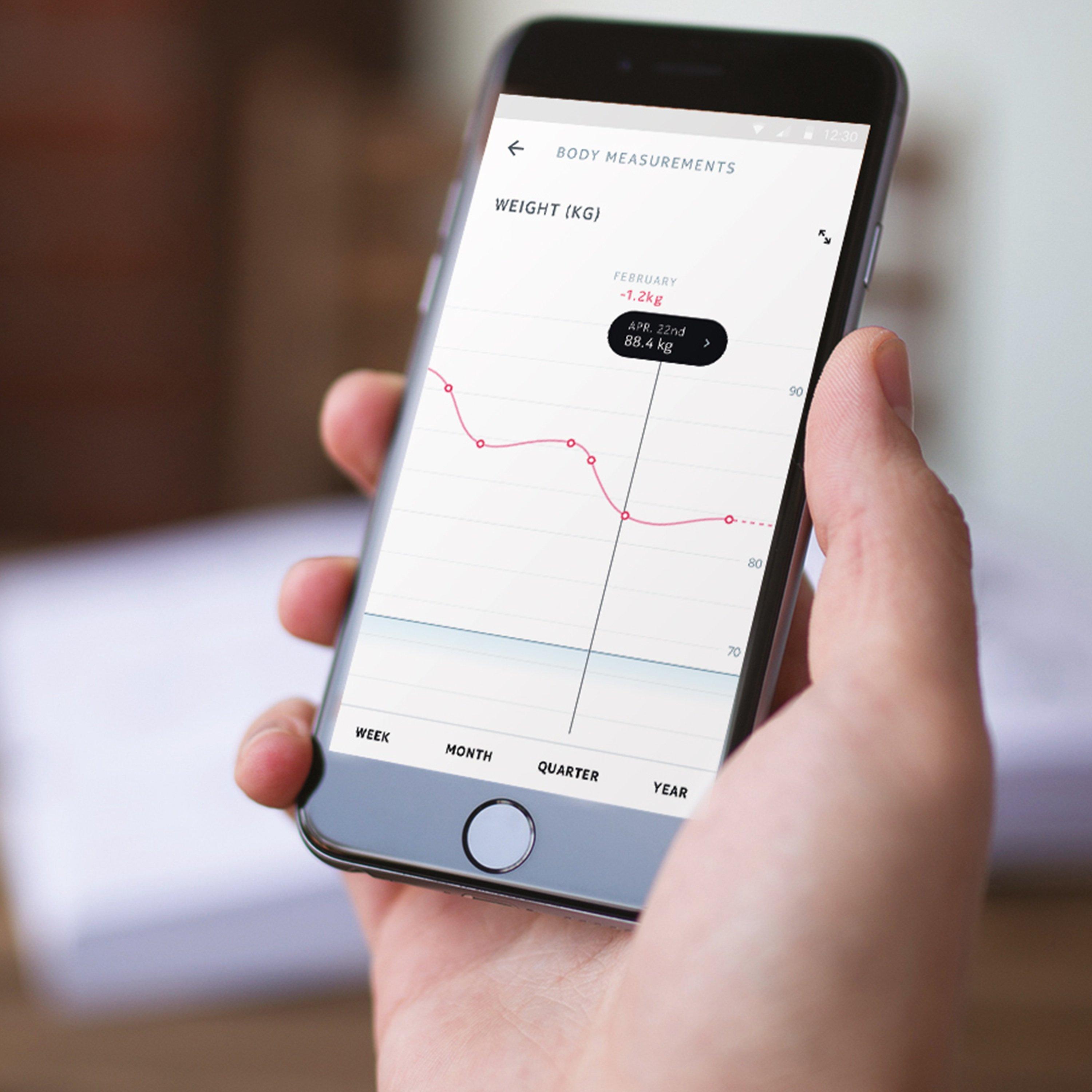 The Body will talk to the Nokia Health Mate app on your iOS or Android device wirelessly through Bluetooth or Wi-Fi for longer range connections. The Scale will update your app automatically after every weigh in, so the information is there when you need it. You can use the app to set achievable goals to keep you motivated and join a weekly weight loss program to get started. You can also use the historical weight chart to understand how your body weight relates to your lifestyle choices over time.