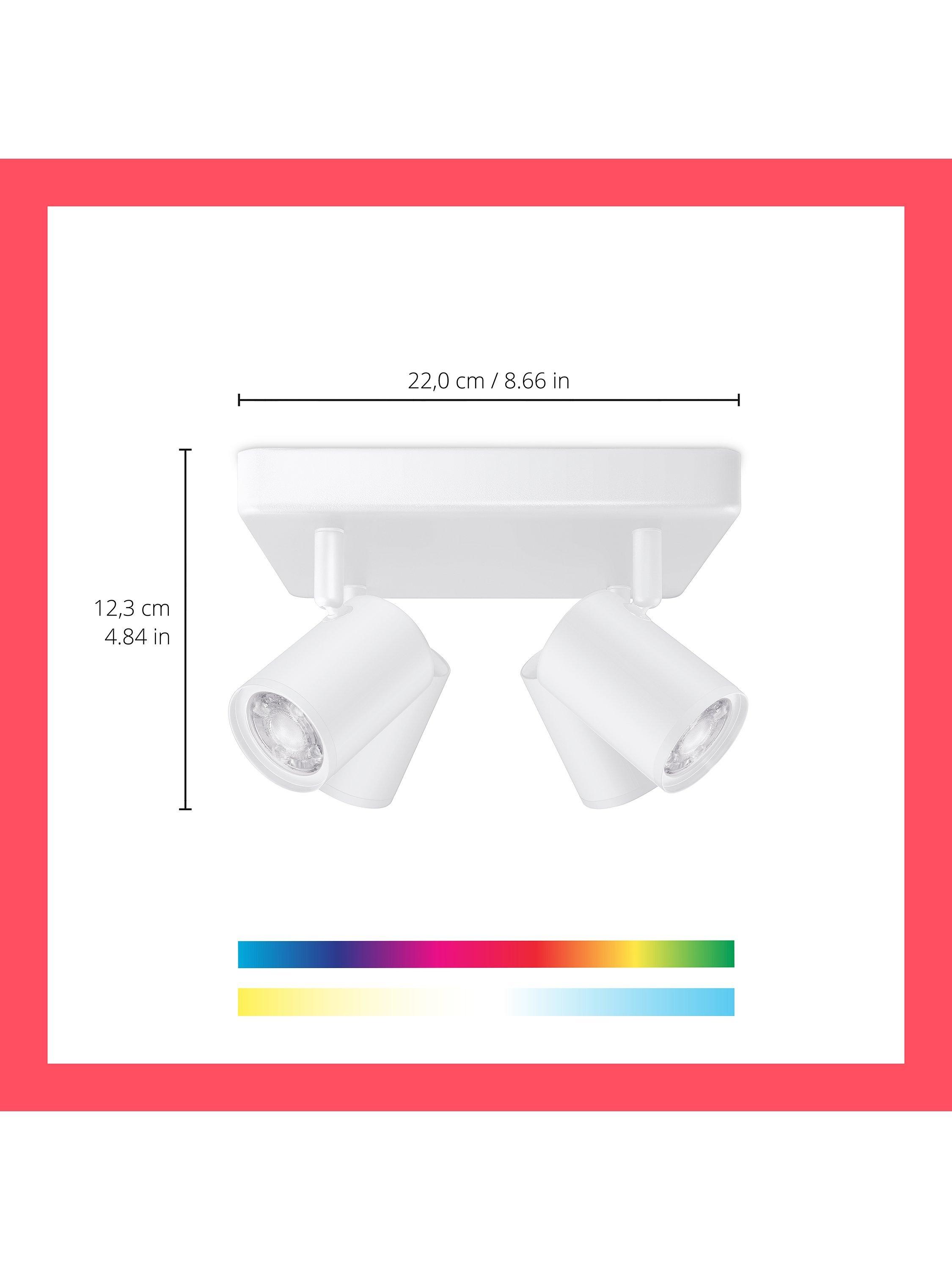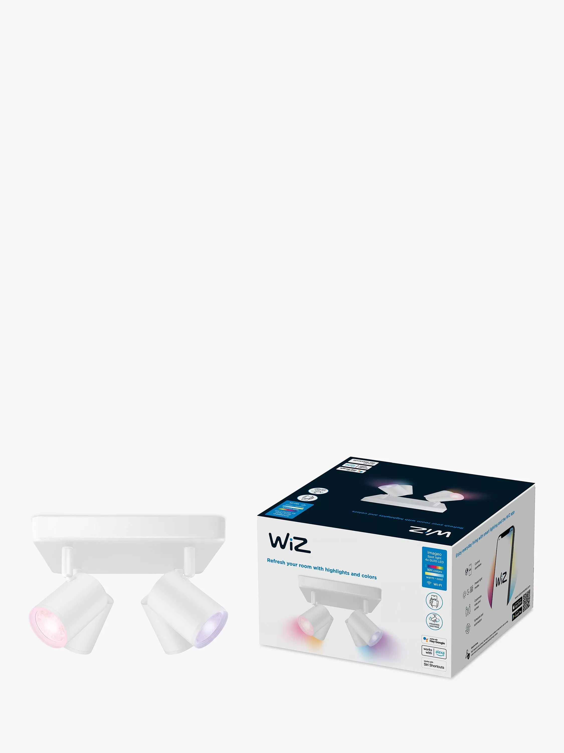 Highlight your home's decor using these four adjustable and colour changing spotlights from WiZ. Use the WiZ Imageo Smart 4 Spotlight with your existing Wi-Fi to control with the WiZ app or your voice.