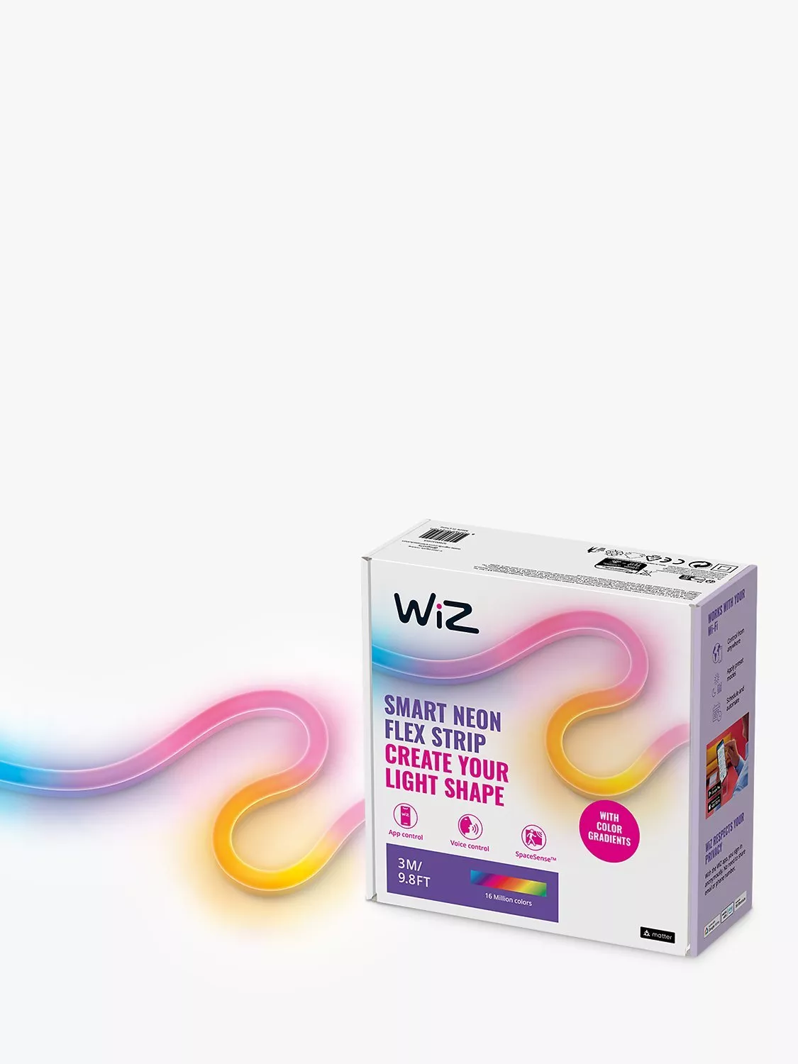 Set the mood with neon gradient colour effects. Control by using the WiZ remote, Wi-Fi and you can download the compatible app on your smartphone to experience easier-than-ever smart functionality.